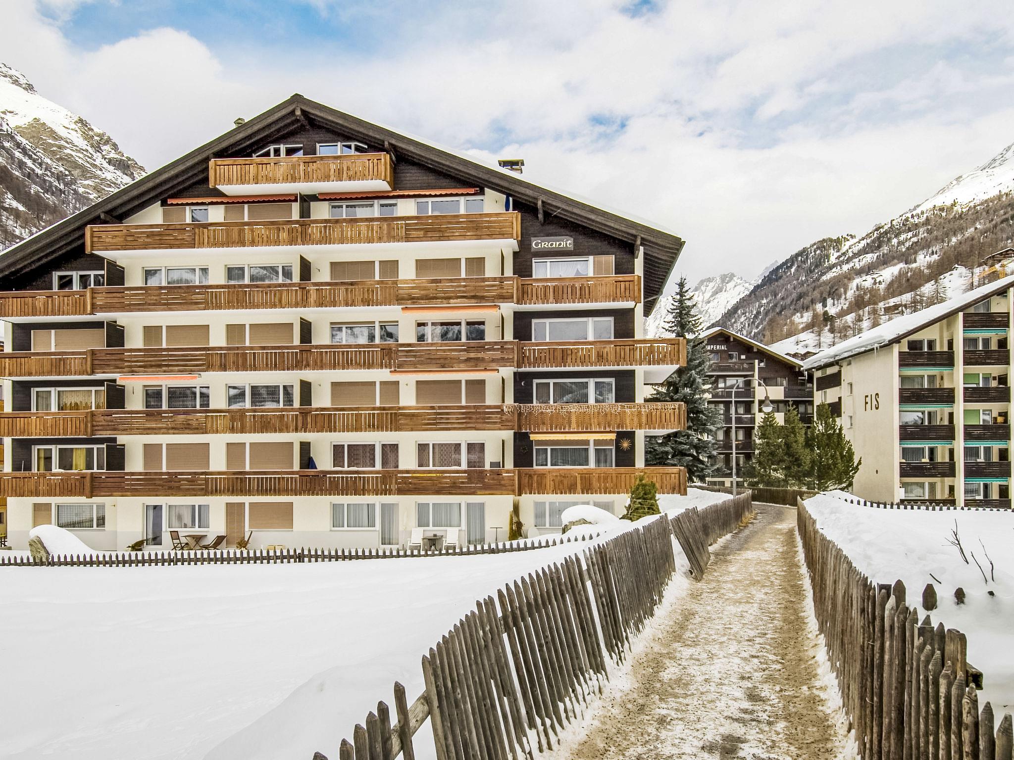 Large, beautiful apartment house "Granit", 5 storeys. In the district of Untere Matten 240 m from the centre of Zermatt, in a central, quiet, sunny position. In the house: lift, storage room for skis, central heating system. Supermarket, restaurant, bar 150 m, bakery 240 m, café 150 m, 5 minute walk to the centre, bus stop "Wiestibrücke" 170 m, railway station "Bahnhof Zermatt" 240 m. Mountain railway, ski rental 240 m, ski bus stop 170 m, ski school 450 m, ice rink 240 m. Cabs cannot stop right in front of the house. The keys‘ handover takes place by the agency Interhome in Zermatt.