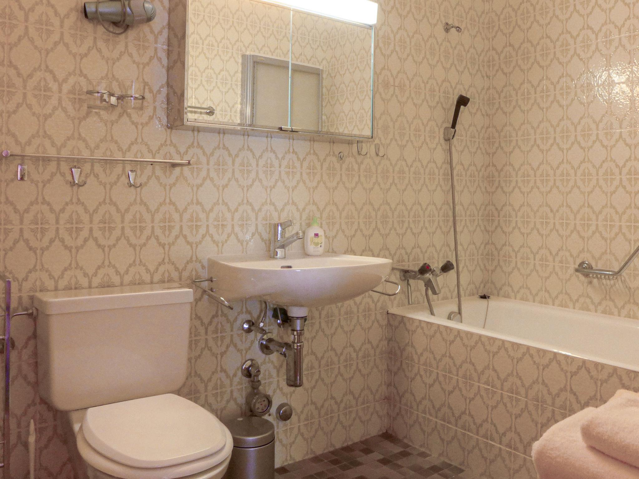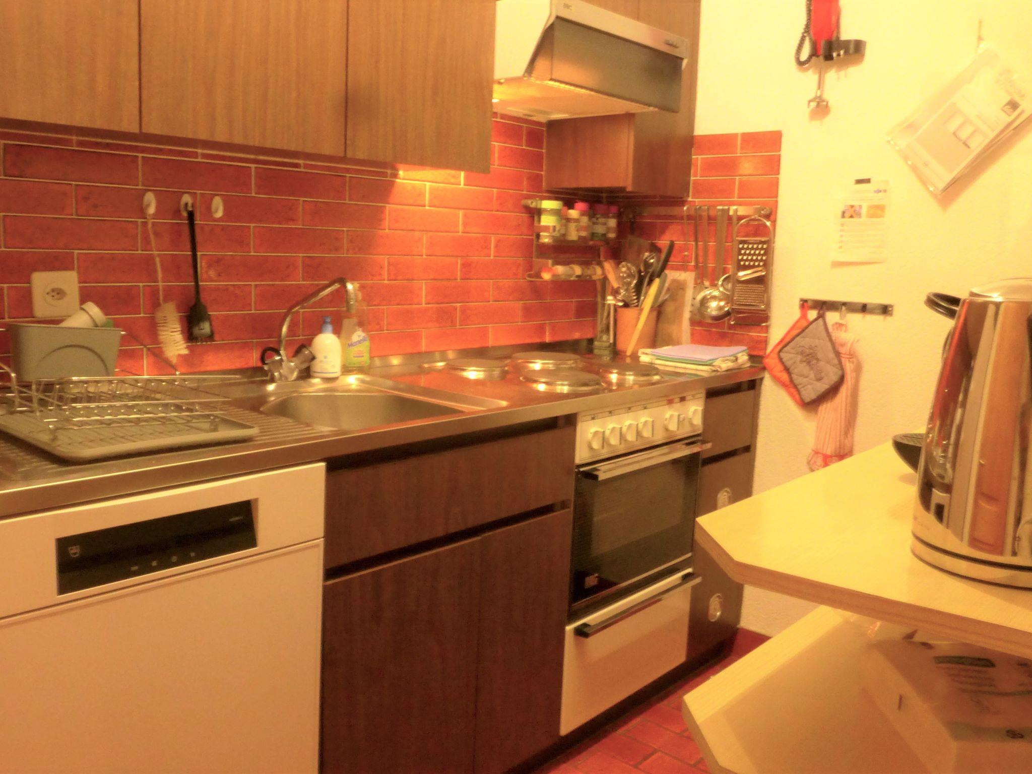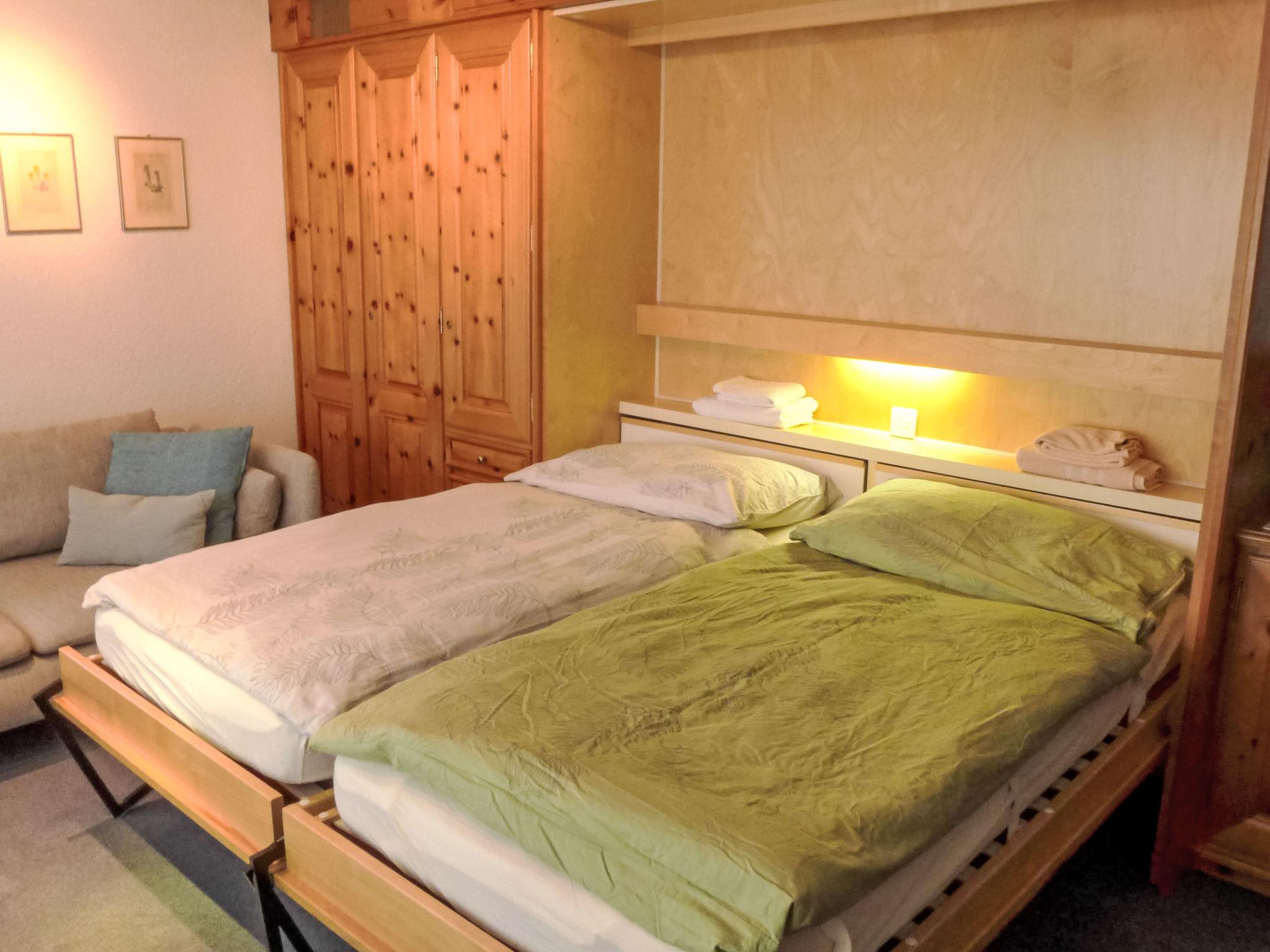 2-room apartment 60 m2, on the ground floor. Bright, simple and comfortable furnishings: living/sleeping room with 2 fold-away beds (90 cm, length 200 cm), dining table and TV. Exit to the balcony. 1 double bedroom with 1 double bed (2 x 90 cm, length 200 cm). Small kitchen (4 hot plates, oven, dishwasher, toaster, kettle, electric coffee machine, raclette grill, fondue Set (chinoise, cheese)). Bath/WC. Balcony. Balcony furniture. Beautiful view of the Matterhorn. Facilities: Internet (WiFi, free). Please note: non-smokers only.