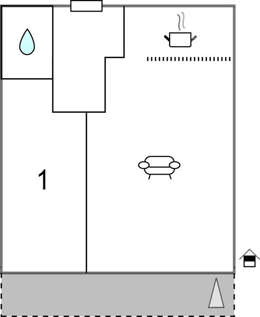 Opholdsstue/køkken 30m2 - 1 Soveplads. (Sofa, madras eller lignende). 1 Soveplads. (Madras).