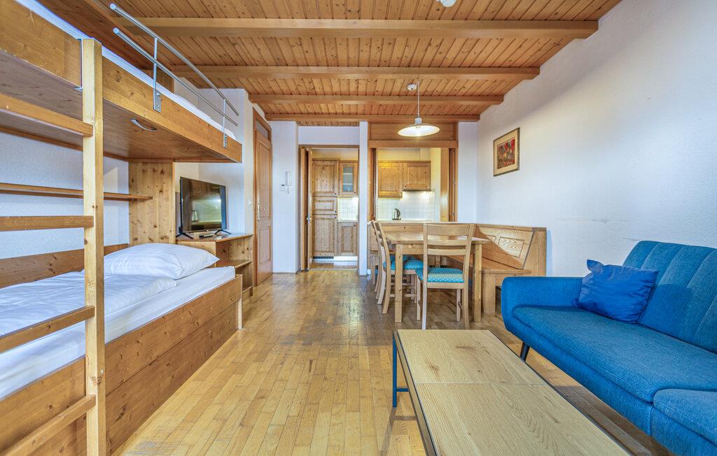 Slå jer ned i de attraktive rum med den hjemlige indretning, som har et varmt udtryk med masser af træelementer. Lejligheden er det optimale sted til en hyggelig pause og er ideel til en ferie med børn. Uanset vejret kan I bade i poolen, der deles med andre gæster, og finde jer godt til rette i stuen efter dagens aktiviteter.
