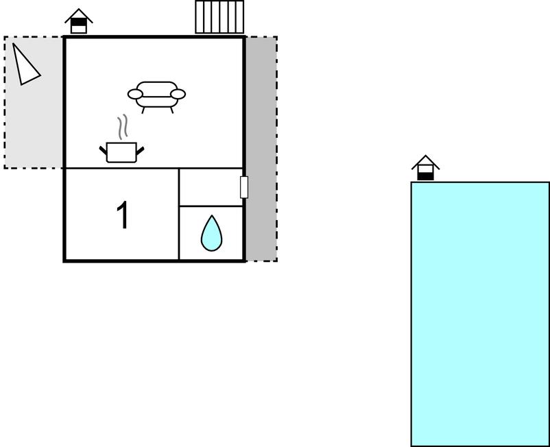 Opholdsstue/køkken - 2 Sovepladser. (Sofa, madras eller lignende).