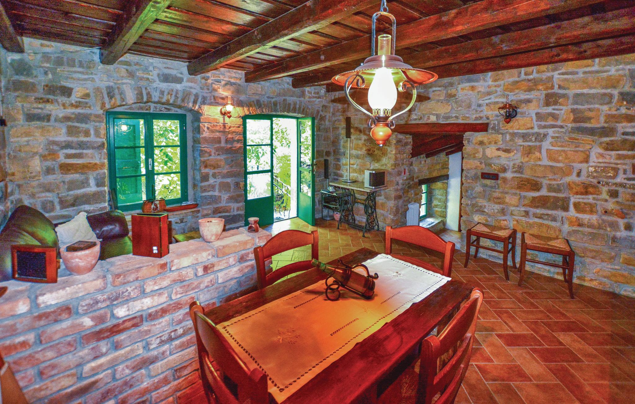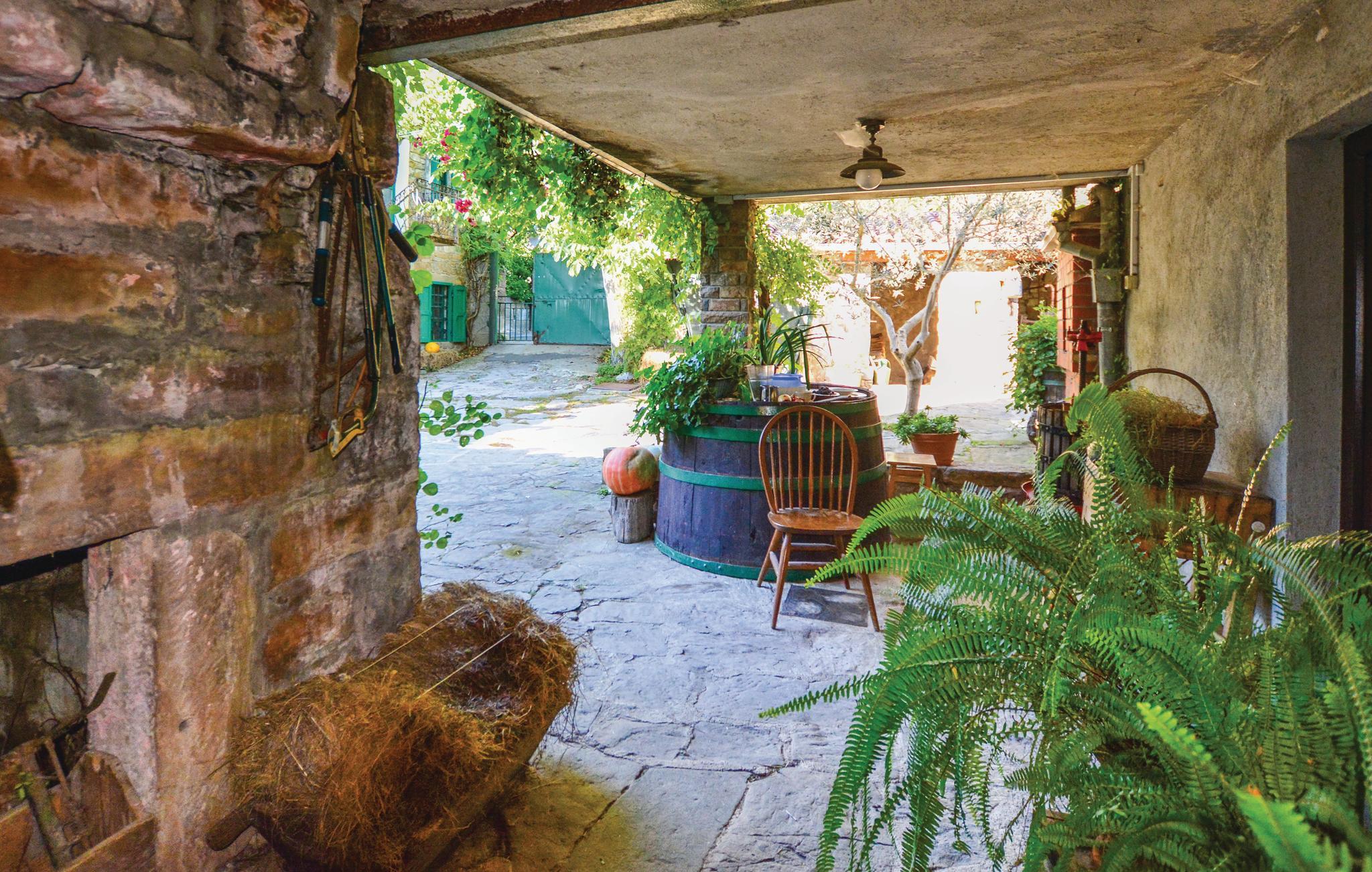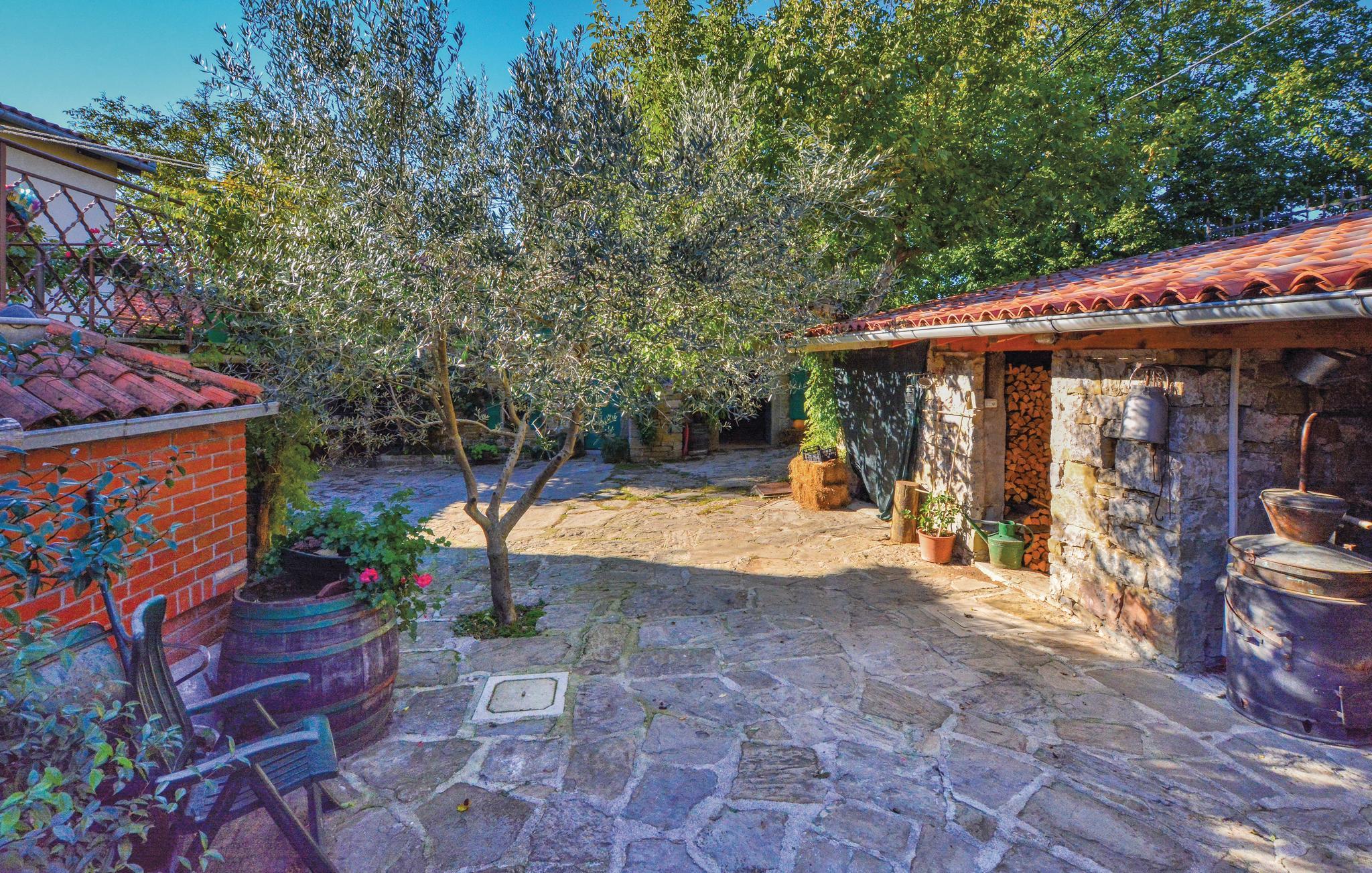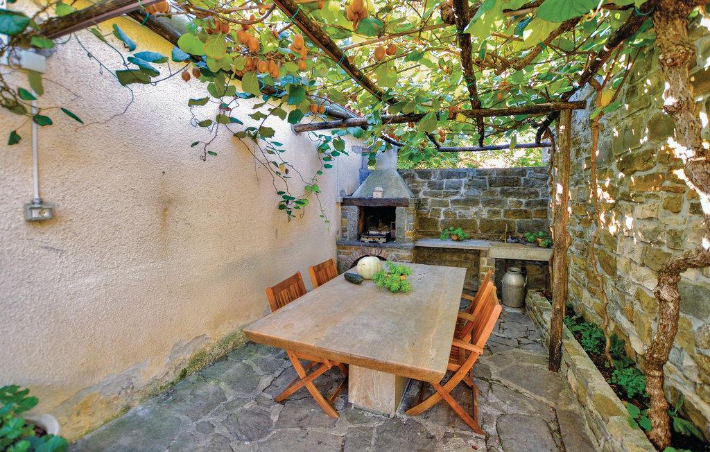 Dette gamle renoverede stenhus ligger i Kopers bagland i den lille by Pomjan, med flere rum der har ind- og udgang direkte udefra. Stuerne og S2 har kun adgang udefra. Den dejlige have er frodigt bevokset med planter, træer og med slyngplanter der danner bekvem skygge. I haven er der en terrasse med muret grill og havemøbler hvor I kan nyde lækkerierne fra grillen. Ejer giver gerne smagsprøver på sin hjemmelavede vin og olivenolie, som I også kan købe, hvis I kan lide det. I Pomjan kan I se smukke eksempler på den lokale slovensk/istriske byggestil. I denne region er der fine cykelstier, i kan klatre og vandre og tage på udflugter ud til kysten og det skønne hav.