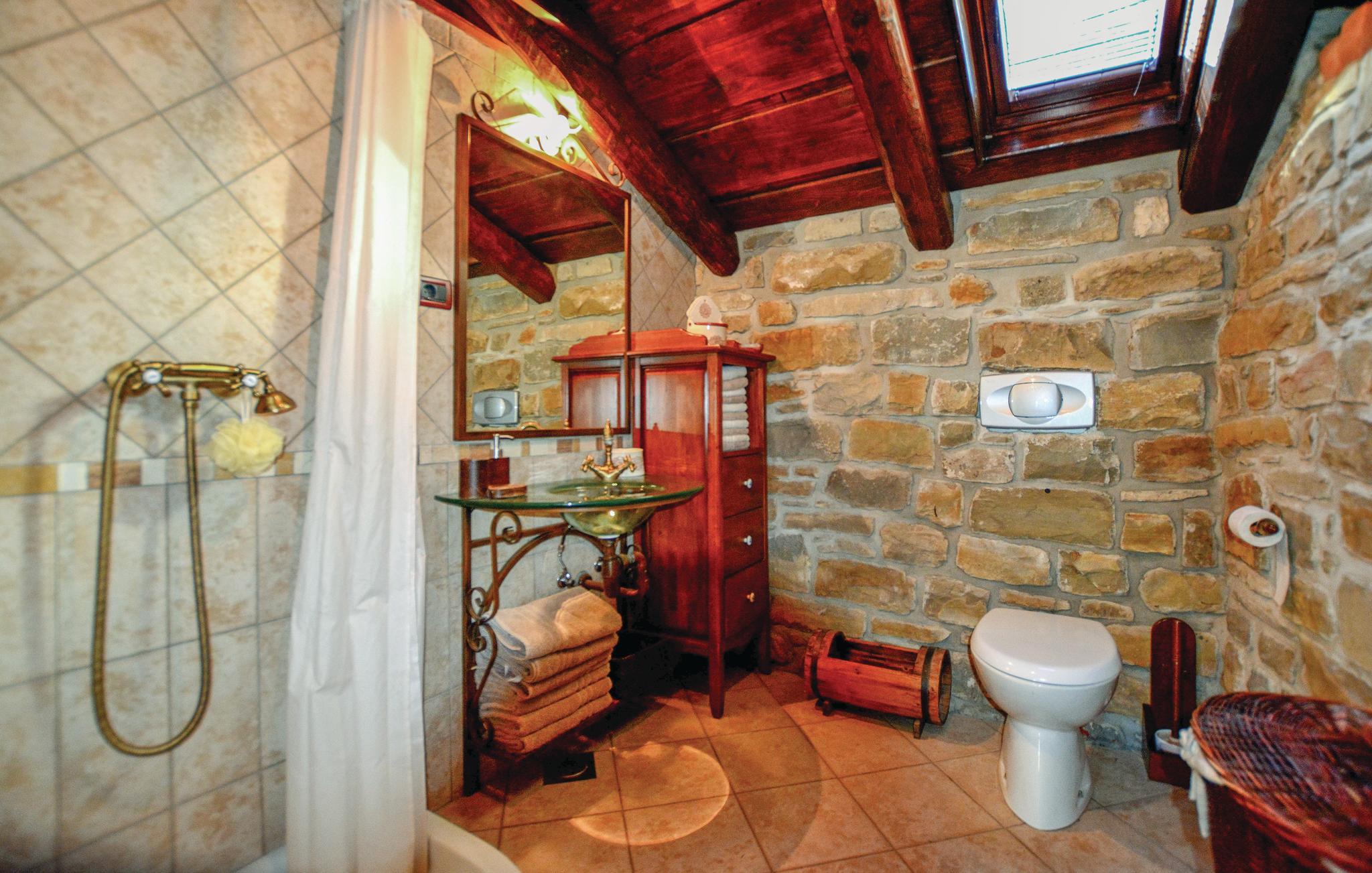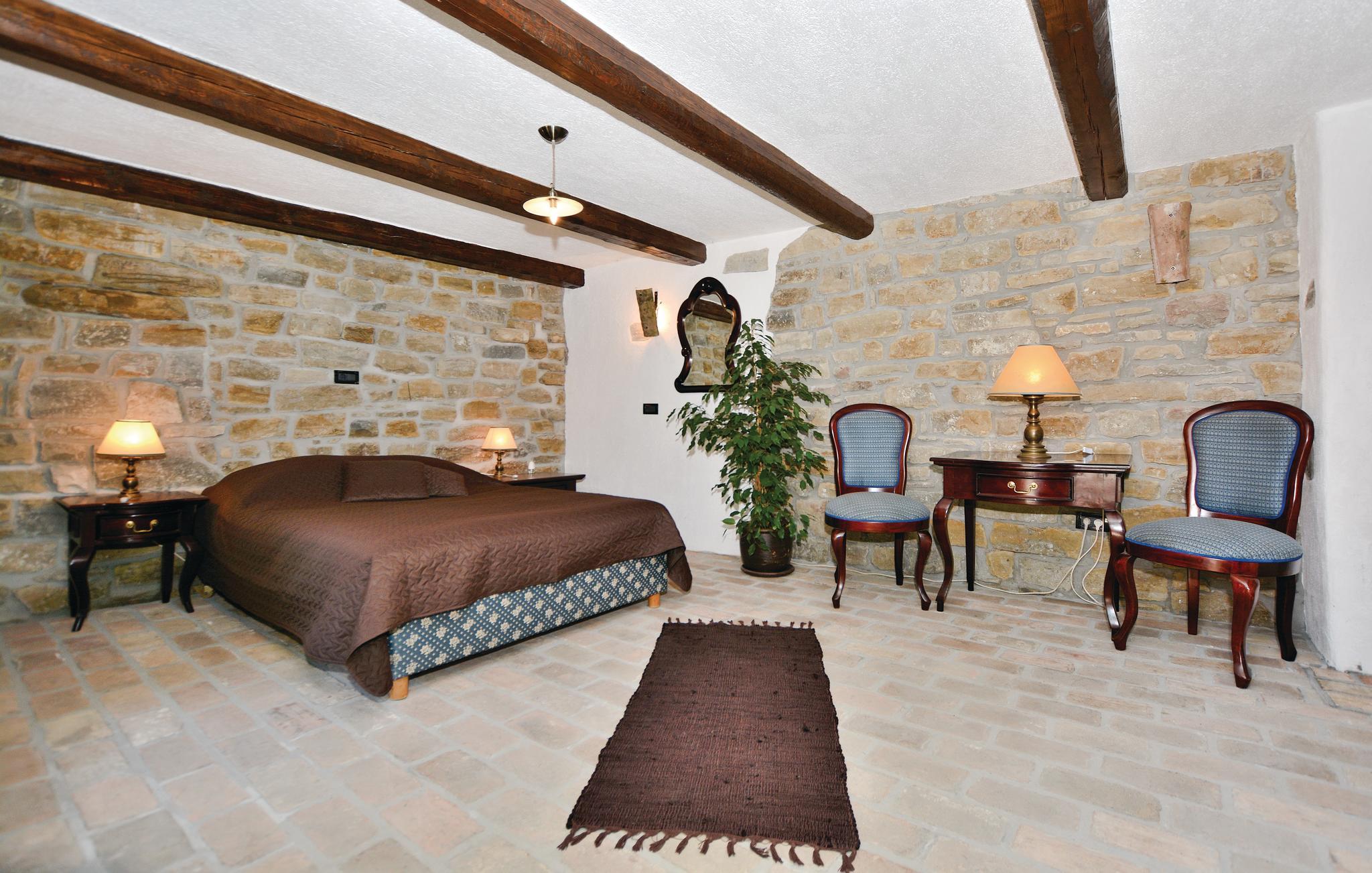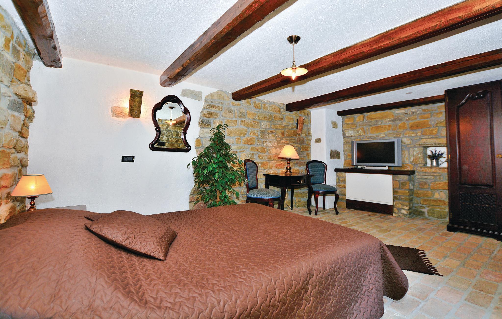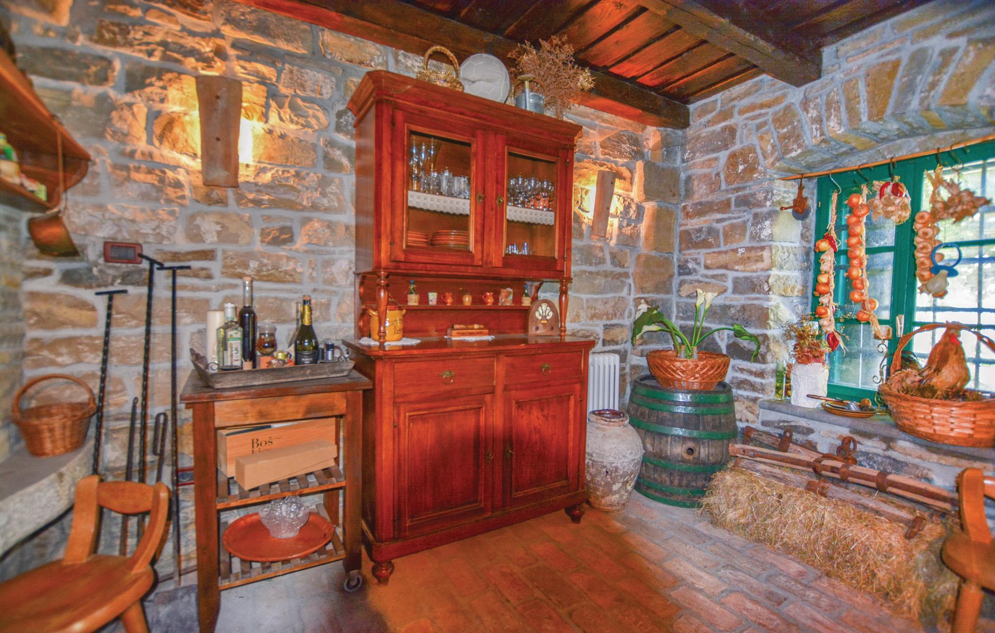 Dette gamle renoverede stenhus ligger i Kopers bagland i den lille by Pomjan, med flere rum der har ind- og udgang direkte udefra. Stuerne og S2 har kun adgang udefra. Den dejlige have er frodigt bevokset med planter, træer og med slyngplanter der danner bekvem skygge. I haven er der en terrasse med muret grill og havemøbler hvor I kan nyde lækkerierne fra grillen. Ejer giver gerne smagsprøver på sin hjemmelavede vin og olivenolie, som I også kan købe, hvis I kan lide det. I Pomjan kan I se smukke eksempler på den lokale slovensk/istriske byggestil. I denne region er der fine cykelstier, i kan klatre og vandre og tage på udflugter ud til kysten og det skønne hav.