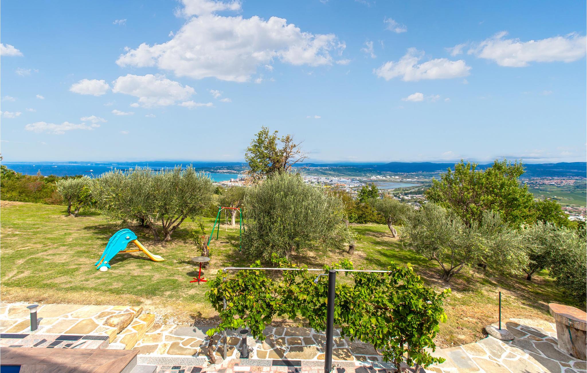 Velkommen til denne smukke lejlighed i stueetagen. Hold ferie her med den udvidede familie og føl jer straks hjemme. Her kan I finde ro og lægge den hektiske hverdag bag jer. Den komfortable indretning opfylder alle jeres behov og indbyder til hyggelige stunder med madlavning, afslapning og leg i fællesrummene. I kan også gøre brug af den smukke terrasse og haven. Her finder I en forfriskende pool, hvor I kan nyde mange timers badesjov eller tilberede jeres yndlingsretter på murstensgrillen om aftenen. Nyd jeres tid i haven med en fantastisk udsigt over bugten i Koper.