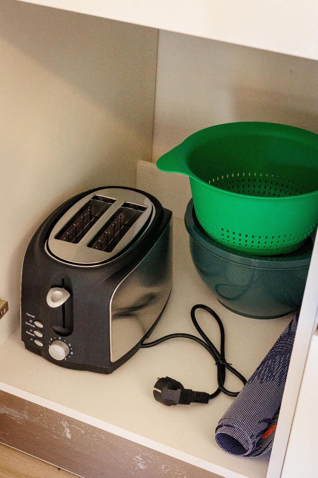Kitchen: Coffee machine; Espresso machine; Freezer; Fridge; Microwave; Oven; Toaster; Water boiler