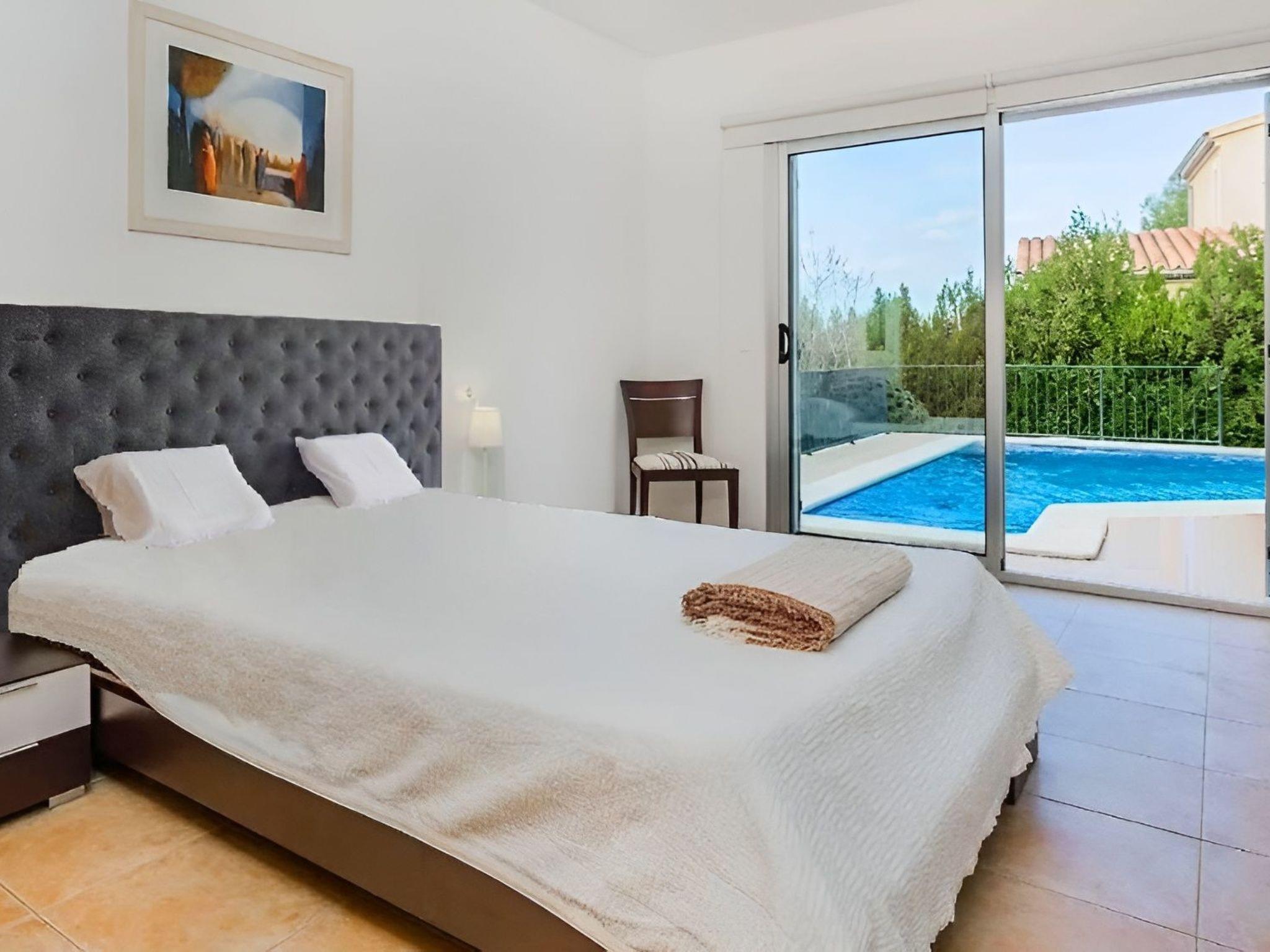 From the entrance, you enter the spacious living-dining room, and to the right is the open plan kitchen, all with a large window overlooking the pool. To the left of the living room are the other three bedrooms and the second bathroom. The highlight is undoubtedly the 6 x 4 m private pool (depth 0.80 x 1.80 m, access by stairs). From the pool area, there is access to the covered terrace on the right, which offers a barbecue and a large outdoor dining table.