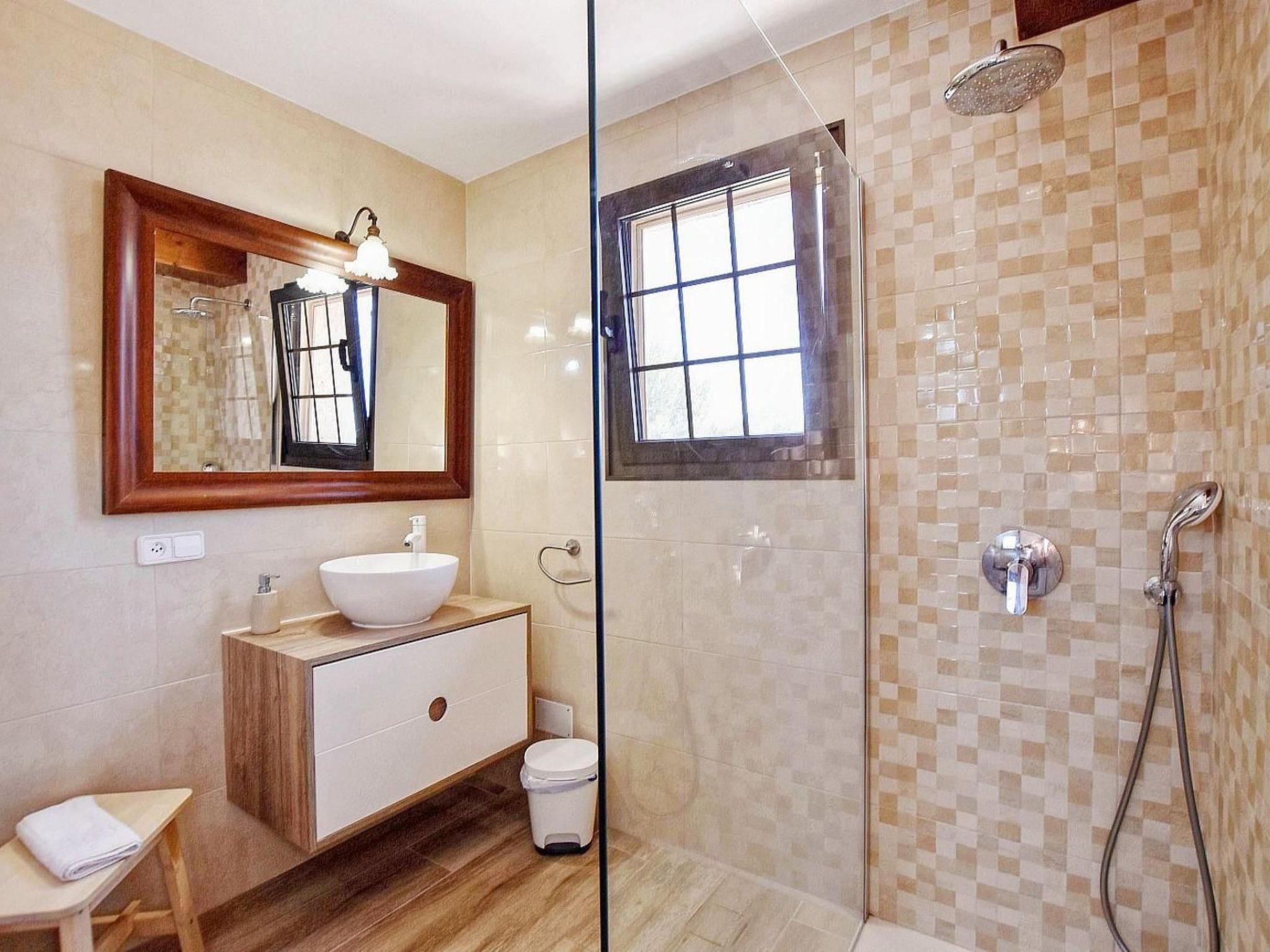 On a living area of approx. 180 m2 spread over three floors and the separate guest house, there are a total of 5 air-conditioned bedrooms (3 with two single beds each / 1 double bed / 1 single bed), plus a total of 4 bathrooms (3x EnSuite / 1x shower / 3x shower). There is an additional guest toilet on the covered terrace by the pool.