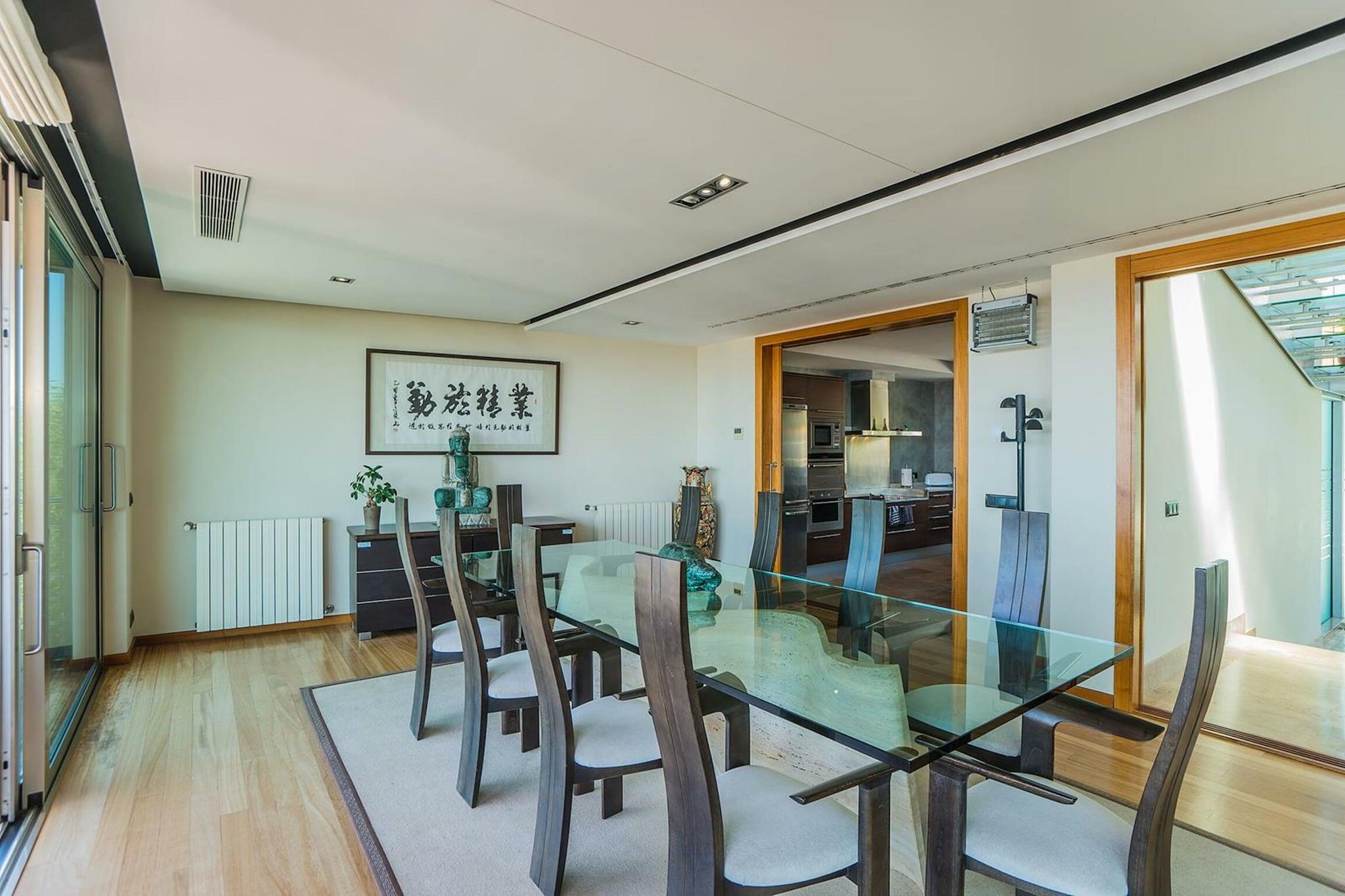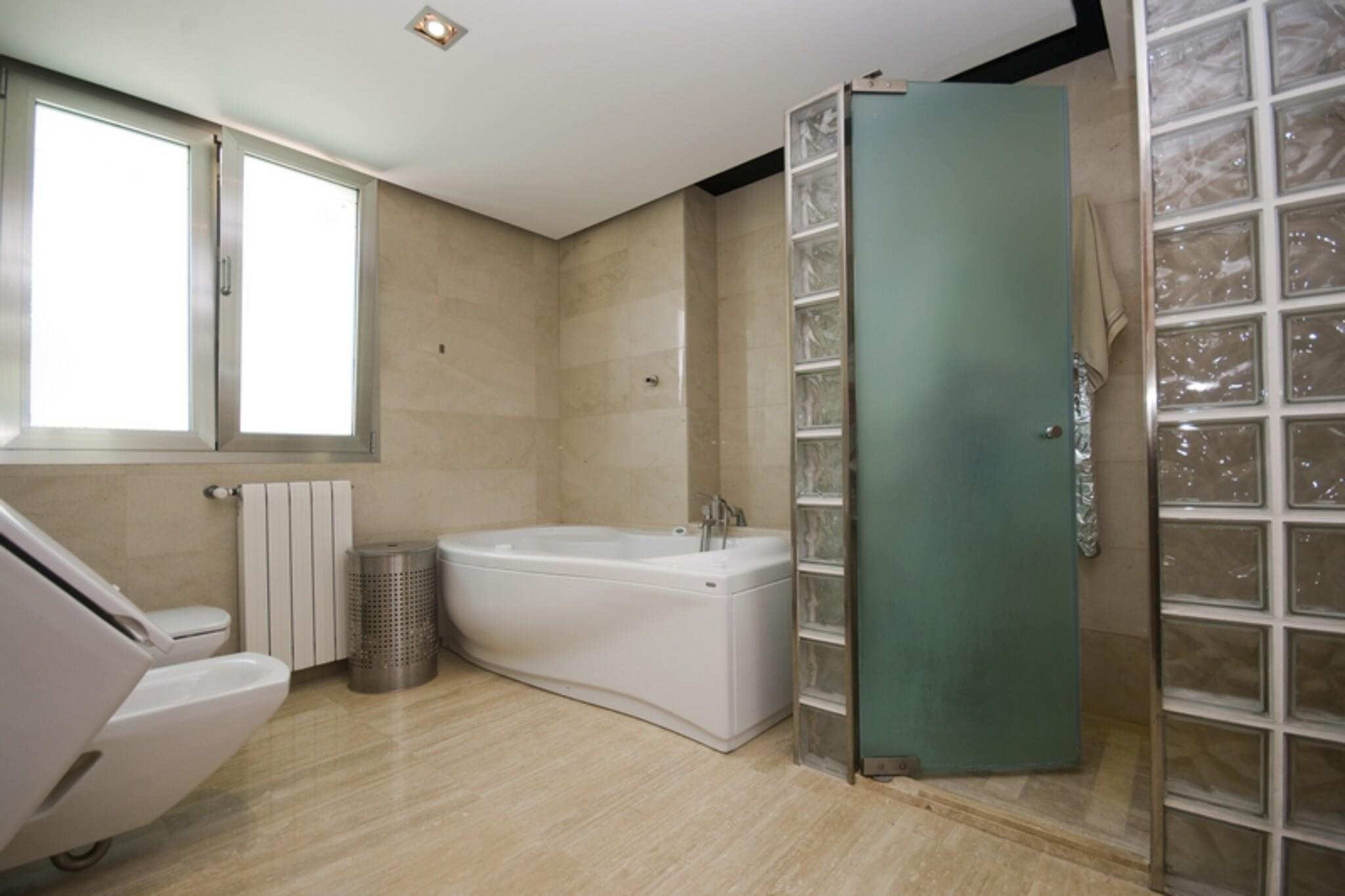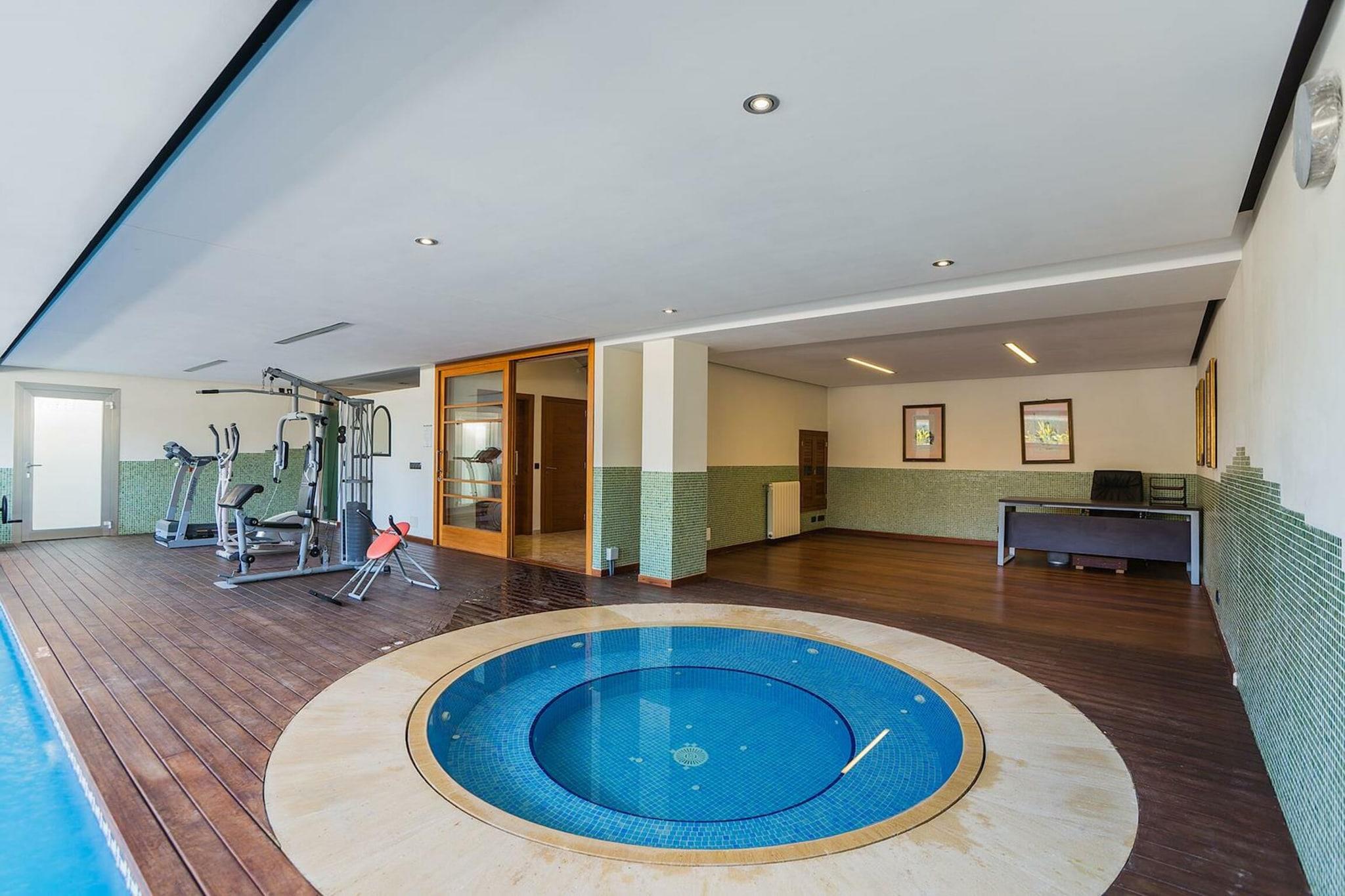 Stueetage: (Køkken(komfur(Komfur med fire kogeplader), ovn, mikrobølgeovn, opvaskemaskine , køle-fryseskab, tørretumbler), stue / spisestue(Fjernsyn(parabol), spisebord, sofahjørne), soveværelse(2x enkeltseng), badeværelse(bruser, håndvask, toilet), varme(central), klimaanlæg) Kælderetage: (soveværelse(2x enkeltseng), soveværelse(2x enkeltseng), Soveværelse med badeværelse(dobbeltseng, bruser, håndvask, toilet), Soveværelse med badeværelse(køjeseng, massagebruser, håndvask, toilet), badeværelse(bruser, håndvask, toilet), klimaanlæg) Poolhus: (toilet(håndvask, toilet), fitnessrum, Bubble bath, bruser, swimmingpool(privat, indendørs, 13 x 3 m., opened from Mar upto and including Sep)) havestue/veranda, garage, bruser(udendørs), varme(central), terrasse(overdækket), have, havemøbler, grill, parkering, swimmingpool(privat, opvarmes, 13 x 3 m.), bordtennisbord