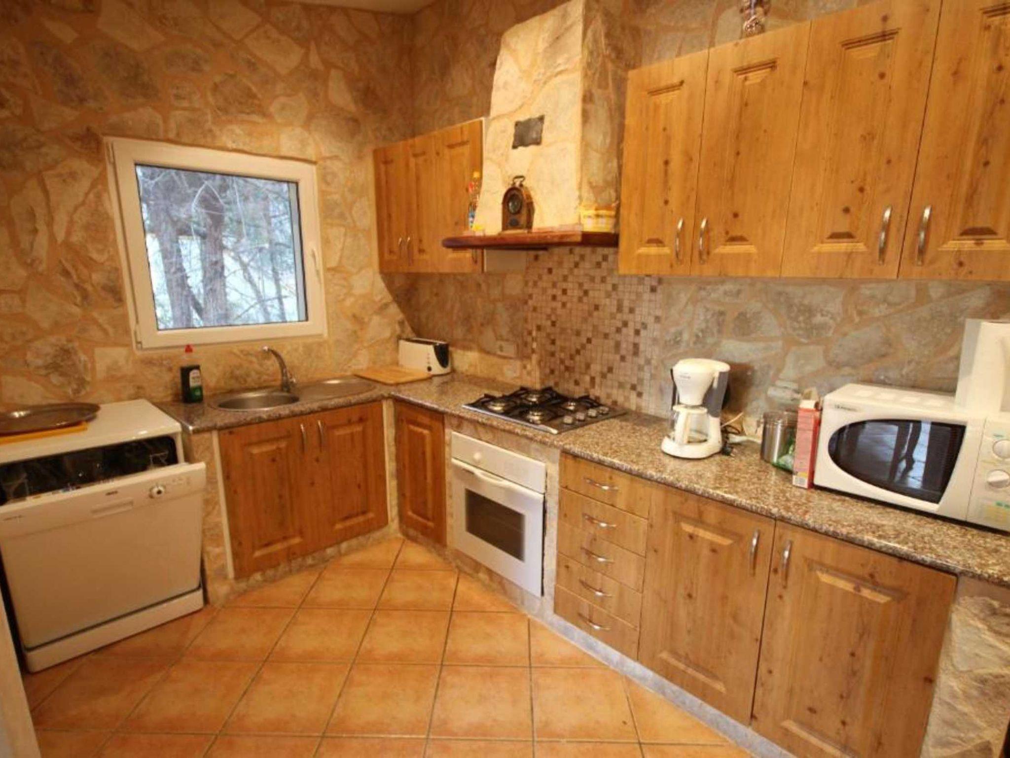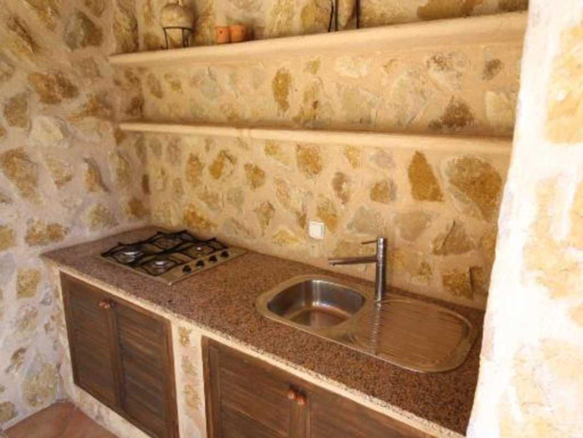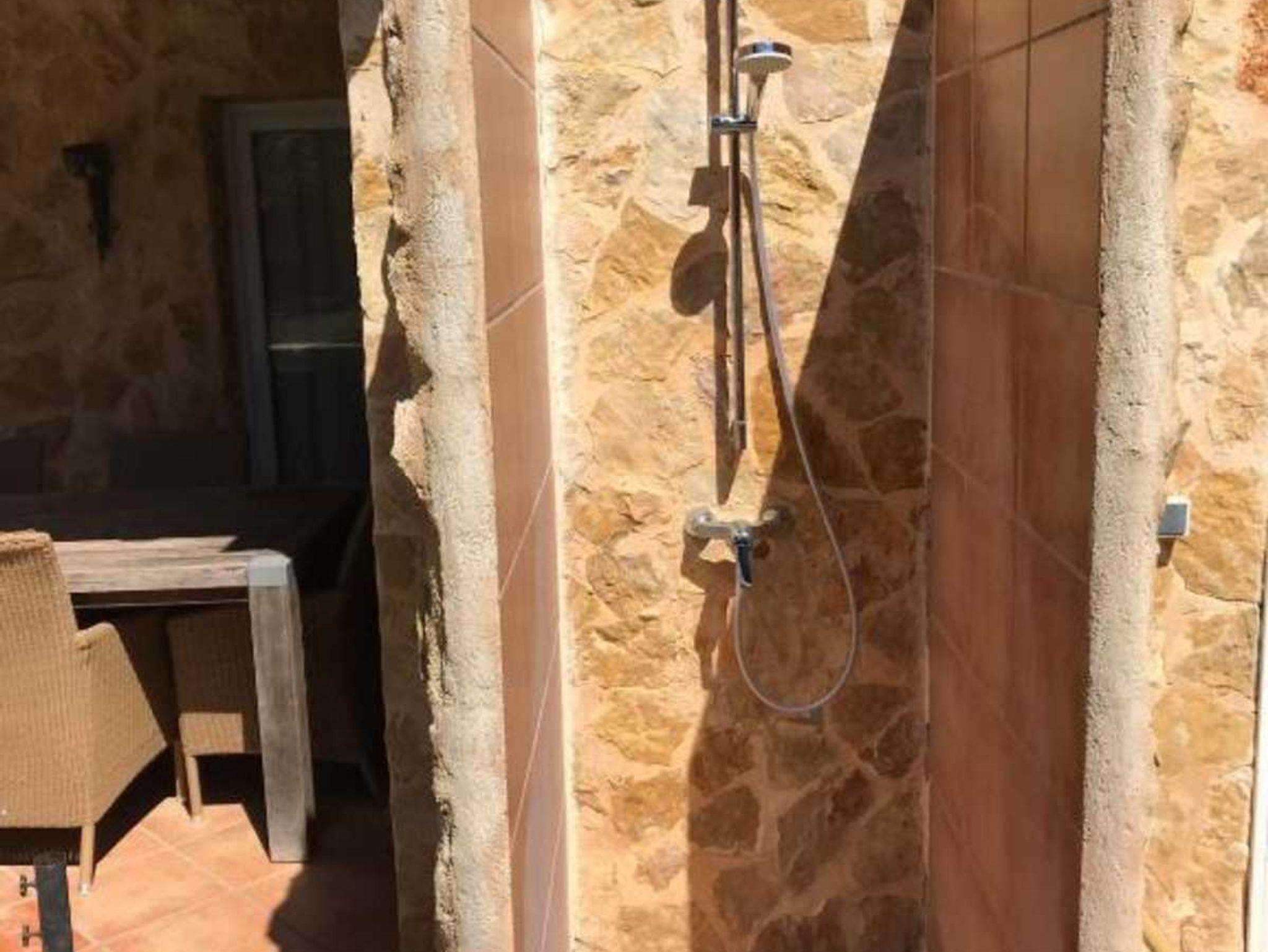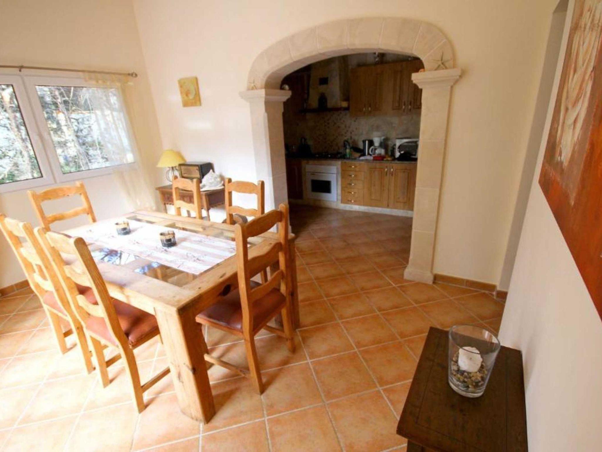 Die Finca besteht aus einem geräumigen Wohnzimmer mit Kamin, 3 Schlafzimmern (eines mit integriertem Badezimmer mit Dusche/WC), einem weiteren Bad mit Dusche und WC sowie Waschmaschine, einer voll ausgestatteten Küche mit Geschirrspüler, Ofen und Mikrowelle und einem Esszimmer, an das sich die große Terrasse anschließt, die einen eingebauten Grill und eine überdachte Außenküche hat.