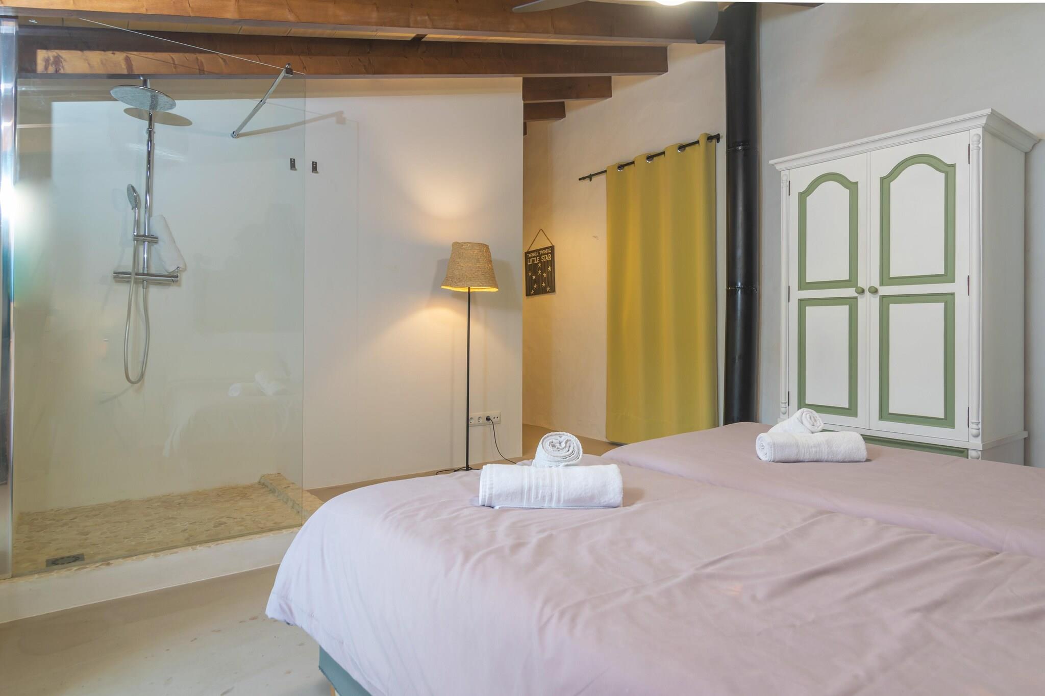 Buiten kunt u genieten van een verfrissende duik in het privé-chloorzwembad van 4,5 x 7,5 meter en een diepte variërend tussen 0,80 en 1,80 meter. Het biedt ook ligstoelen en parasols om te zonnebaden, een ontspanningsruimte waar u bij zonsondergang van een drankje kunt genieten, een eetzaal buiten, een mobiele barbecue voor het bereiden van heerlijk gegrild vlees en groenten, en een houtoven. Het terrein is omheind en de privacy is totaal. Het interieur van het huis met twee verdiepingen is eenvoudig met moderne accenten gecombineerd met traditionele elementen. Op de begane grond vinden we de woonkamer met TV-sat. Het communiceert met de eetkamer via een boog en deze is op zijn beurt verbonden met de keuken met gasfornuizen. In de wasruimte bevindt zich een wasmachine, strijkijzer en strijkplank. Er zijn 5 slaapkamers, allen met 2 eenpersoonsbedden en airconditioning. Drie ervan bevinden zich op de begane grond en één heeft een en-suite badkamer met douche. De twee op de eerste verdieping hebben ook een en-suite badkamer met douche, waarvan één met douche in dezelfde kamer. Op de begane grond bevindt zich nog een badkamer met ligbad voor het hele huis en een buitentoilet. De uitrusting wordt aangevuld met 7 plafondventilatoren en een wieg en kinderstoel als u met uw baby reist. Het huis is gelegen aan de rand van Algaida, in een rustige en landelijke omgeving. In de stad vindt u de basisvoorzieningen voor een zelfstandig verblijf. Het dichtstbijzijnde strand is Can Pastilla, op ongeveer 20 km afstand. Ze hebben ook een nabijgelegen golfbaan, Son Gual, op ongeveer 13 km van de accommodatie. Wij raden u aan een huurauto te huren om uw vervoer over het eiland te vergemakkelijken. Voor eventuele extra kosten kunt u contact opnemen met de adverteerder. Wij accepteren geen huisdieren. Het vieren van evenementen is niet toegestaan. Er is buiten parkeergelegenheid voor 6 auto's. Afstanden Strand: 20,2 km - Can Pastilla Luchthaven: 24,6 km - Son Sant Joan Golfbaan: 13,2 km - Golf Son Gual Stad: 1,3 km - Algaida Treinstation: 24,5 km - Palma de Mallorca Bushalte: 1,9 km - Algaida Veerboot: 34,7 km - Palma de Mallorca Ziekenhuis: 20,4 km - Son LlÃtzer-ziekenhuis Toeristenvergunning: ETV/7688 Op de Balearen geldt een toeristenbelasting, Ecotasa genaamd, die door de gast moet worden betaald. Het bedrag varieert tussen EURO 0,55 / per nacht per persoon in het laagseizoen en EURO 2,2 / per nacht per persoon in het hoogseizoen. Vanaf de negende dag wordt het met de helft verminderd. Personen onder de 16 jaar uitgesloten.