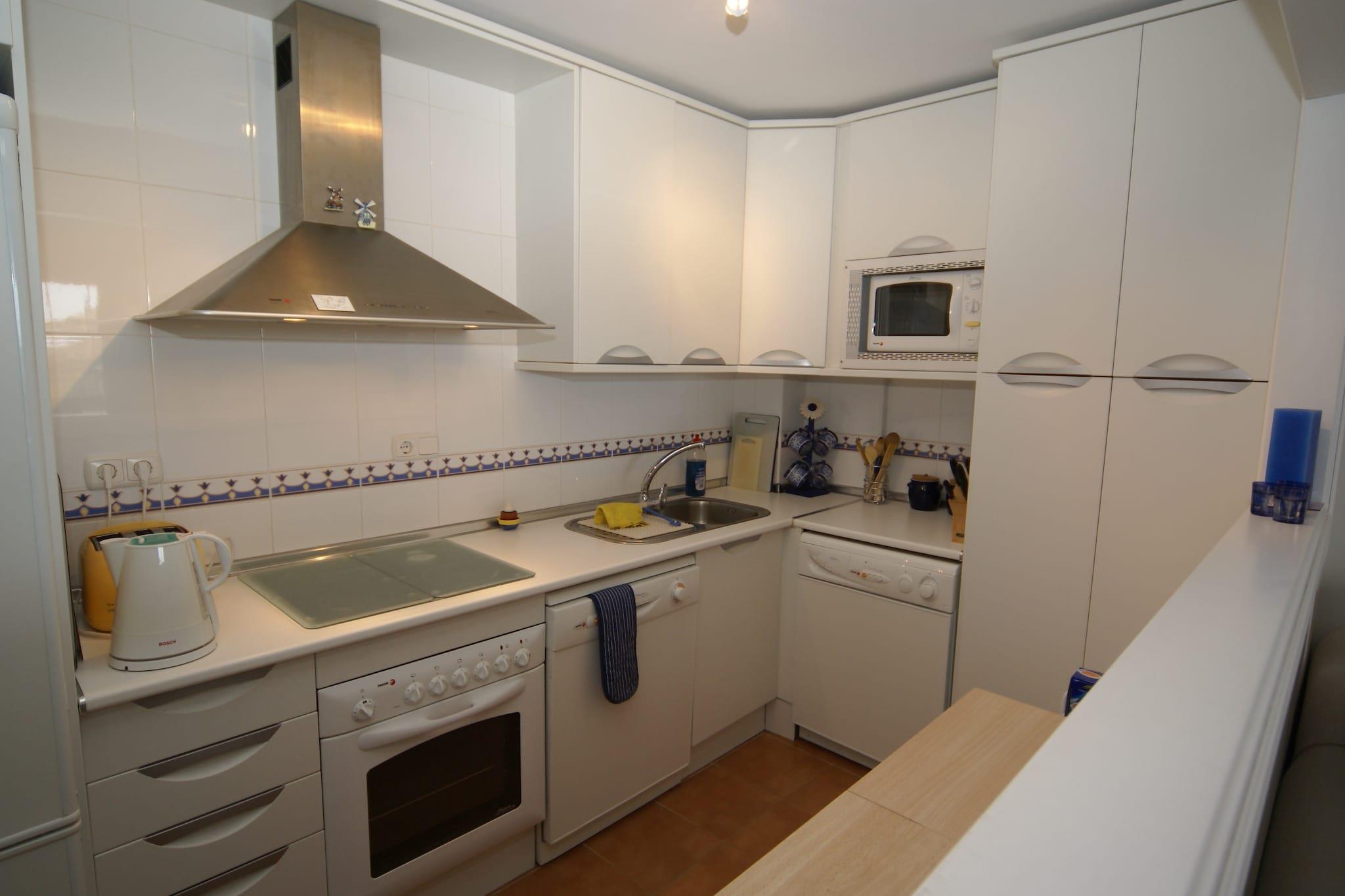 På 1. etage: (Køkken(brødrister, komfur, emhætte, kaffemaskine, ovn, mikrobølgeovn, opvaskemaskine , køle-fryseskab), stue / spisestue(dobbeltsovesofa, Fjernsyn(Internationale TV-kanaler), spisebord, CD-afspiller), Soveværelse med badeværelse(dobbeltseng, badekar med bruser, 2x håndvask, toilet), Soveværelse med badeværelse(dobbeltseng, bruser, håndvask, toilet), vaskemaskine, balkon, klimaanlæg, havemøbler) garage, have(deles med andre gæster), swimmingpool(deles med andre gæster, 16 x 5 m., opened from Jan upto and including Dec), barneseng, barnestol