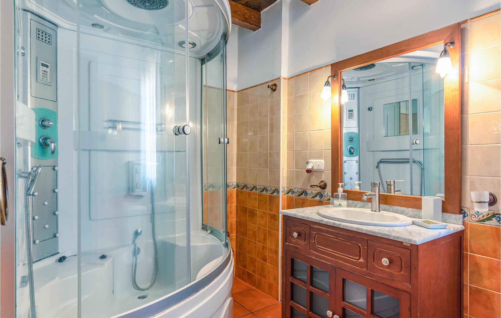 Badeværelse (nr. 1) - WC. Varmt og koldt vand. Håndbruser, badekar og bruser