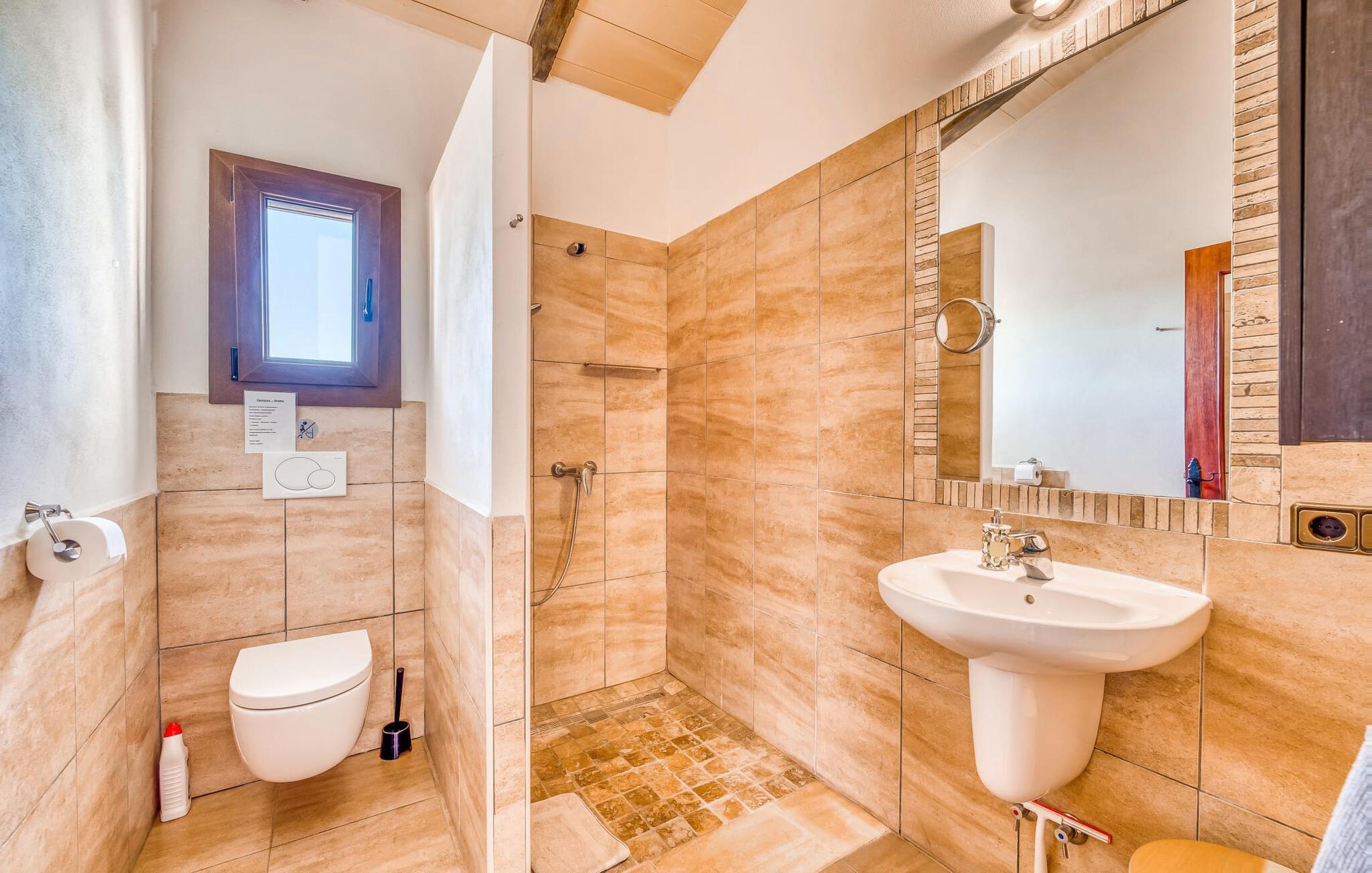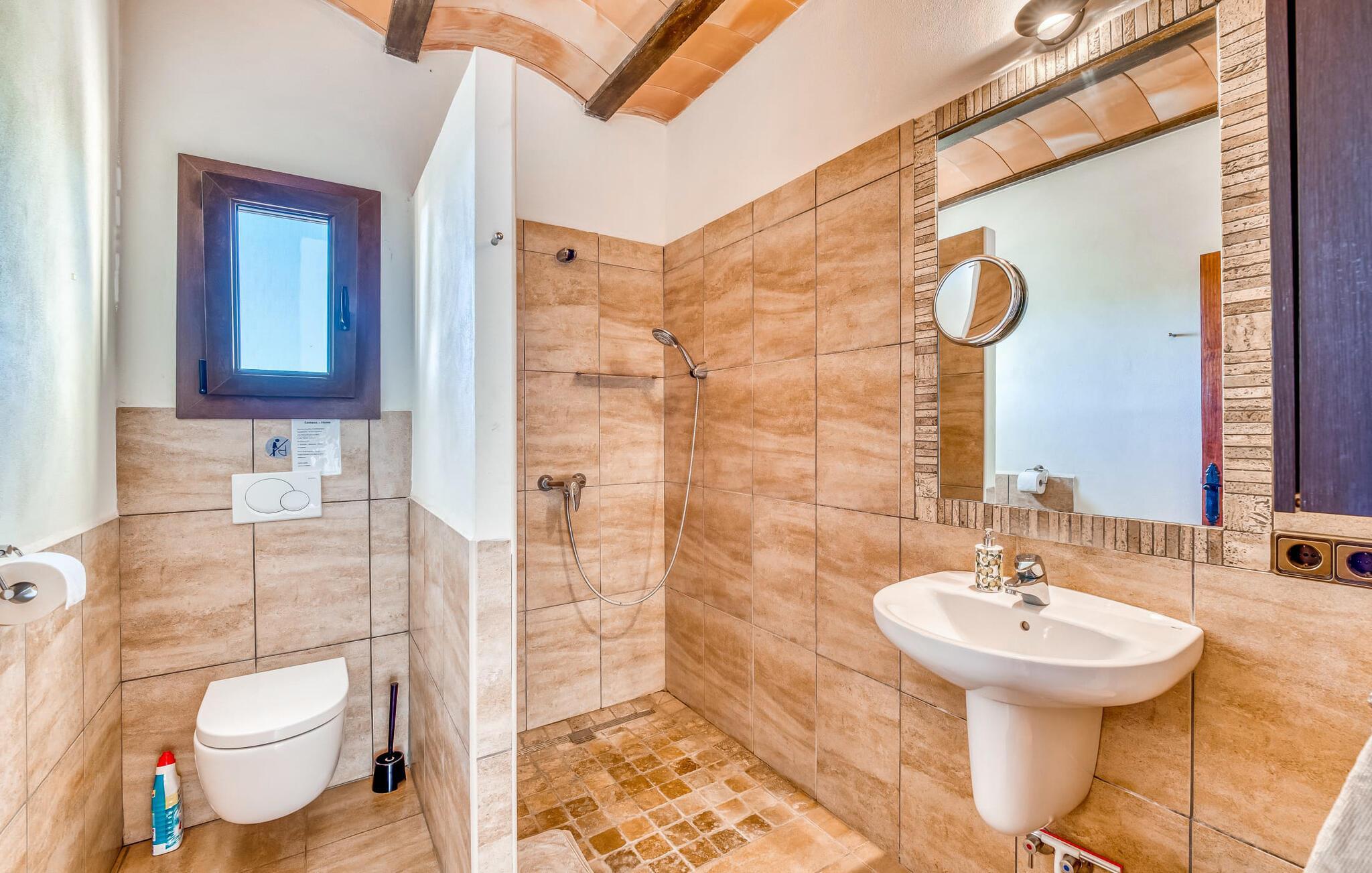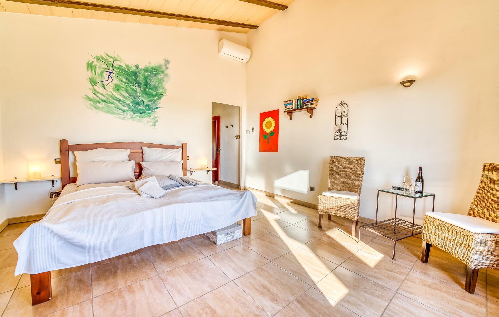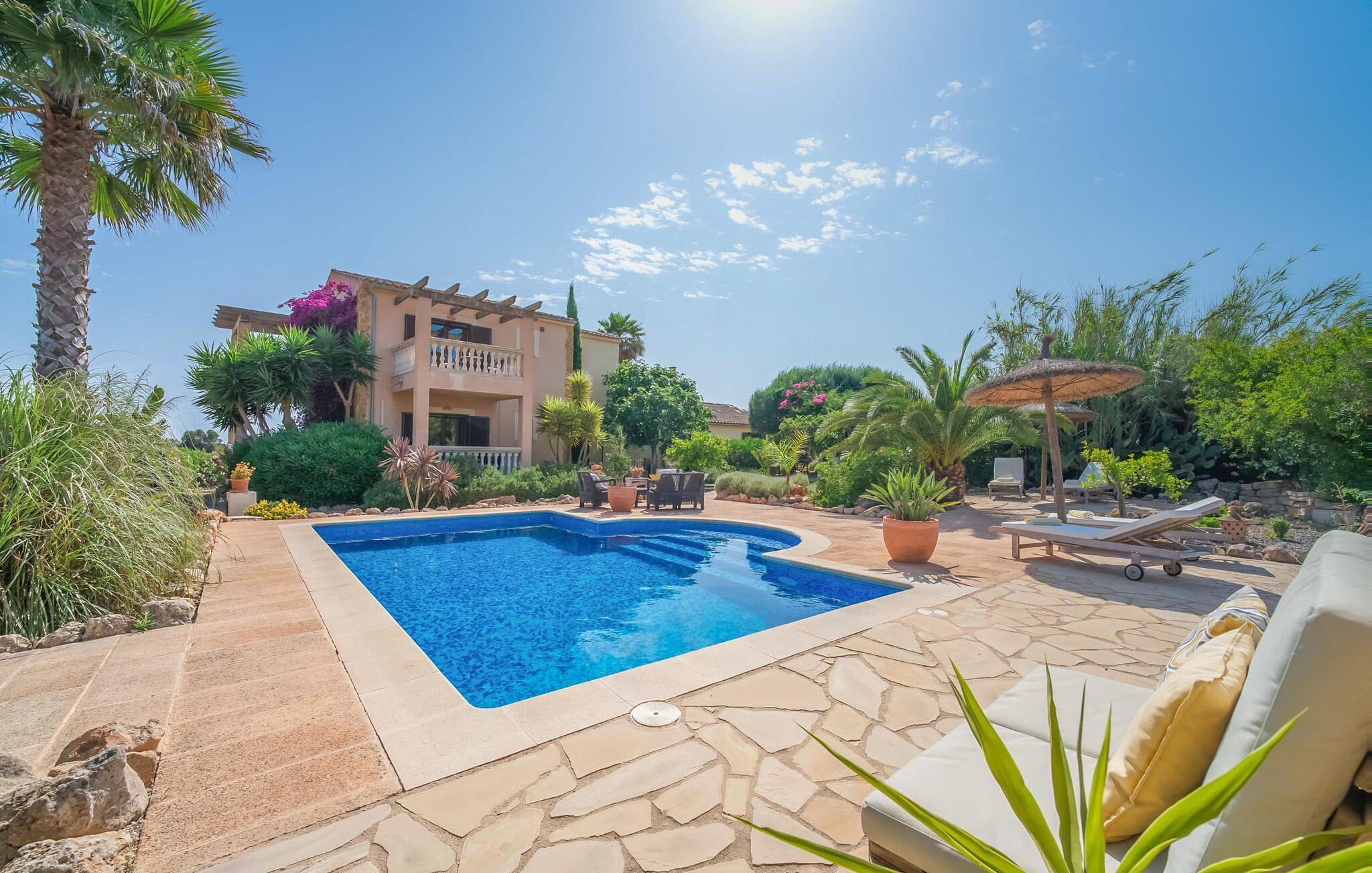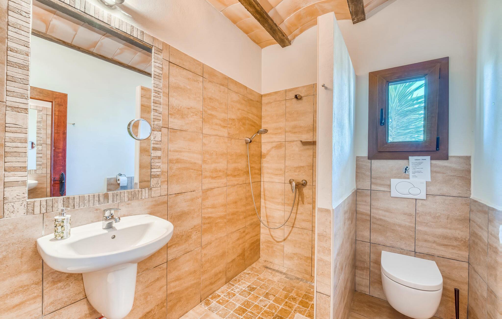 "Alqueria Fosca" er en fantastisk bondegård, smukt designet med kærlighed og sans for detaljer af sine venlige værter. Udendørsområdet er en fortryllende oase med palme-, appelsin- og mandeltræer, lyse bougainvillea og oleanderbuske. Dette er et feriehus i Fincallorca. Udover mange afslappende steder finder du et loungeområde, skyggefulde siddepladser omgivet af grønne områder og komfortable liggestole ved den klorfrie pool, perfekt til at køle af og nyde feriehyggen. Et højdepunkt er det overdækkede udekøkken med grill, gasblus, vask og køleskab, samt en spiseplads, der giver følelsen af din egen private bodega. Talrige altaner og en tagterrasse tilbyder en fantastisk udsigt over denne smukke del af det sydlige Mallorca. De fem dobbeltværelser, alle udstyret med aircondition, åbner hver ud til en balkon. De fleste værelser har deres eget køleskab, masser af opbevaringsplads og et privat brusebad, hvilket gør "Alqueria Fosca" ideel til 10 personer. Hjemmets puristiske indretning bruger naturlige farver og materialer til at skabe en rolig atmosfære, med minimal udsmykning for at forstærke følelsen af sammenhæng med naturen. De rummelige opholds-, spise- og køkkenområder afspejler denne stil, og pejsen, gulvvarmen og hjemmekontorets egnethed gør dette landsted til et perfekt tilflugtssted året rundt. Landstedet "Alqueria Fosca" er indlejret i en oase-lignende have med poolområde og et fantastisk udekøkken. Det skønne feriehus har en førsteklasses beliggenhed lige syd for Campos, hvor du kan gøre dine indkøb. Drømmestranden Es Trenc ligger kun 15 minutter væk i bil.