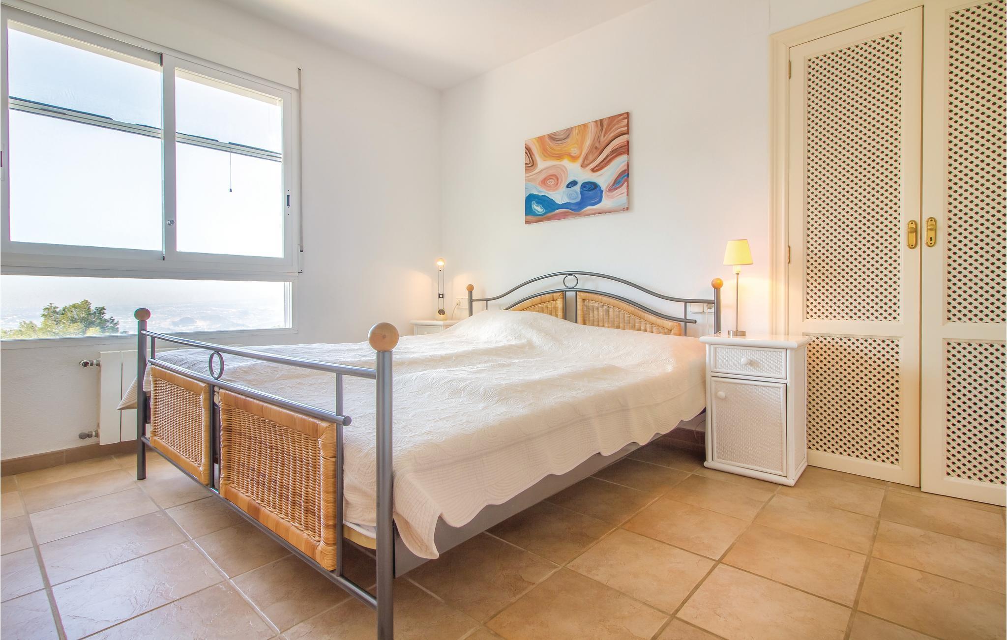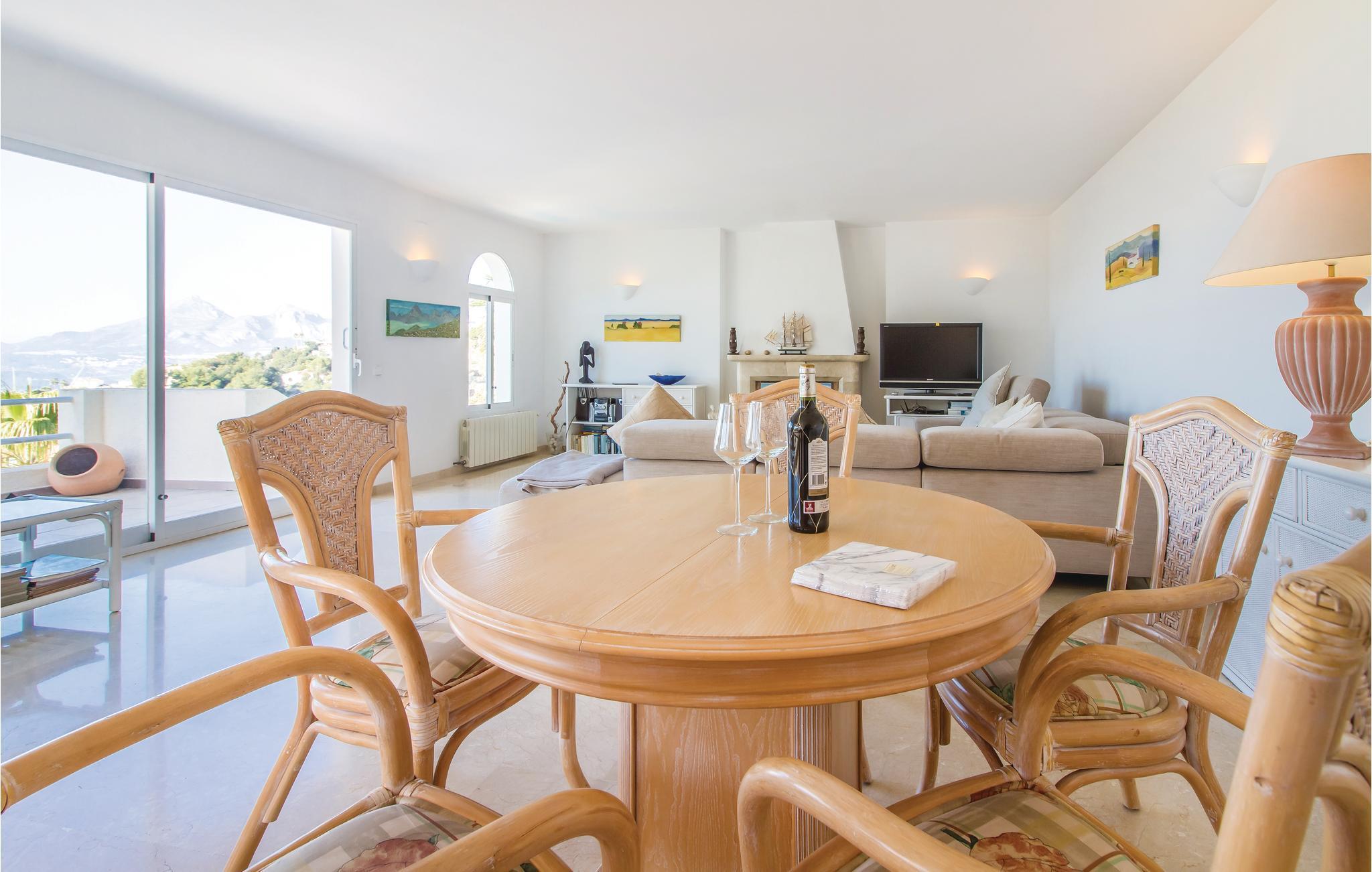 Ad en udendørs trappe kommer I op til poolen og soverværelserne i dette rummelige hus. Beboelsesafdelingen med en overdækket terrasse ligger endnu en etage højere og byder på en enestående panoramaudsigt over havet, Altea-sletten og Aitana-bjergene. En tennisplads og en golfbane ligger henholdsvis en km væk i forbindelse med bebyggelsen. Et sæt golfudstyr er til fri afbenyttelse. For foden af bjerget ligger den dejlige lystbådehavn Campomanes, som med sine restauranter og barer indbyder til en aftenspadseretur. Glem heller ikke Alteas gamle bydel, i hvis centrum kirken med blå kuppel ligger. Her holder butikker, gallerier mv. længe åbent, så behøver I ikke bruge solskinstimerne på at købe ind. I Altea er der også dejlige restauranter, fra hvis terrasser der er en betagende udsigt over den oplyste bugt.