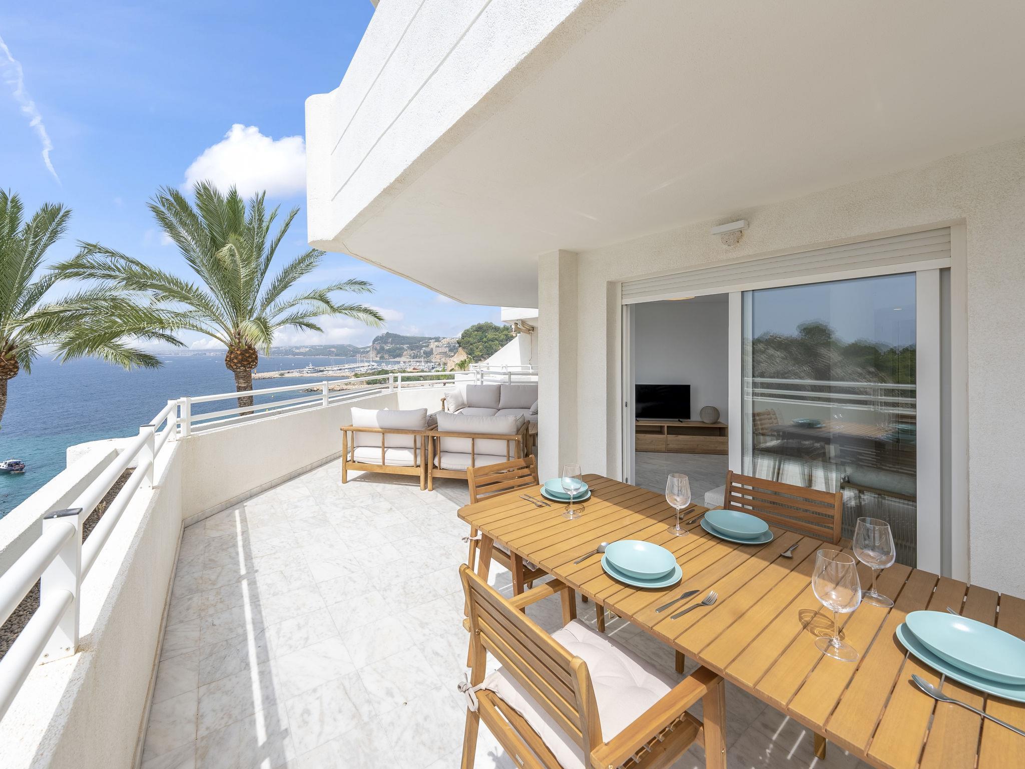 Mascarat: Beautiful apartment block "Panorama". 7 km from the centre of Altea, 6 km from the centre of Calpe, in a quiet, sunny position, traffic calmed area, at the seaside, on the beach. For shared use: property (fenced), garden with lawn, swimming pool (20 x 8 m, seasonal availability: 01.Jan. - 31.Dec.). Outdoor shower. In the house: lift. Grocery 3 km, supermarket 3 km, restaurant 2 km, bus stop "Parada Bus" 5.5 km, rocky beach "Playa Mascarat" 80 m. Sports harbour 600 m, marina 600 m, golf course (9 hole) 7 km. Nearby attractions: Aqualandia, Mundomar, Terra Mítica, Terra Natura, Les Fonts de l'Algar, Castillo de Guadalest.