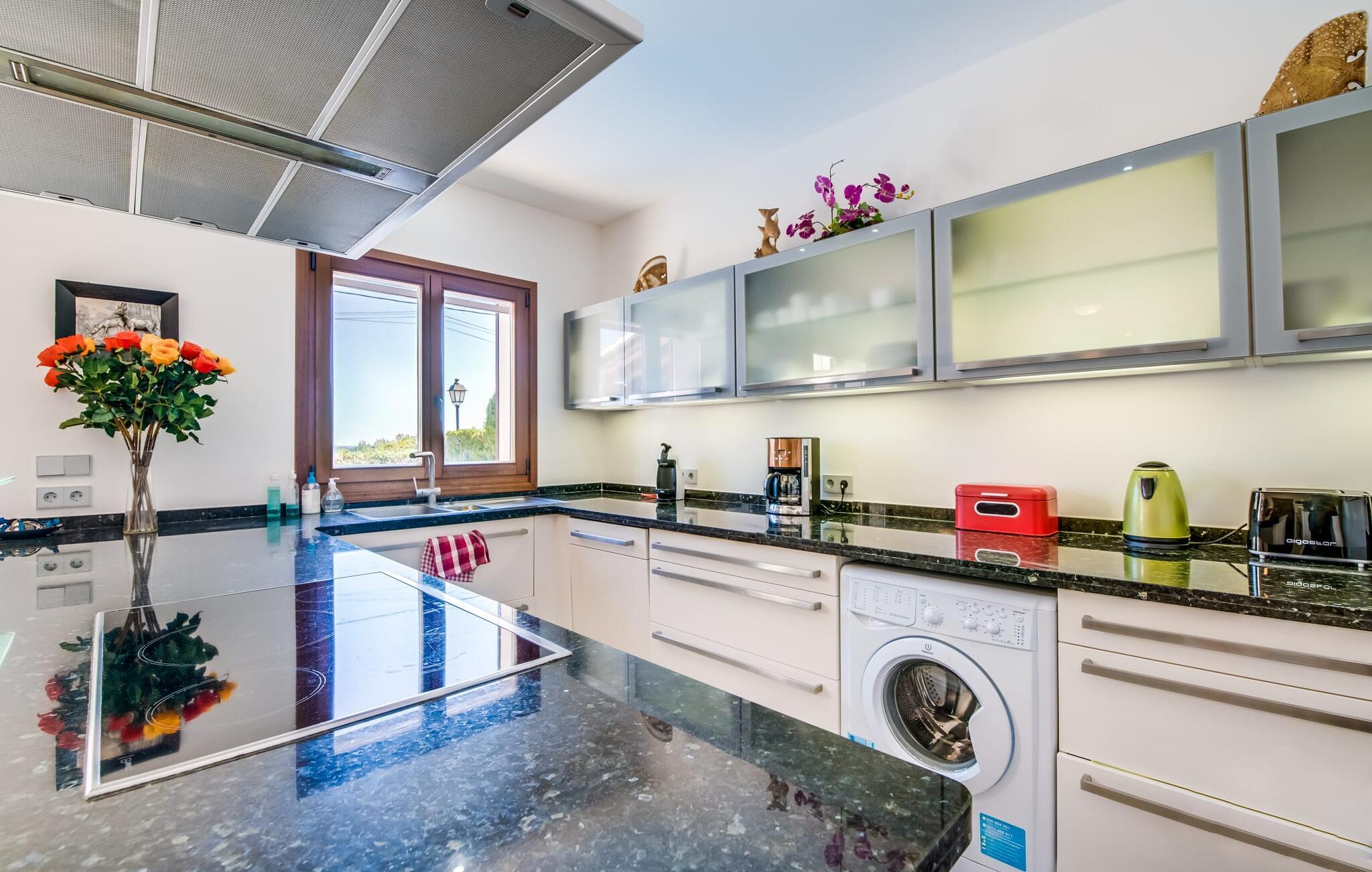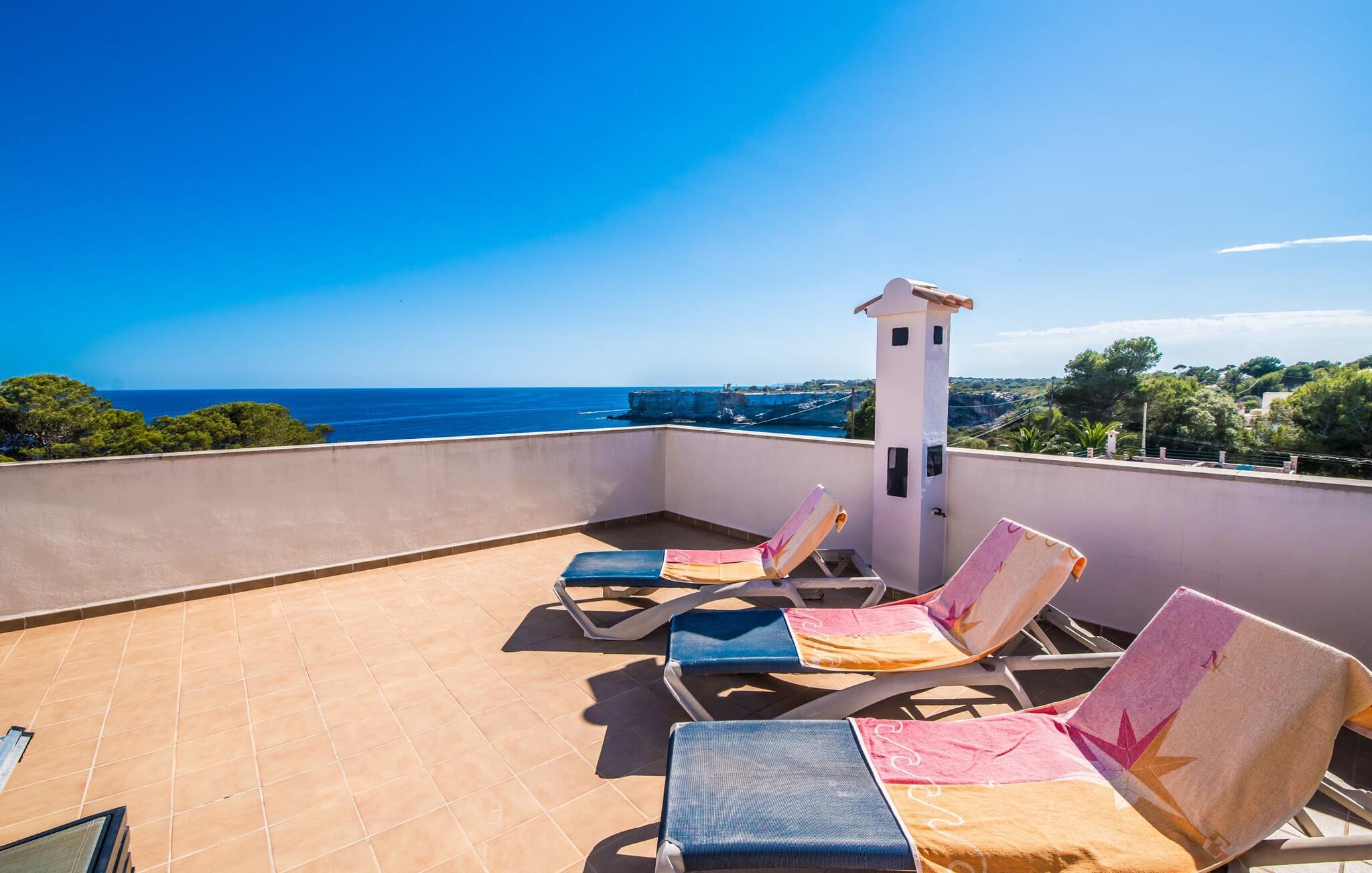 Denne typiske mallorcanske finca "Amarador" tilbyder en betagende udsigt over havet og er beliggende i hjertet af S'Amarador Natural Park, beliggende mellem kystklipper og sandstrande. Parkeringspladser er bekvemt placeret lige foran døren. Dette er et feriehus i Fincallorca. Den smukke have og terrasse inviterer dig til at slappe af, med forskellige delvist overdækkede områder perfekt til afslapning. Den runde pool, dekoreret med en delfinmosaik, har et moderne lyssystem til magiske aftener. Efter svømning kan du slappe af på liggestolene. En overdækket grillplads giver den perfekte plads til al fresco spisning. Tagterrassen byder på en betagende panoramaudsigt over havet, poolen og bjergene, perfekt til uforglemmelige aftener. Indenfor sikrer villaens luksuriøse faciliteter et behageligt ophold. Den rummelige opholdsstue i åbent plan er ideel til at slappe af, se en film eller nyde et måltid, mens det moderne køkken er fuldt udstyret til ferie. Tre indbydende soveværelser med dobbeltsenge og tre badeværelser garanterer privatlivets fred og gør denne villa perfekt til par eller små familier. Denne villa har en rolig beliggenhed på første linje af havet på Mallorcas sydkyst. Det byder på en fantastisk udsigt over det dybe blå hav lige foran huset samt klipperne spredt ud ved siden af. Santanyí (10 minutter væk i bil) byder på gode indkøbsmuligheder til hverdagsbehov samt adskillige fremragende restauranter og barer. Den utrolige fiskerihavn Cala Figuera med sine indkøbsmuligheder, restauranter og barer ligger kun 7 minutter væk i bil. De smukkeste naturlige sandstrande på Mallorca ligger kun få minutter væk i bil. Området omkring villaen er perfekt til cykling langs kysten.