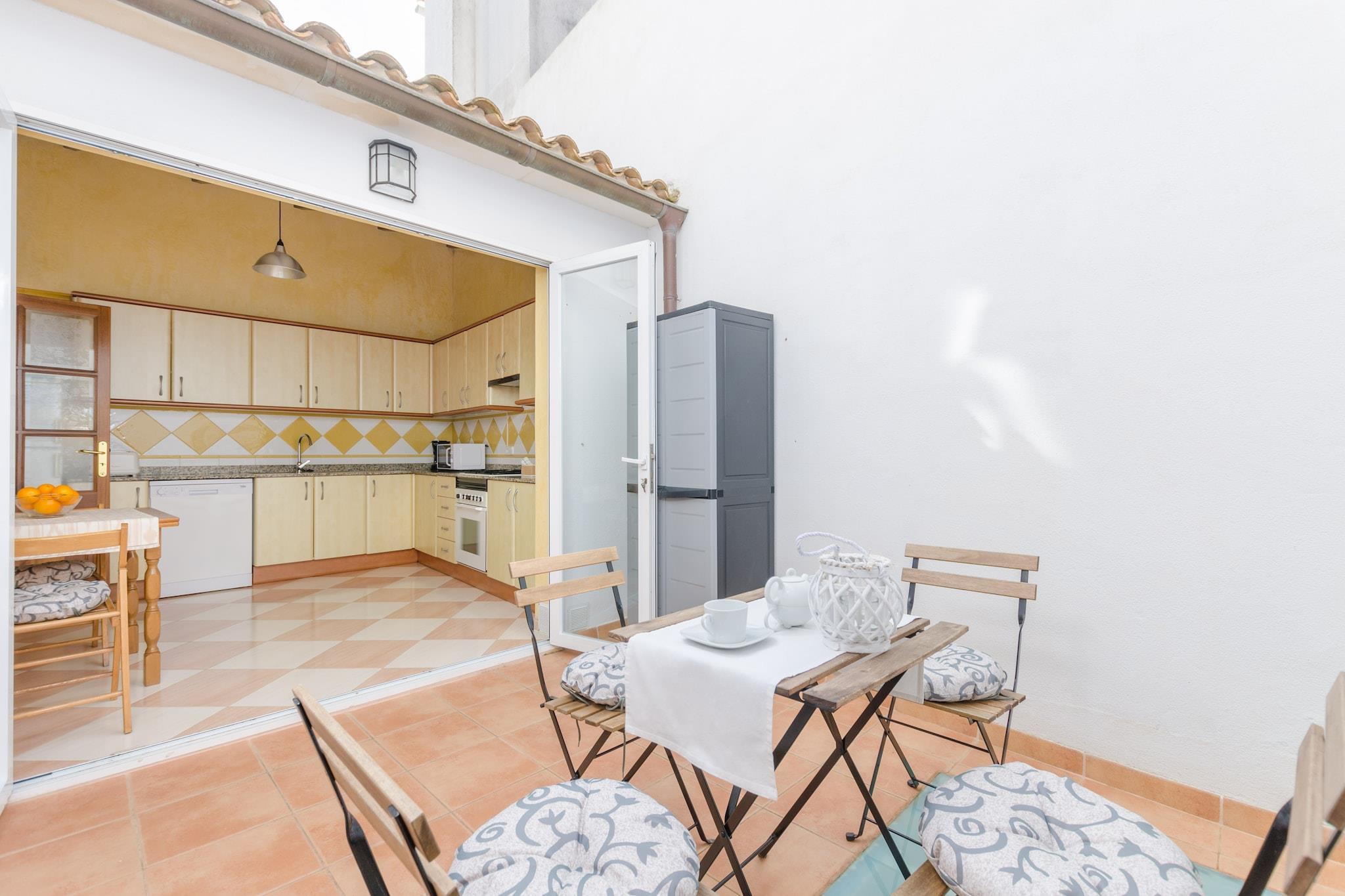 Nyd en flot udsigt over bjergene og landsbyerne fra tagterrassen i dette charmerende 4-etagers rækkehus i hjertet af Artà. Start din dag med morgenmad i solen, slap af med en bog på hængekøjerne, eller nyd vin ved solnedgang. En anden, mere privat terrasse er ideel til hyggelige måltider eller aftendrinks. Den første tilgængelige etage (stueetagen er lukket) har et rummeligt køkken med gaskomfur, ovn, mikroovn, kaffemaskine og meget mere. Glasskydedøre forbinder den med den indvendige terrasse for en problemfri indendørs-udendørs følelse. Stuen/spisestuen byder på plads til at slappe af med satellit-tv og radiator, og der er et komplet badeværelse med bruser på dette niveau. Ovenpå finder du tre soveværelser - et med to enkeltsenge skubbet sammen, et med en dobbeltseng og et med en enkeltseng - alle med skabe, plus et andet badeværelse med badekar. To soveværelser har desuden radiatorer. Fans, en barneseng og en høj stol er tilgængelige. Vaskerummet byder på vaskemaskine, strygejern og strygebræt. Beliggende i det centrale Artà, vil du have butikker, restauranter og kultur lige uden for døren. Strande som Cala Moll og golf ved Capdepera er kun en kort køretur væk.