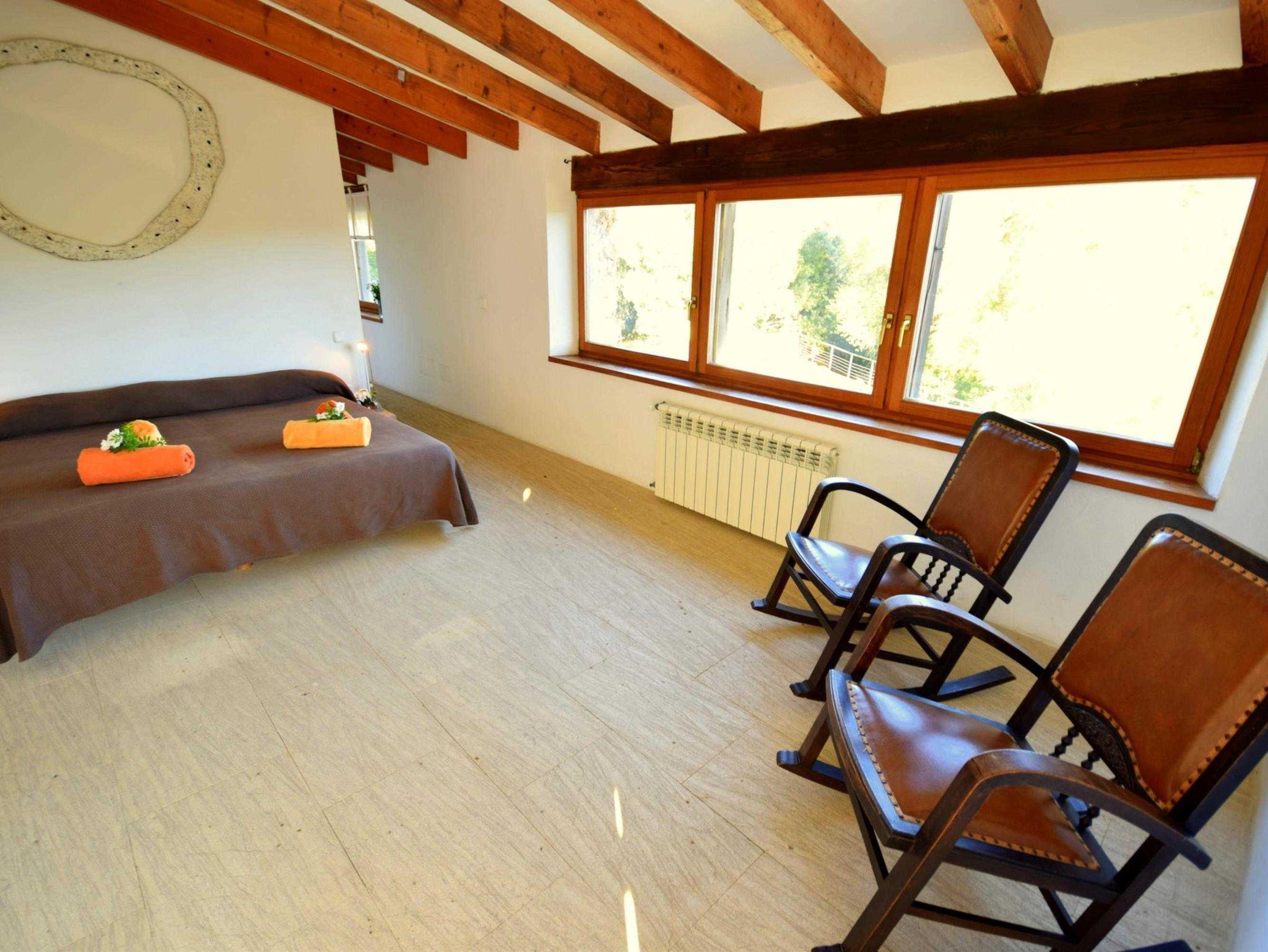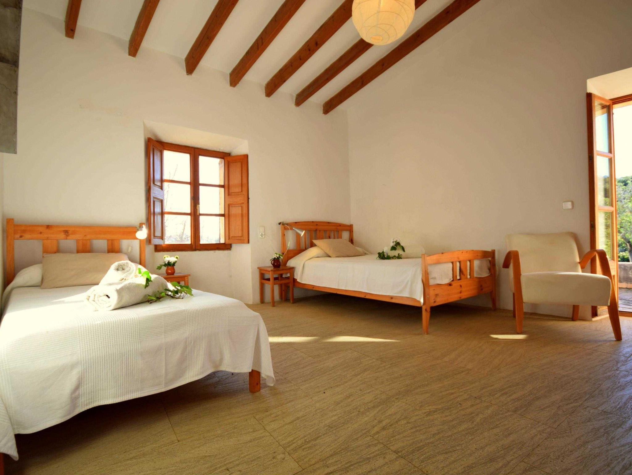 Diese historische Finca Son Pastor aus dem Beginn des 19. Jahrhunderts wurde 2003 unter Erhaltung klassischer Elemente liebevoll restauriert und modernisiert. Auf 60.000 Quadratmeter Grundstückgröße gelegen bietet auch das Haus mit Nebengebäuden und Terrassen reichlich Platz, Rückzugspunkte und Ruhe. Der Pool wurde aus einem ehemaligen Wasserdepot umfunktioniert und ist zwischen 4 und 7 Meter breit bei einer Länge von 12 Metern. Er fällt von 1,5 Meter bis auf 3 Meter ab !Das Haus kann ohne weiteres mit mehr als 10 Personen genutzt werden, wobei eine Aufbettung notwenig wird. Die Finca verfügt über mehrere Terrassen. Im Haus verfügen Sie über 5 helle und geräumige Schlafzimmer, 4 davon mit Einzelbetten die entweder zusammen oder getrennt stehen und ein Doppelbett. Ebenso drei moderne Bäder.