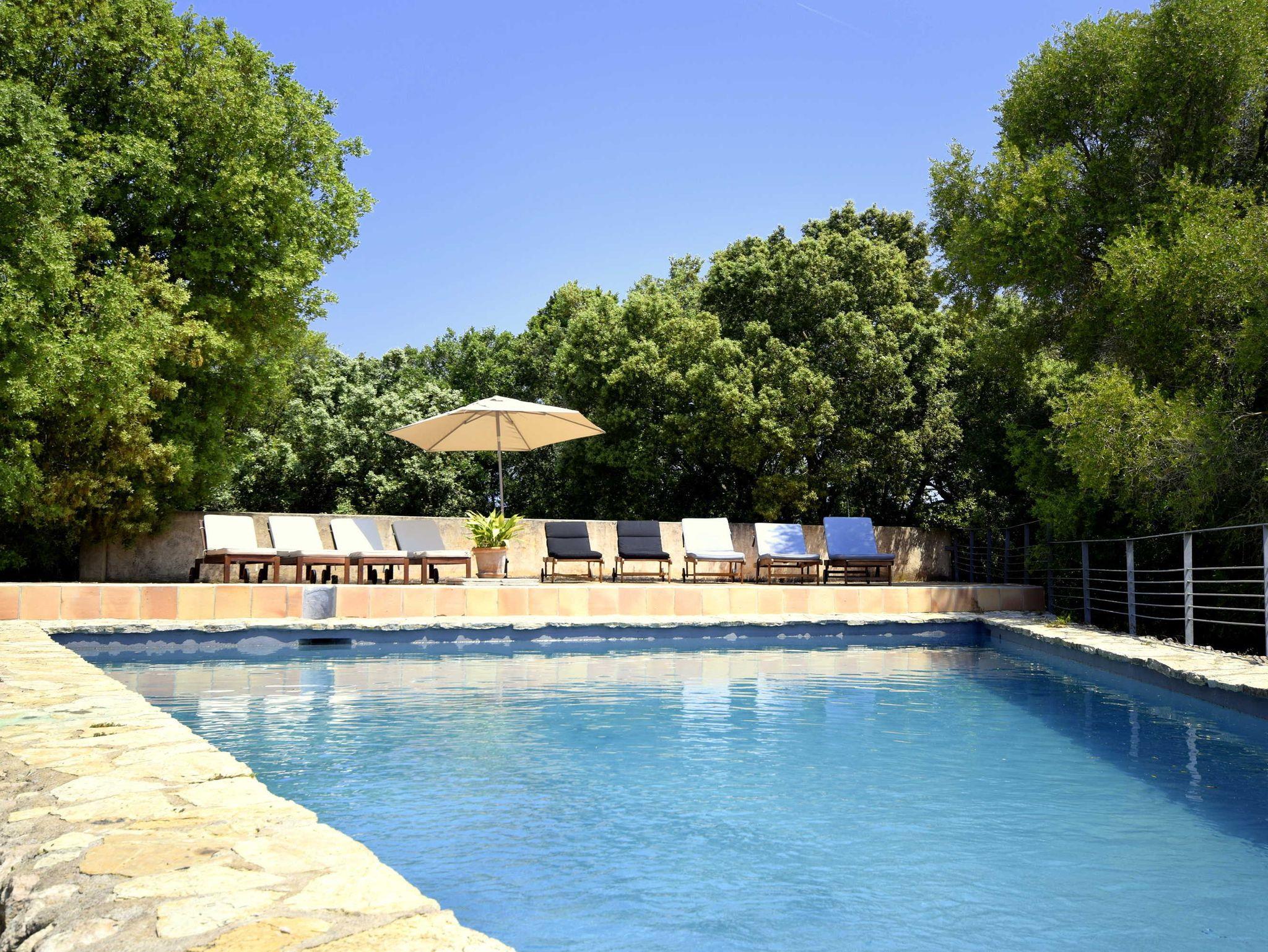 Der Aussenbereich liegt sehr ruhig unweiten des Waldes mit privatem Pool und überdachter Grillecke.