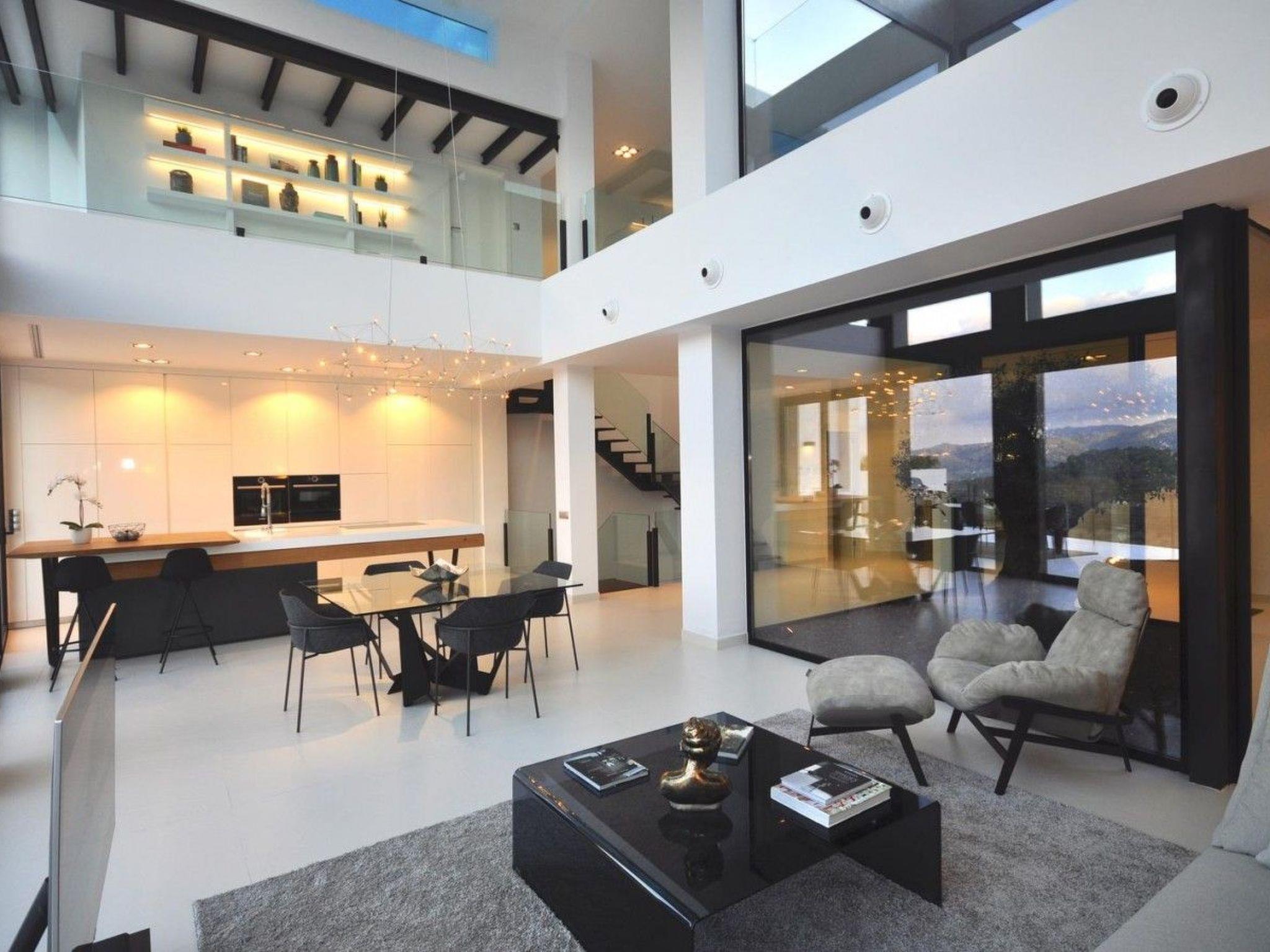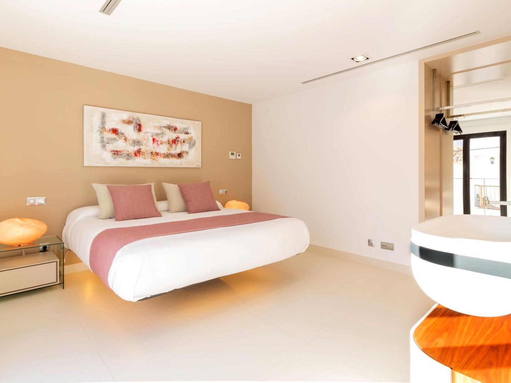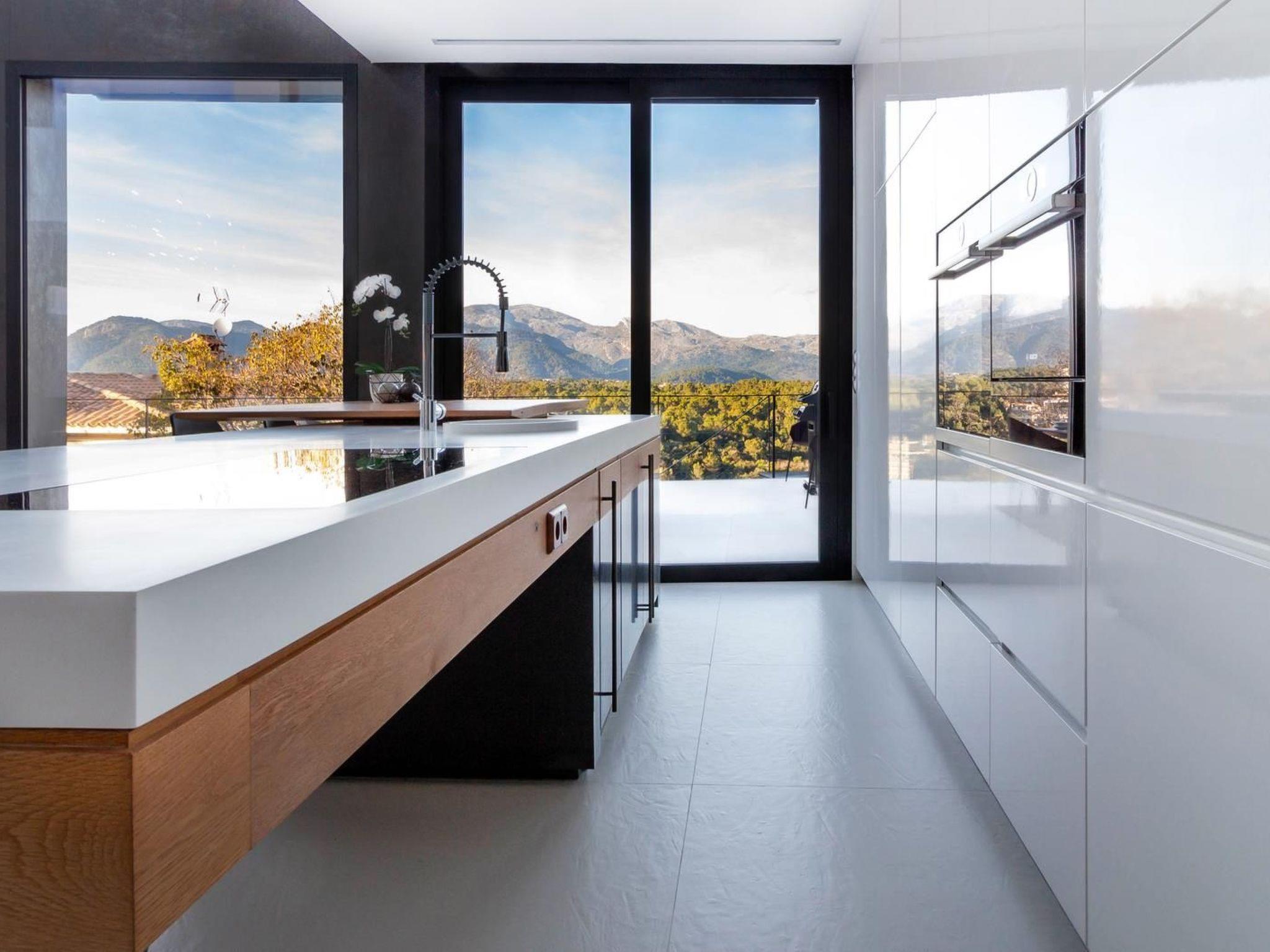 The house has an excellent architectural design, which is accompanied by a spectacular decoration and interior design. The quality of the furniture throughout the house stands out, with the presence of the best brands of high Italian, French, Scandinavian design... such as Cattelan, Lago, Ligne Roset, Arketipo... Behind this furniture there is the signature of great designers such as Philippe Starck, Claudio Dondoli, Marco Pocci, Andrea Lucatello, Sebastian Herkner, Mauro Lipparini, Giuseppe Viganò... The house stands out for its great luminosity and spaciousness, and the unconventional dimensions of the doors and windows are also surprising. Such as the single-leaf entrance doors, which are more than 1.70m wide and 3.50m high, or the garage door, which is almost 6m long. In addition, the privileged location of the house offers magnificent views of the Tramuntana mountain range. In order to be able to enjoy this splendid landscape from practically every corner of the property, the main façade has been equipped with 6 large windows, with the aim of framing the whole of the mountain. The largest single piece of glass is over 5m long and 3m high. The quality and design are still present in the kitchen, taps, bathrooms, toilets... signed by Porcelanosa, as well as in the electrical appliances with brands such as Bosch Neff... The terrace furniture, consisting of outdoor dining room, sun loungers, hammocks, rugs... is by Vondom. The lighting is from brands such as Foscarini, Artemide, Pulpo... In the centre of the house there is a centenary olive tree (more than 200 years old). The swimming pool is located on the rooftop, in order to maximize the great potential of the views, thus obtaining a panoramic view of practically the entire Sierra de Tramuntana mountain range and even the sea of the Bay of Alcudia. In addition, one of the walls of the pool is made of glass, which allows the light and the movement of the water to be reflected inside the house and at the same time the dining room and the living room can be observed from the bottom of the pool.