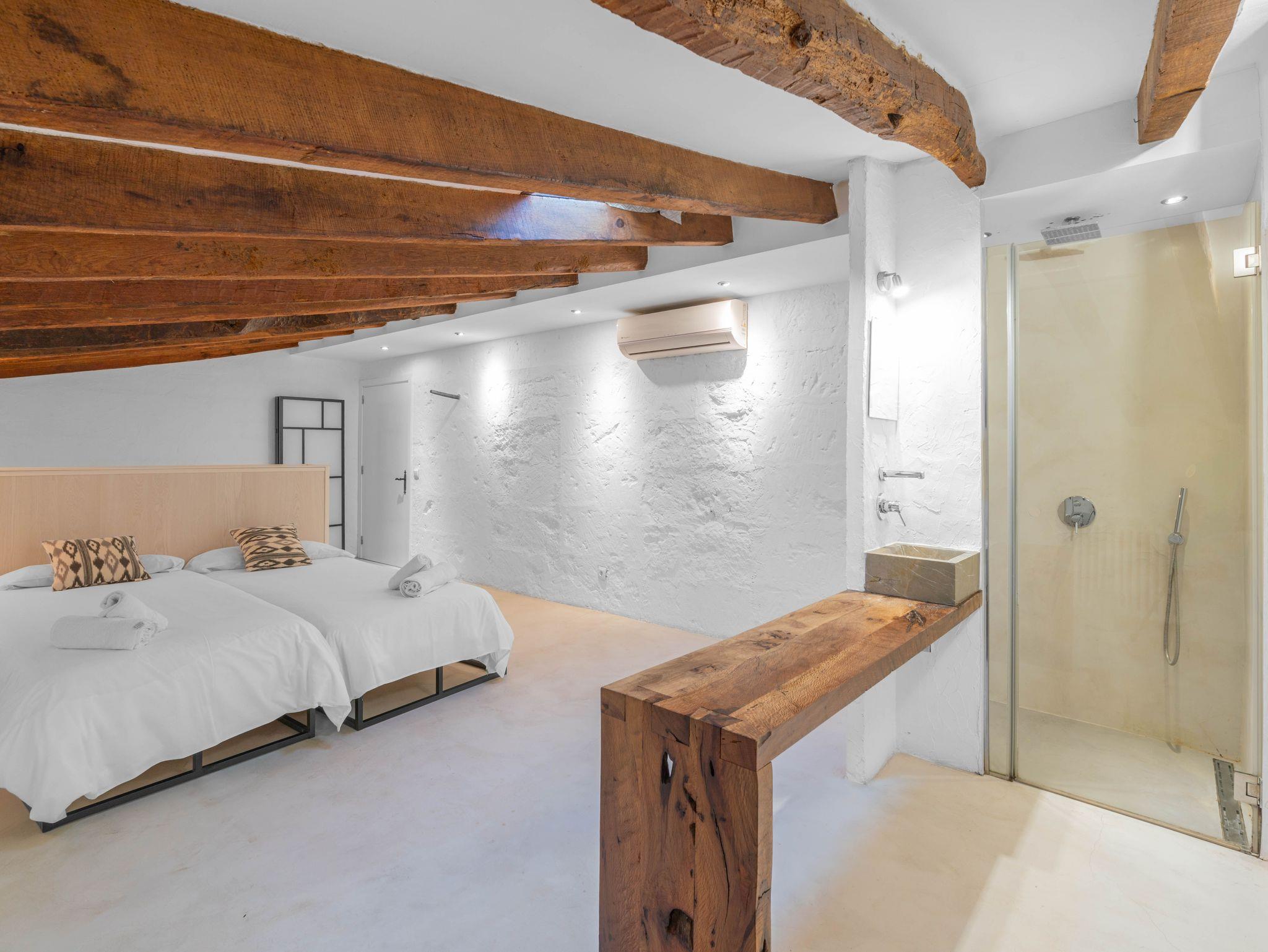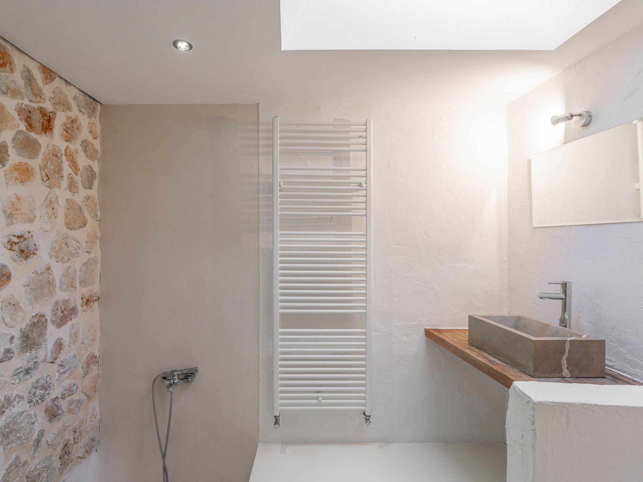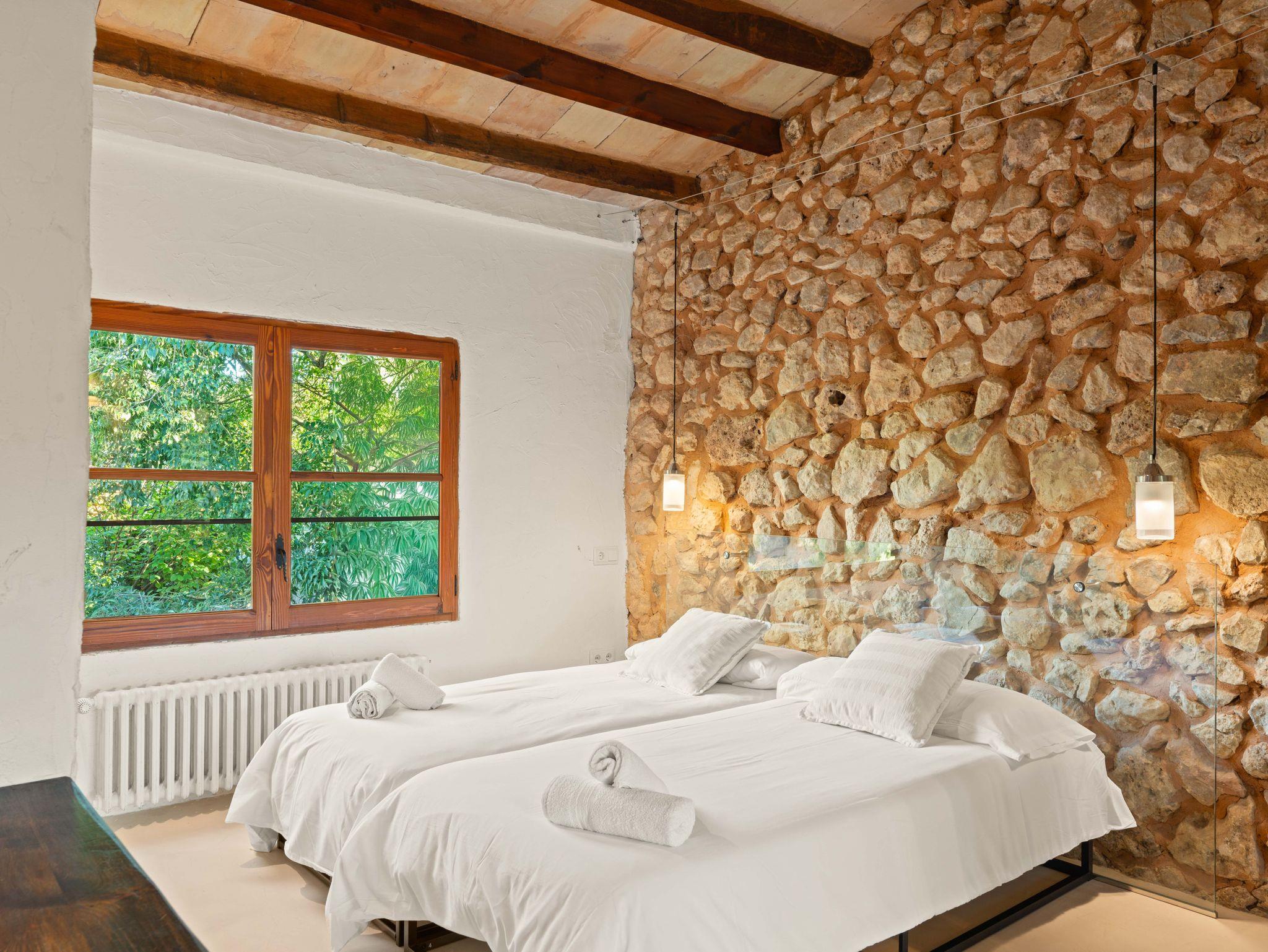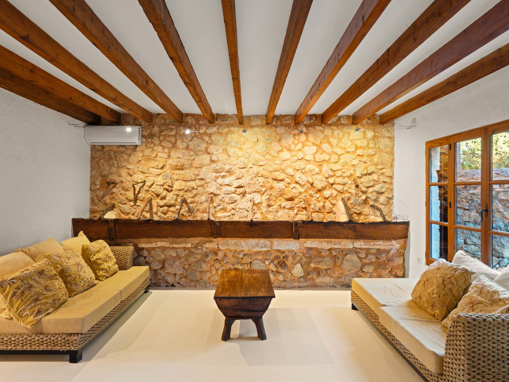 Ihre Steinmauern, Holzbalken und authentischen Details treffen auf moderne Elemente wie Mikrozementböden in der Finca Can Mir und Finca Es Rafal, was eine frische und elegante Atmosphäre schafft, ohne den rustikalen Charme zu verlieren.