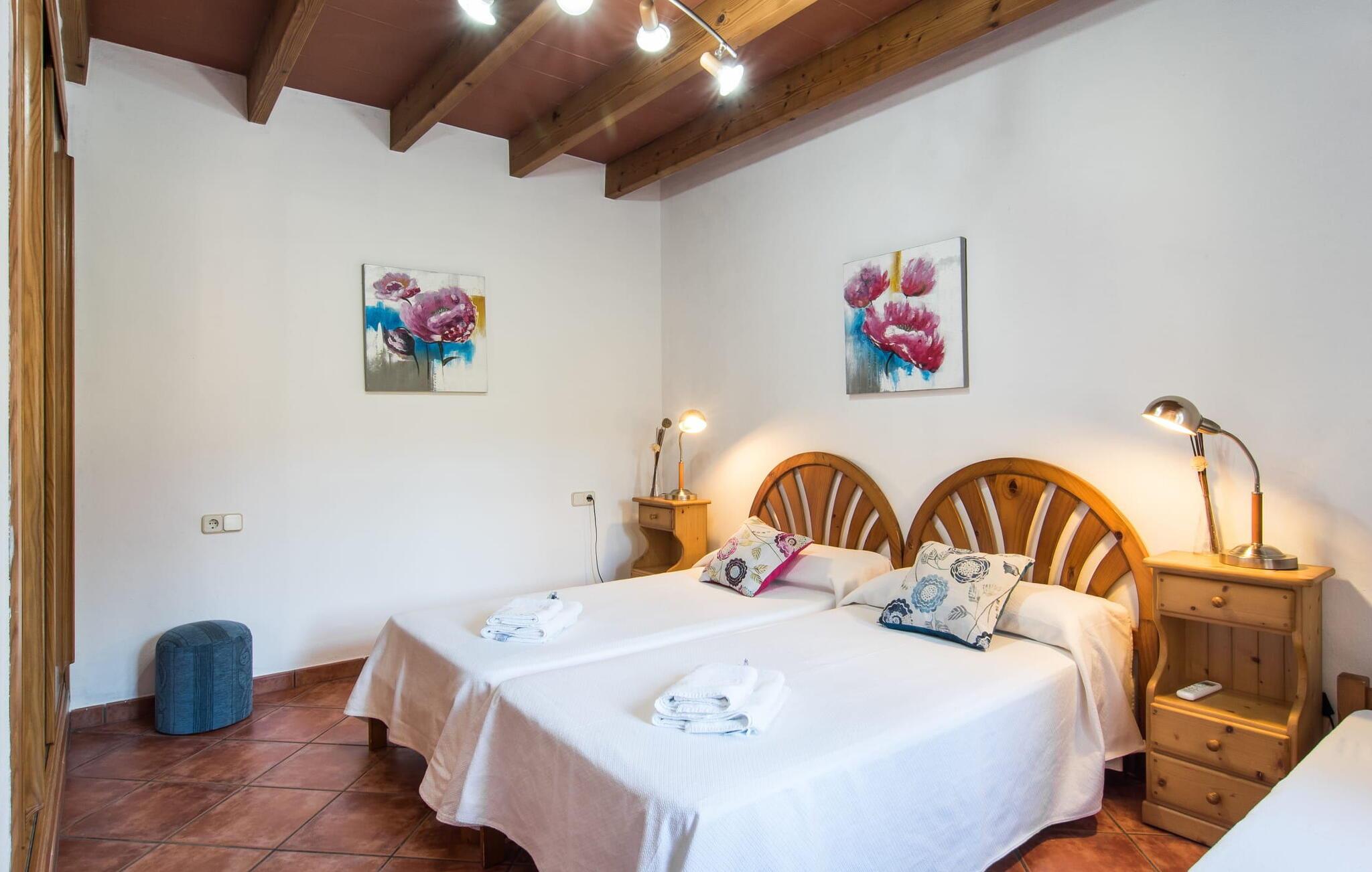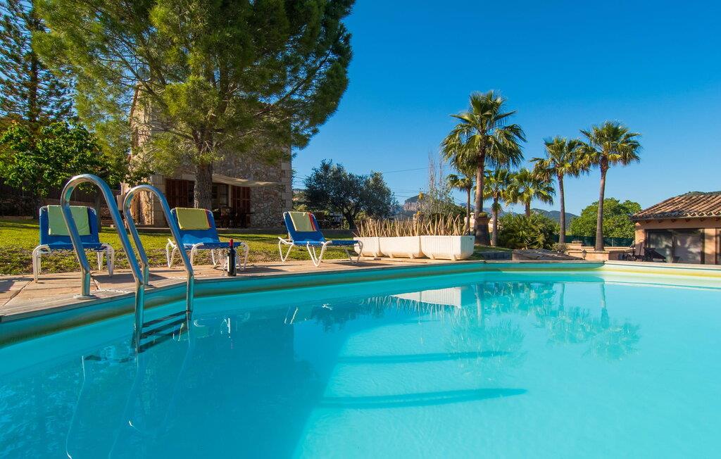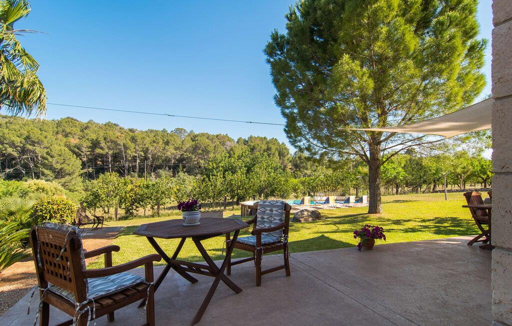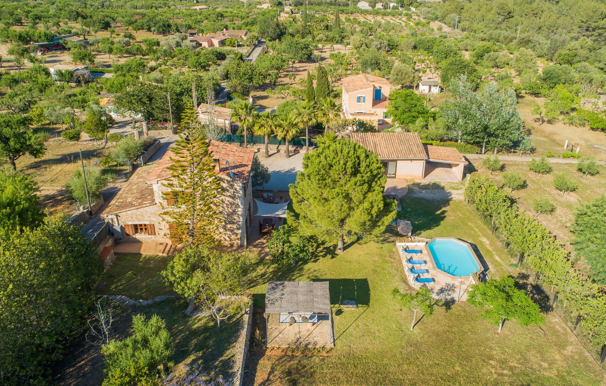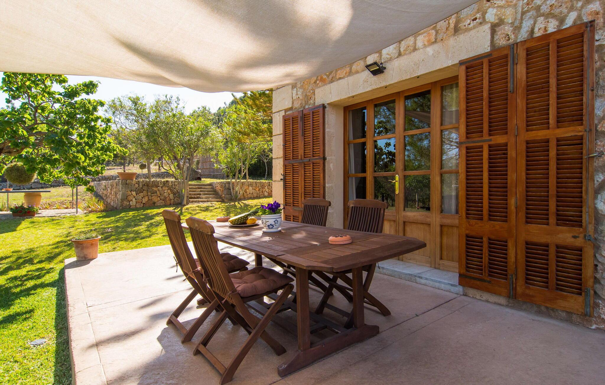 Rent landliv for hele familien - det er, hvad der venter jer i "Banyols"-gården. Mellem Alaró og Consell i centrum af øen kan I nyde ægtheden af et mallorcansk feriehus på den majestætiske baggrund af Tramuntana-bjergene. Så det er næppe overraskende, at naturen ikke kun viser sin mangfoldige rigdom i den kærligt designede have, men at vores gæster er fuldstændig betaget af de til tider spektakulære omgivelser. Det to-etagers feriehus lavet af stenbrud med lyse træskodder putter sig i naturens grønne skød. Samtidig er designet familievenligt med træpoolen, der lover sjov og forfriskning i en børnevenlig dybde. Overdækkede siddepladser i haven og terrasse overdækket med markiser giver de bedste muligheder for at slappe af og spise på ethvert tidspunkt af dagen. Uanset om det er stort eller lille, kan hele familien eller endda to slappe af og nyde feriefølelsen her. Den harmoniserende følelse understøttes af en typisk landstedsflair mellem tradition og modernitet. Varme terracottatoner, træelementer og fritlagte brudsten sætter tonen an. Traditionelle blå og hvidmalede fliser i det fuldt udstyrede køkken definerer standarden for dette autentiske feriehus. Det gælder naturligvis også for de værelser, der har aircondition for at sikre en følelse af velvære, herunder de tre dobbeltværelser. Der er et moderne brusebad på hver etage for op til seks personer. Den hyggelige stue med pejs lover en rustik feriefølelse selv i de kølige måneder, som lover meget milde og behagelige temperaturer på Mallorca. Den smagfulde udsmykning uddyber dette med et passende strejf af nostalgi. I øvrigt bør I bestemt tage et kig på tiderne uden for sæsonen, for de moderate lejepriser er et yderligere incitament til at booke tidligt. Uanset hvornår på året - det hyggelige bondehus "Banyols" venter på jer og byder jer hjertelig velkommen. Og hvornår kan vi byde jer velkommen? Bondehuset "Banyols" med middelhavshave og pool er et familieferiehus på Mallorca, som kan lejes hele året rundt. Det ligger omkring 3 km syd for Alaró. Der kan I gøre jeres indkøb i supermarkederne eller på det ugentlige marked. Øens hovedstad Palma kan nås i bil på omkring 25 minutter. I kan også kombinere turen med et besøg på de smukkeste strande på vestkysten som Passeig del Molinar eller Cuidad Jardin.