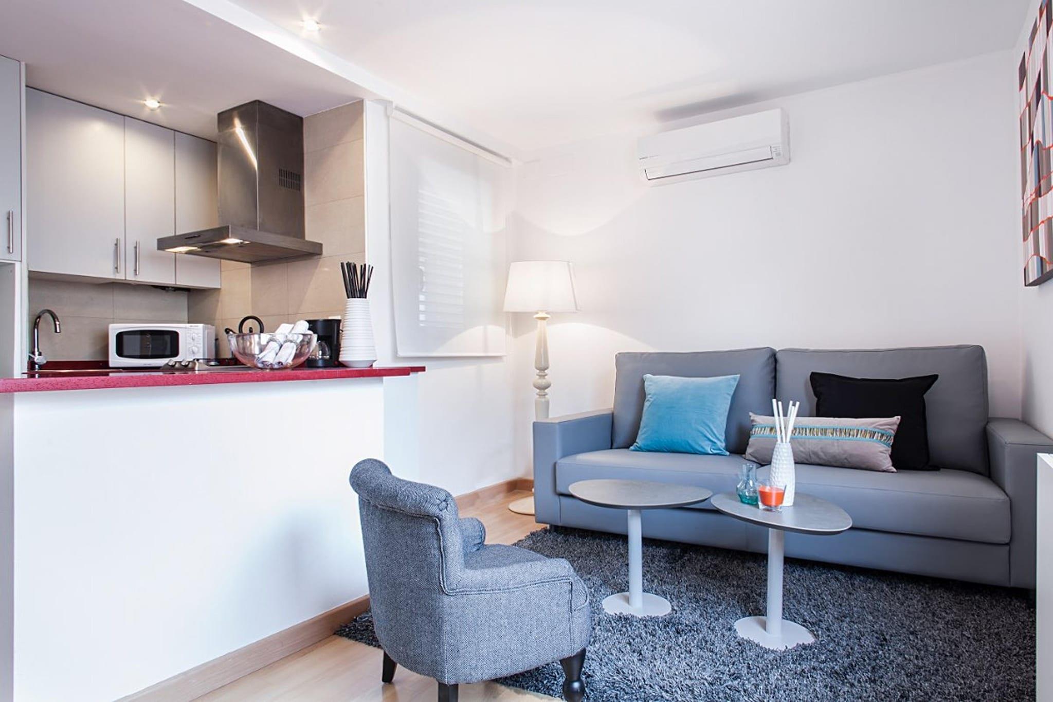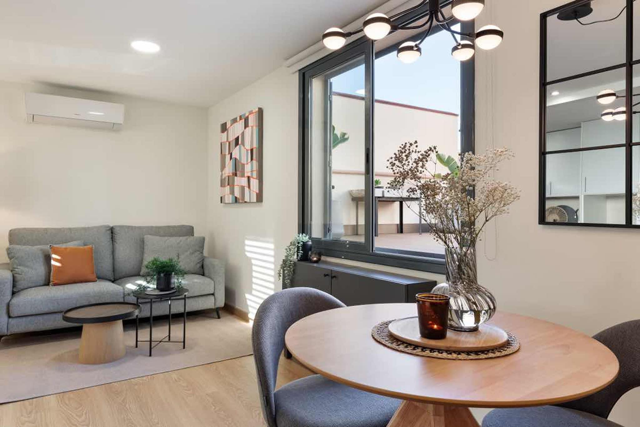 Velkommen til denne fantastiske penthouse i Barcelona, et strålende tilflugtssted med en rummelig 60 m² terrasse perfekt til udendørsliv. Denne helt udvendige lejlighed er badet i naturligt lys og tilbyder en moderne og behagelig opholdsoplevelse. Penthousen indeholder to soveværelser med dobbeltsenge: det ene med en 150x190 cm dobbeltseng og et klædeskab, og det andet med to enkeltsenge og en kommode. En kort køretur eller sporvognstur vil tage dig til Barceloneta Beach, hvor du kan slappe af ved Middelhavet, nyde frisk fisk og skaldyr på restauranter ved stranden eller tage en afslappet gåtur langs strandpromenaden. travle gade i hjertet af byen, La Rambla er fyldt med butikker, caféer og gadeartister. Den pulserende atmosfære og nærliggende attraktioner, såsom Boqueria-markedet, gør det til en populær destination. Den åbne-plan stue-spisestue integreres problemfrit med det fuldt udstyrede køkken, designet til at tage højde for måltider for op til fire personer. Moderne faciliteter er i overflod, herunder varme, aircondition, tv og WIFI internetadgang. En praktisk vaskemaskine-tørretumbler sikrer, at dit ophold bliver så ubesværet som muligt. Det stilfulde brusebad tilføjer et strejf af luksus til denne enestående ejendom. Uanset om du slapper af på den store terrasse eller nyder det lyse, luftige interiør, tilbyder denne penthouse en perfekt blanding af komfort og sofistikering i hjertet af Barcelona.
