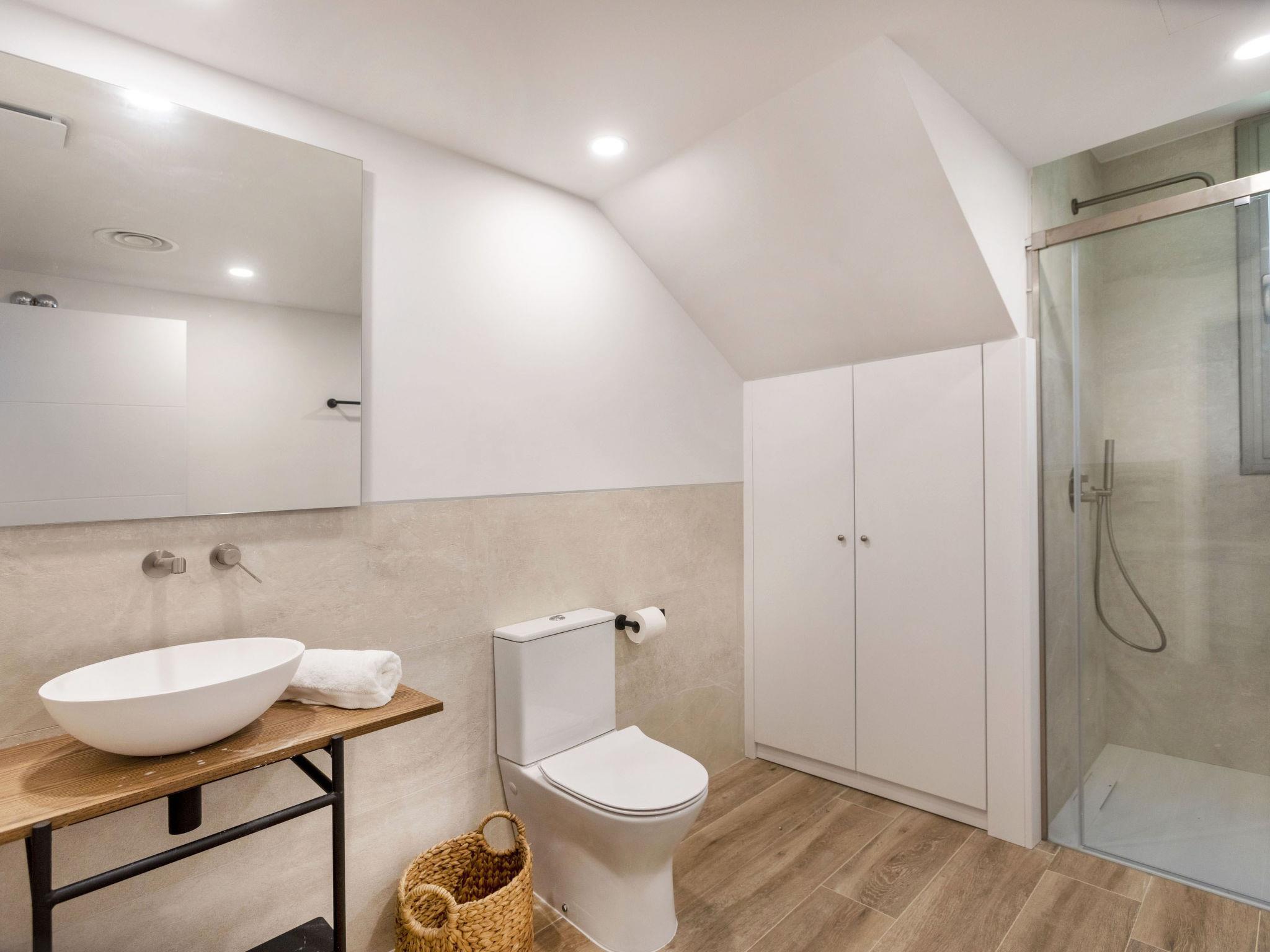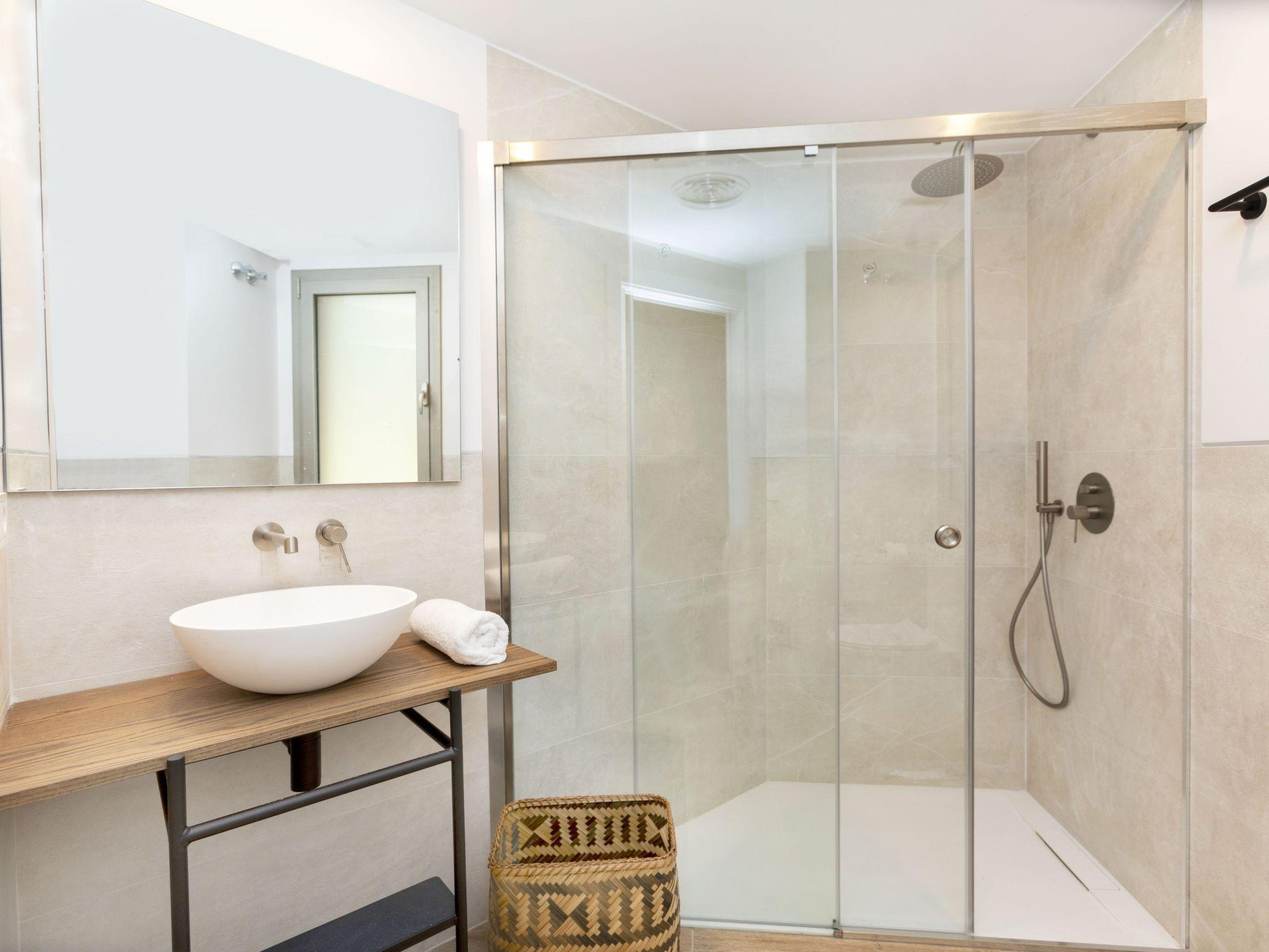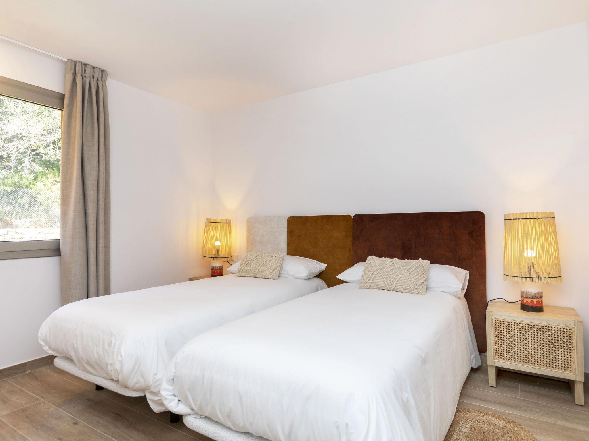 "Ses Falugues", 8-room villa 550 m2 on 3 levels. Living/dining room with air conditioning and forced-air heating. Exit to the garden, to the terrace, to the swimming pool. 1 room with 2 beds (90 cm, length 190 cm). 1 room with 1 french bed (150 cm, length 190 cm). 1 room with 2 beds (90 cm, length 190 cm), shower/WC. 1 room with 2 beds (90 cm, length 190 cm), shower/WC. 1 room with 1 french bed (150 cm, length 190 cm), bath/WC. Open kitchen (oven, dishwasher, 4 induction hot plates, toaster, kettle, microwave, freezer, electric coffee machine, cooking island). Shower/WC, sep. WC. Air-conditioning, forced-air heating. On the lower ground floor: 1 room with 2 beds (90 cm). 1 room with 1 french bed (150 cm, length 190 cm). Shower/WC. Terrace furniture, deck chairs. View of the sea and the countryside. Facilities: washing machine, iron, children's high chair, baby cot, hair dryer. Internet (WiFi, free). HUTG-072544 // Reg. Nr.: ESFCTU00001701400018380900000000000000000HUTG-0725445