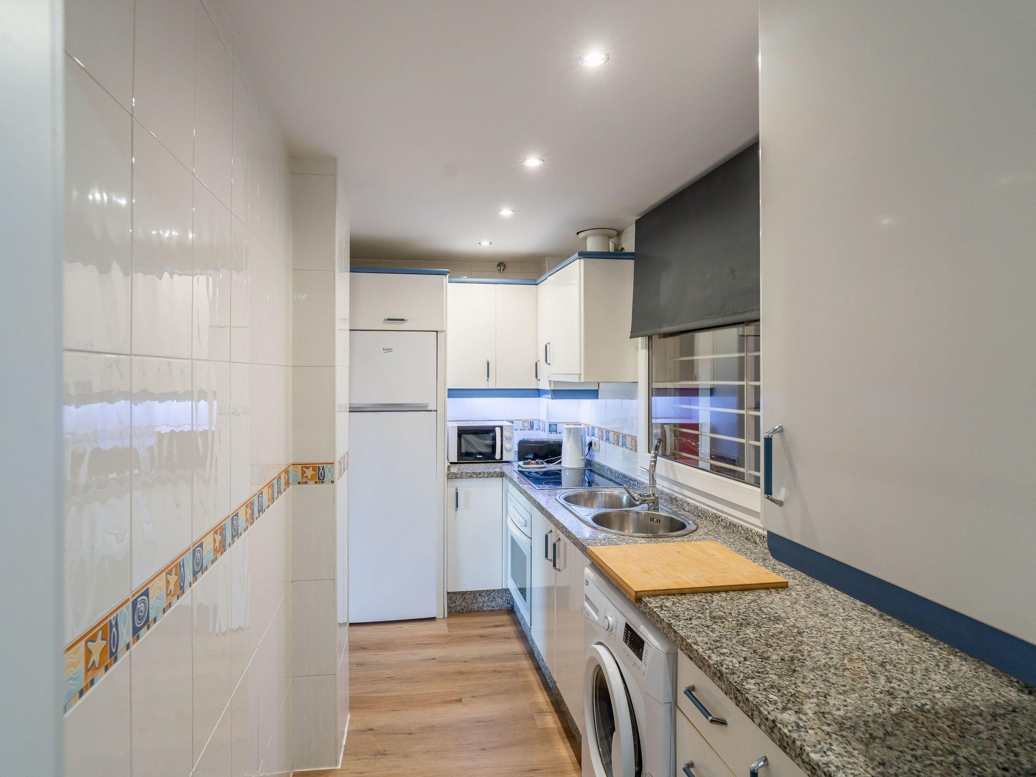 This flat, Casa Vela has 2 bedrooms, 2 bathrooms, living room with sofa bed, kitchen and terrace with magnificent views. L'appartement a également l'air conditioning, wifi internet, private parking, 2 communal swimming pools, communal gardens, communal solarium with stunning sea views and a communal gym. L'appartement est situé à environ 800 mètres de la mer et se trouve à environ 3,5 km de la Marina. Il se trouve à environ 10 minutes à pied des bars et des restaurants. VEUILLEZ NOTER QUE LA PERSONNE FAISANT LA RÉSERVATION DOIT AVOIR AU MOINS 25 ANS.Internet haut débit dans tout l'.Events/parties are not permitted in this apartmentPets are not allowed.