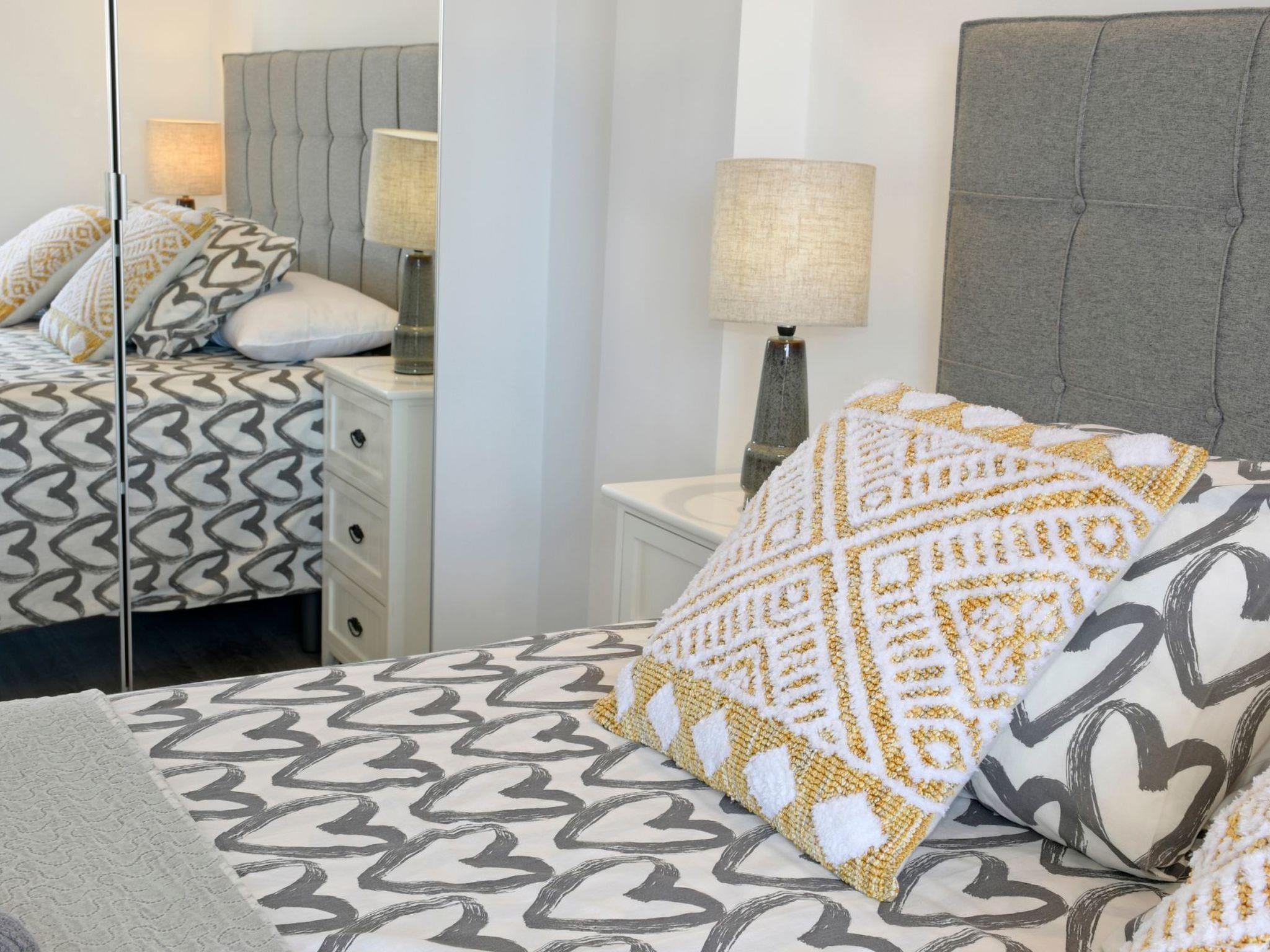 There are 2 bedrooms, one with a double bed and'autre avec 2 lits simples. Le salon dispose d'a sofa bed and a fully equipped kitchen.