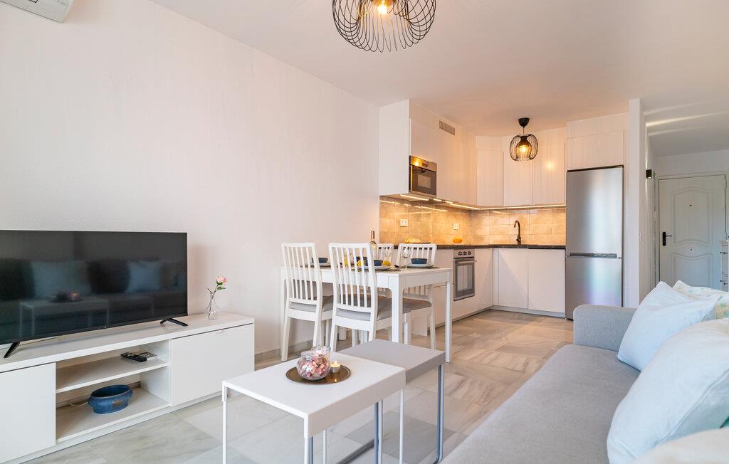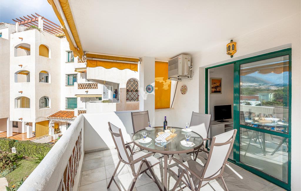 Dette velholdte lejlighedskompleks er det ideelle udgangspunkt for jeres ferie på Costa del Sol. Her kan I flytte ind i denne lejlighed, som er varmt om hjemligt indrettet. Snup en lille morgenmad på altanen, inden I begiver jer ud på dagens udflugter.