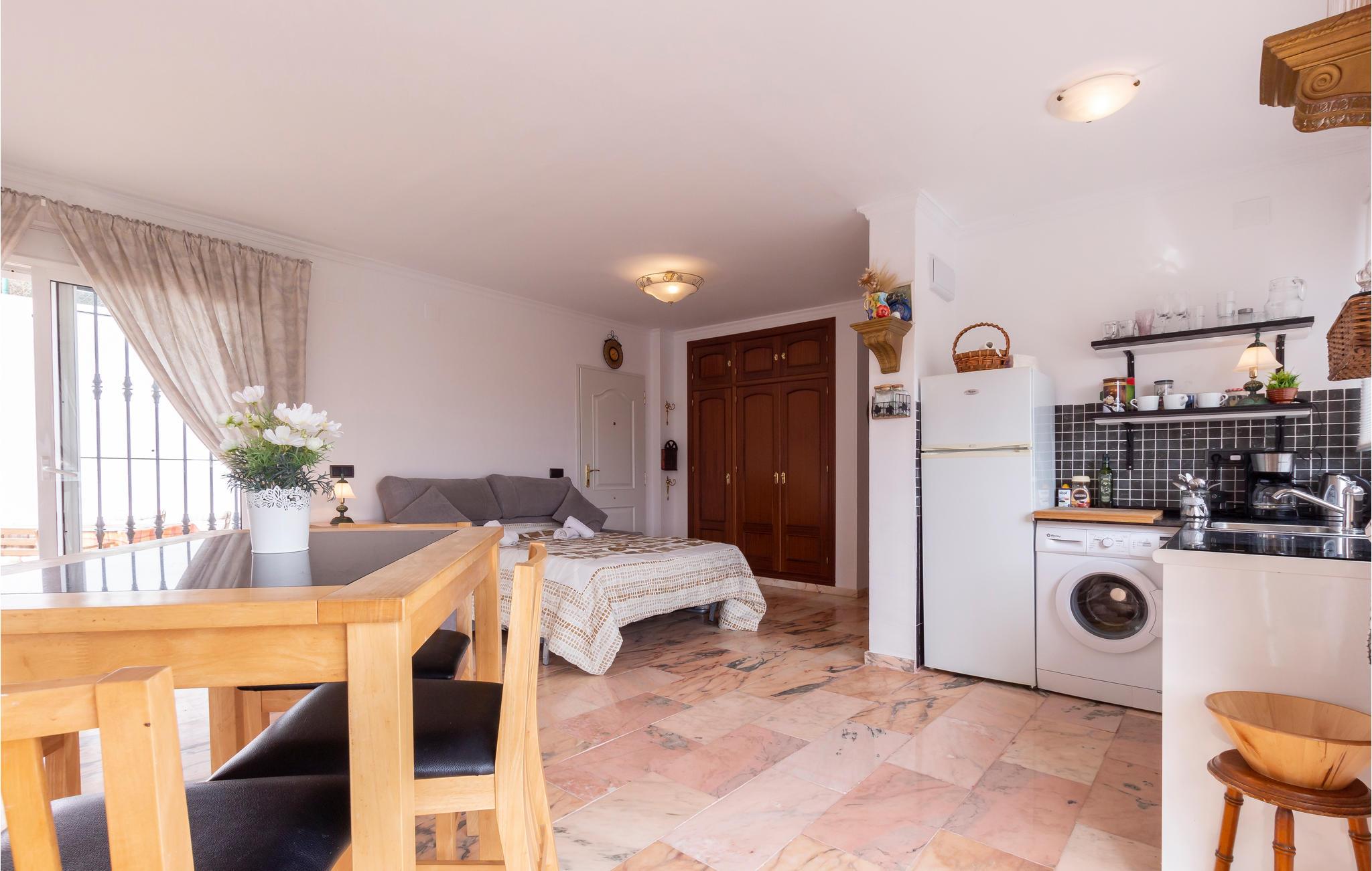Den nærmeste sandstrand er mindre end 500 m væk. Her kan I svømme og slappe af i vidunderlige omgivelser. Hvis I har lyst til at tage på en interessant dagstur, er Marbella lidt over en halv times kørsel væk. Her kan I slentre gennem det smukke centrum eller de forskellige lystbådehavne. Den smukke by Málaga, som er den næststørste by i Andalusien, ligger også knap en halv times kørsel derfra. Her er der noget for enhver smag: gode shoppingmuligheder, forskellige museer - ikke mindst Museo Picasso - men også andre kulturtilbud og historiske attraktioner, såsom de ekstremt imponerende fæstninger Alcazaba og Gibralfaro.
