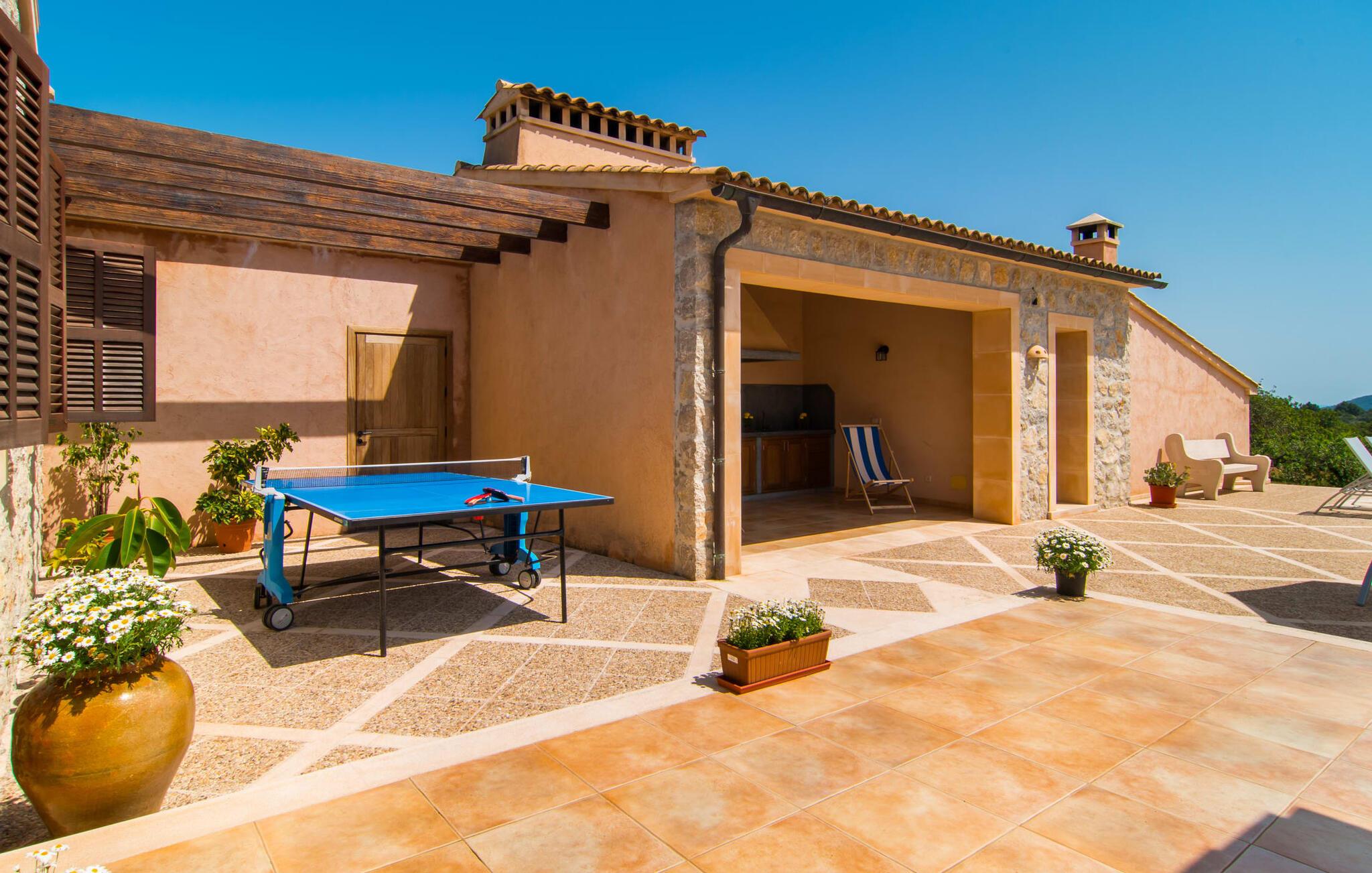 Villa "Benet" er en fantastisk blanding af rustik charme og moderne komfort i en smuk beliggenhed nær Artà. Med en traditionel stenkonstruktion og imponerende uderum er den perfekt til en gruppeferie med venner eller familie. Den rummelige overdækkede terrasse byder på skygge og læ, mens poolområdet med solterrasse, talrige siddepladser og udekøkken inviterer jer til at slappe af og have det sjovt. Nyd jeres måltider ved det store spisebord eller tilbered en grill med friske lokale råvarer. For mere aktive øjeblikke kan I prøve bordtennisbordet eller blot slappe af på liggestolene. Indenfor udstråler villaen varme og karakter med en blanding af mørke træmøbler i antik stil, hvidkalkede vægge og synlige træbjælker. Den åbne stue fører til et fuldt udstyret køkken med moderne bekvemmeligheder. De tre soveværelser, to med enkeltsenge og et med dobbeltseng, er designet til komfort og privatliv. Badeværelserne, med elegante hvide og grå fliser, har badekar og/eller bruser. Omgivet af frodige grønne områder og med udsigt over Llevant-bjergene tilbyder Villa "Benet" både privatliv og en spektakulær udsigt, der garanterer et uforglemmeligt ophold. Den absolut moderne, fremragende villa ligger i en fabelagtig, afsondret beliggenhed mellem det dejlige samfund Artà og kystbyen Capdepera. Skulle I have brug for at shoppe, kan både Artà og Capdepera samt Cala Rajada nås hurtigt og nemt. På få minutter kan I nå fantastiske strande som Platja de Son Mol og Cala Agulla, samt helt naturlige strande som Cala Mesquida.