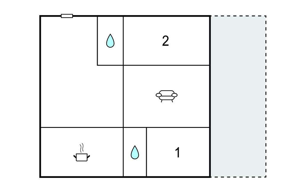 Opholdsstue 20m2 - 2 Sovepladser. (Sofa, madras eller lignende).