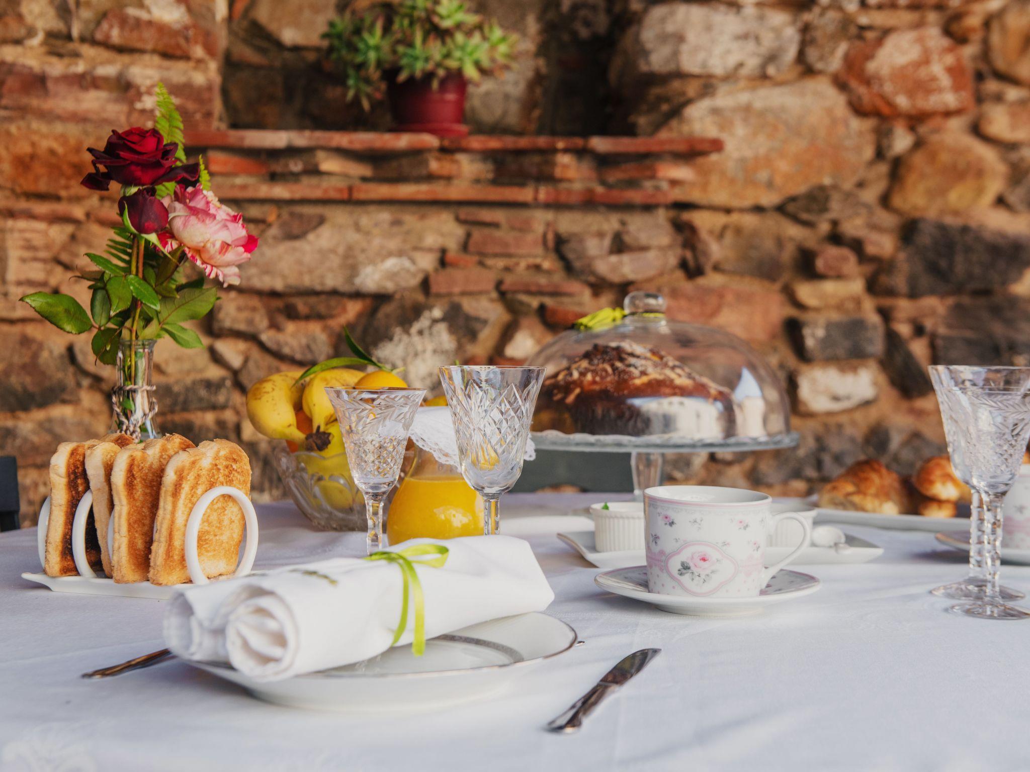 The exterior is a natural paradise that invites you to relax and connect with nature. Immerse yourself in the serenity of our private swimming pool, exclusive to our guests, where you can cool off and enjoy the sun under the blue sky. Our beautiful gardens, filled with colourful flowers and lush greenery, will provide you with a space to stroll and enjoy the natural beauty that surrounds us. In addition, exploring our forest will lead you to discover the magic of nature at its purest. With winding paths and quiet corners, this is the perfect place to find peace and serenity. And we can't forget our olive groves, which offer breathtaking views and a serene atmosphere that will transport you to another world. Here, you can stroll, relax and reconnect with yourself as you immerse yourself in the Mediterranean landscape.
