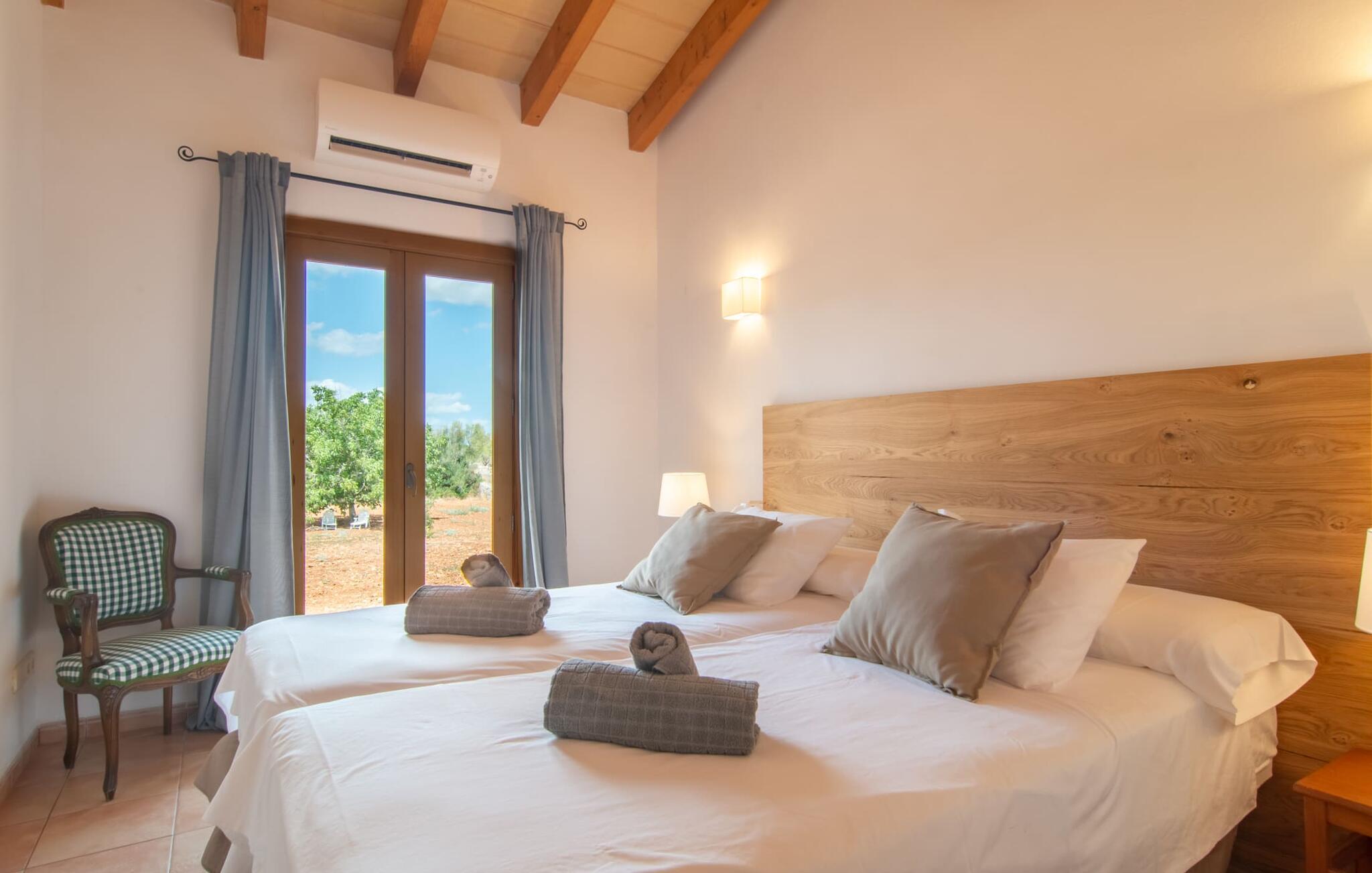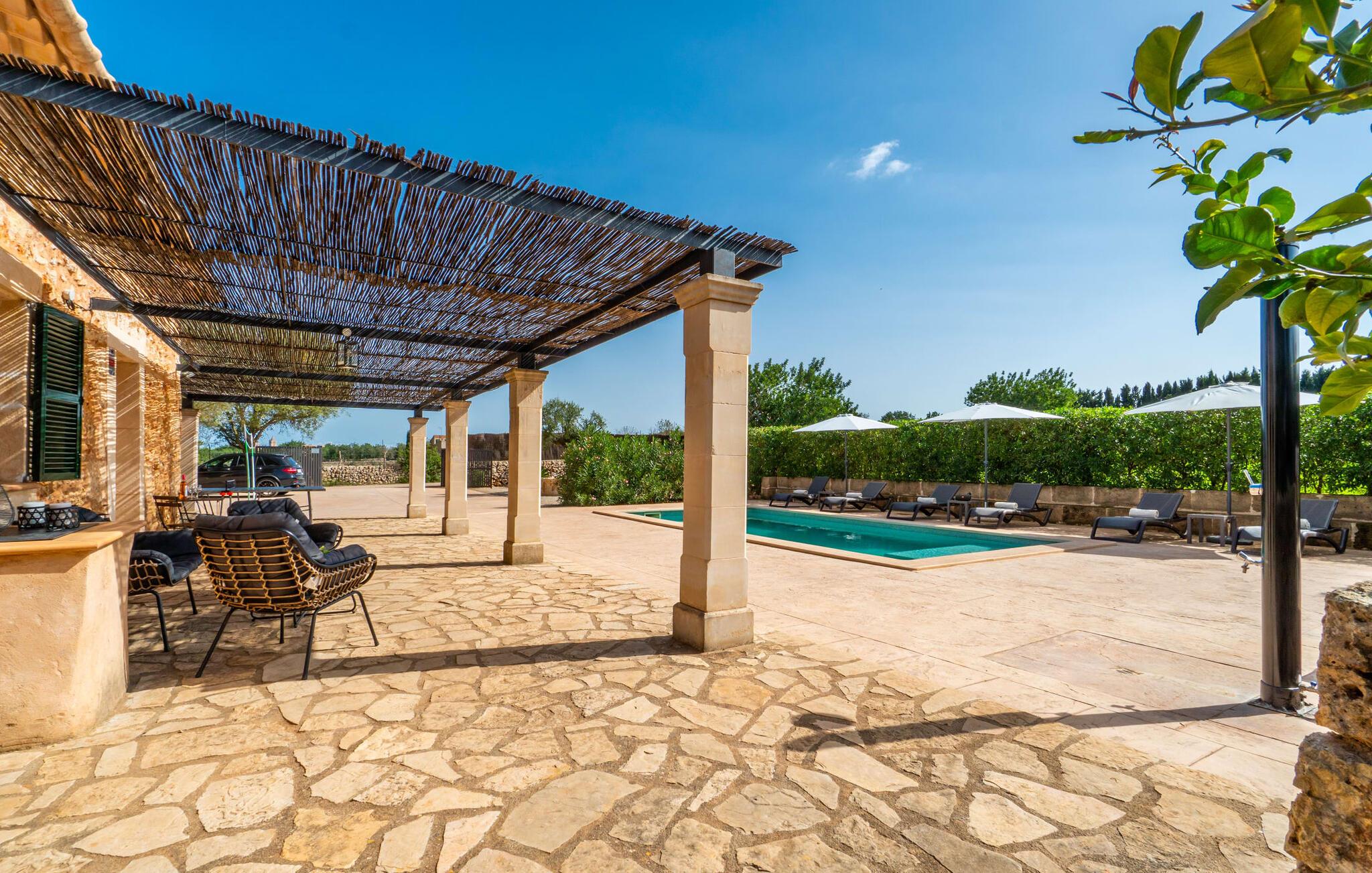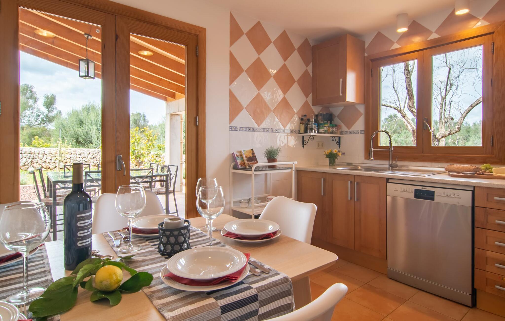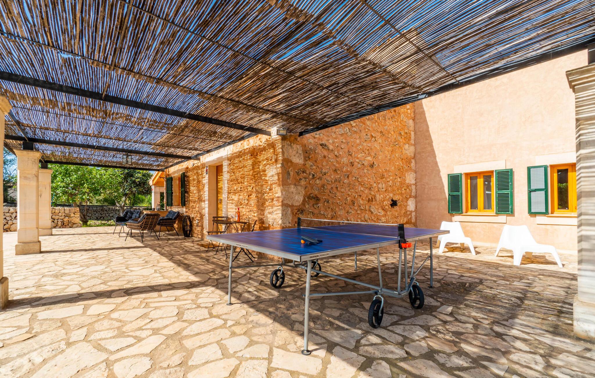 Leder I efter jeres eget lille tilflugtssted på landet? Et sted at have det godt – med pool, solterrasse og oliventræer? Så er Villa “Binitaref” det helt rigtige valg for jer! Det charmerende naturstenshus med klassiske mørkegrønne skodder ligger ugeneret, sydvendt på en grund på knap 7.000 m², hvoraf man kan nyde en vidunderlig udsigt fra de mange, delvist overdækkede terrassearealer omkring huset. Men kun hvis I kan se væk fra poolen, der glitrer i solen og er omgivet af en smuk stenmur, der indbyder til en forfriskende svømmetur eller to. Efter svømning skal I blot tage en lur på en af de komfortable liggestole - vidunderligt! Hvis I foretrækker at slippe dampen, kan I spille volleyball med jeres medrejsende og derefter nyde lækkerierne tilberedt på grillen og serveret ved det elegante glasbord på terrassen. Mens det udvendige område af "Binitaref" ser mere rustikt ud i den typiske villastil, er det indvendige område moderne, lyst og venligt møbleret og designet. I den rummelige stueetage er der også den hyggelige stue med to komfortable sofaer, hvorfra I enten kan se den knitrende ild eller blot se TV. Et stilrent spisebord er bekvemt placeret i køkkenet, så I ikke skal rejse langt med fyldte bakker. Mæt og træt kan I trække jer tilbage til et af de tre behageligt diskrete dobbeltværelser med aircondition. To af dem er i stueetagen, den ene er på øverste etage og er tilgængelig via en luftig trappe. To stilfulde badeværelser, begge med badekar og et med en-suite, runder den absolut overbevisende boligkomfort i jeres sommerhus af. Hvis I kan lide at tilbringe tid udendørs, nyde gåture, vandreture og cykelture, så er "Binitaref" det ideelle udgangspunkt. Bare begynd at vandre eller cykle, de landbrugsmæssige omgivelser er betagende! Sineu, Costitx (med dets observatorium), Sencelles, Sant Joan og Lloret de Vistalegre betragtes som Mallorcas virkelige hjerte! Måske tror I ikke på myten om, at verdens akse ligger under klokketårnet i kirken Sineu. Hvad vi ved er, at denne maleriske lille landlige by har alt, hvad feriegæster kan ønske sig: gamle legender, kulturelle værdier, gode restauranter som Moli Den Pau, beliggende i en vindmølle, og talrige vinkældre, hvoraf nogle også serverer solide mallorcanske retter. Besøgende fra alle dele af øen strømmer til det ugentlige husdyrmarked om onsdagen, og skilte fra det centrale Sa Plaça fører til interessante seværdigheder som klostre, kirker og palæer. Marker, vindmøller, olivenlunde og vinmarker præger øens centrum, som også kan udforskes på cykel. Og hvis I ikke vil gå glip af en dag på stranden: strandene i Badia d'Alcúdia, ca. 27 km væk, kan hurtigt nås... Moderne ophold i landlige omgivelser: Villa "Binitaref" i heart of Mallorca blev bygget i en vidunderlig solrig sydvendt beliggenhed midt i Bygget i marker og enge - simpelthen ideel til lange gå- og cykelture. Men ejendommen har også meget at byde på: I kan enten køle af i den skrånende pool, spille volleyball eller bare nyde at lave ingenting i en af de komfortable udendørs lænestole på den overdækkede terrasse. Den nærmeste strand ligger kun 27 km væk.