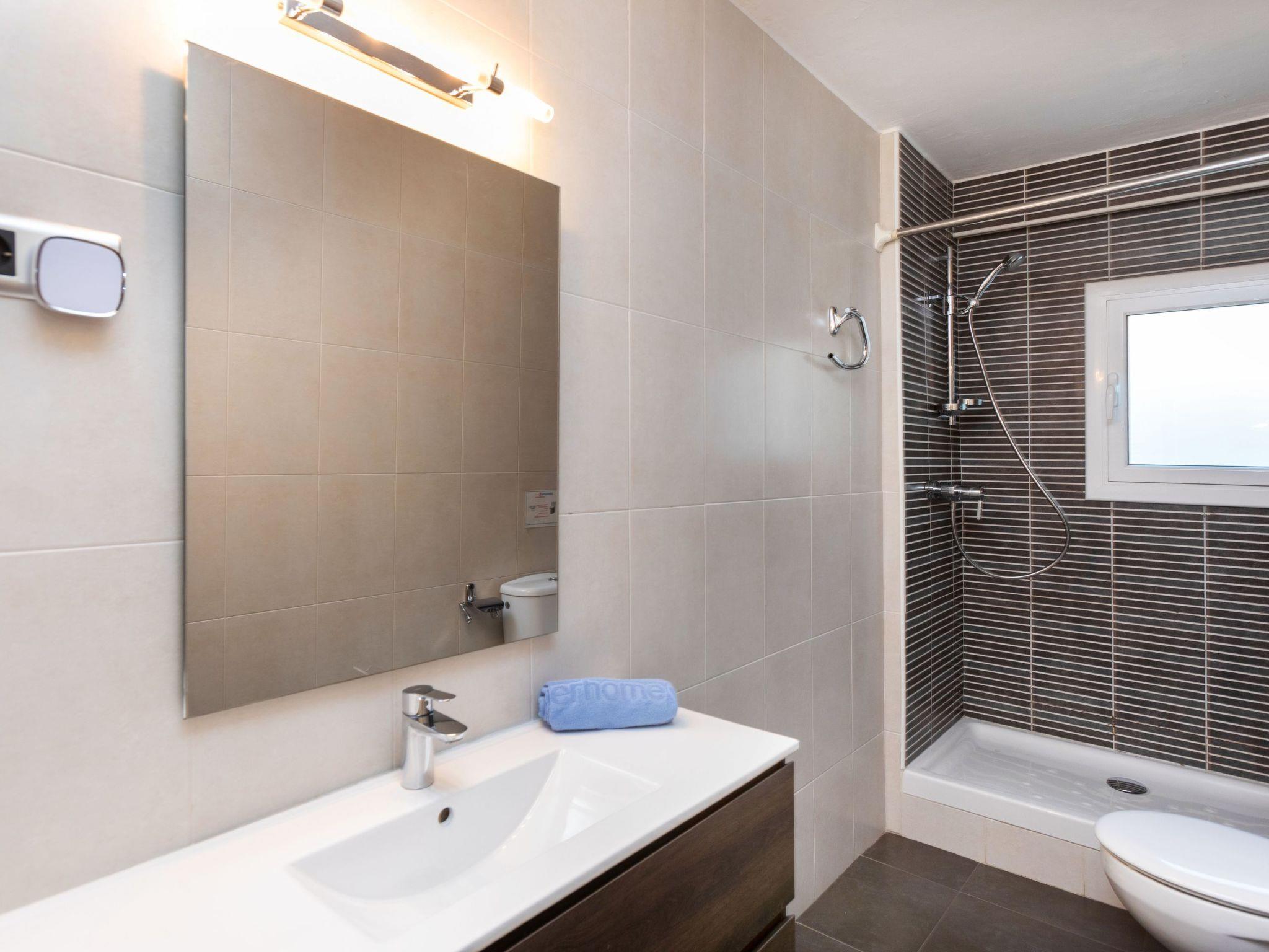 Els Pins 1 km from Blanes centro: Apartment block "Santa Cruz". In a central position, 50 m from the sea. For shared use: garden (fenced) with lawn, swimming pool angular (20 x 12 m, seasonal availability: 22.Jun. - 11.Sep. pool opening hours: 10:00-22:00) with salt-electrolysis pool-cleaning system. Children's pool, outdoor shower, children's playground (slide, swing), public parking on the road extra. Shop, supermarket, restaurant, bar 10 m, bus stop 700 m, railway station "Blanes" 1 km, sandy beach "Blanes" 50 m. Golf course 7 km. Nearby attractions: Marineland 4 km, Waterworld 10 km, Jardín Botanico Marimurtra 4 km. Please note: nightclub/disco close by.