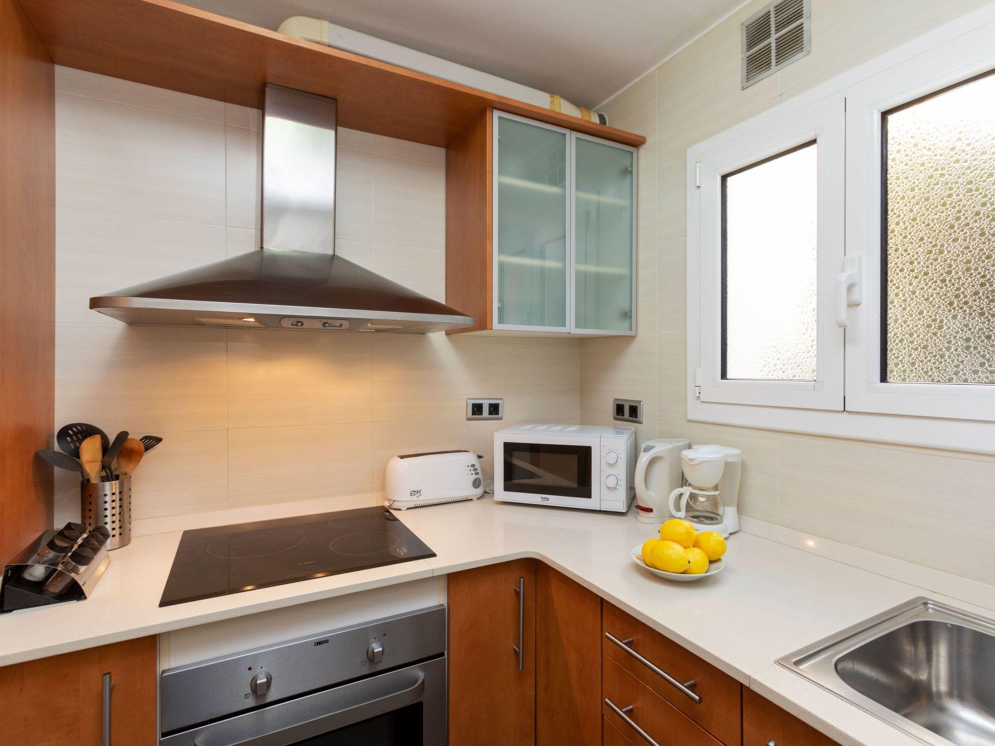"Santa Cruz", 3-room apartment 68 m2 on 3rd floor. Practical furnishings: living/dining room with digital TV. Exit to the terrace. 1 room with 2 beds (80 cm, length 190 cm). 1 room with 1 french bed (135 cm, length 190 cm). Exit to the terrace. Kitchen (oven, dishwasher, 3 ceramic glass hob hotplates, toaster, kettle, microwave, electric coffee machine). Shower/bidet/WC. No heating option. 2 terraces 6 m2. Terrace furniture. Facilities: washing machine, iron, children's high chair, baby cot for up to 2 year olds, hair dryer. Internet (WiFi, free). Please note: suitable for families. TV only ES. HUTG021849 // Reg. Nr.: ESFCTU000017028000044039000000000000000000HUTG0218494