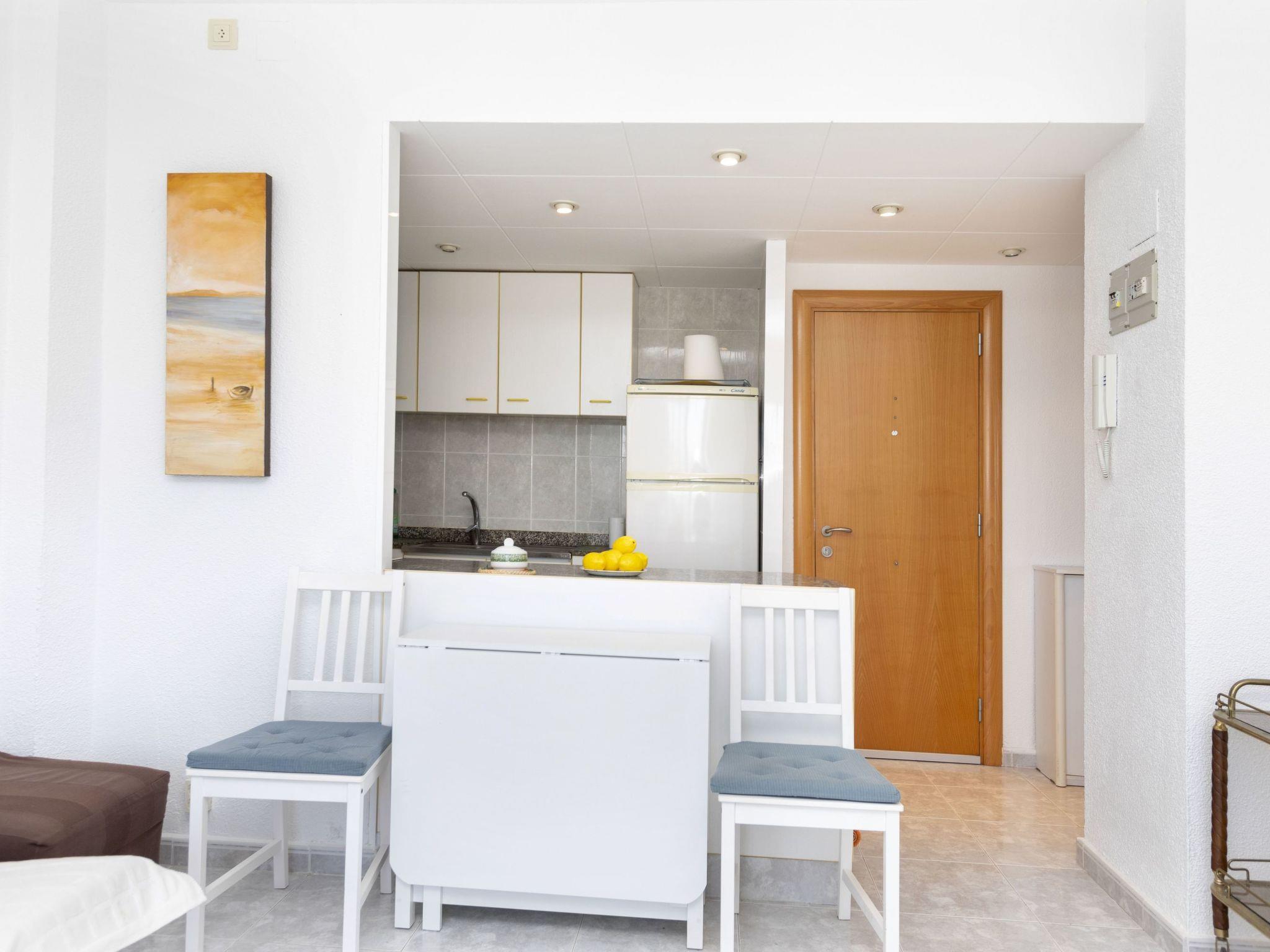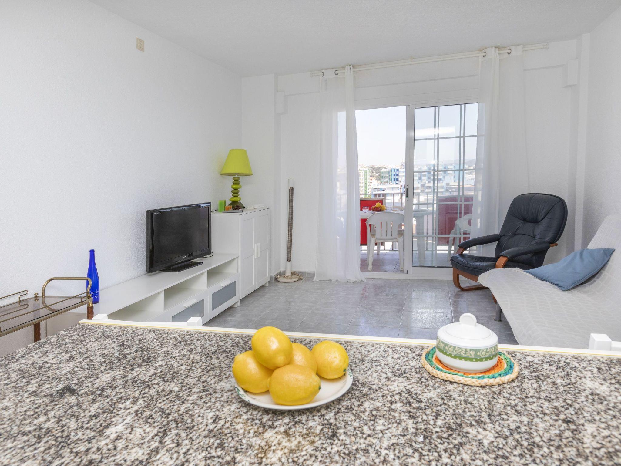 "Consul Park", 2-room apartment 42 m2 on 8th floor, south facing position. Object suitable for 3 adults + 1 child. Bright, renovated in 2020, practical and comfortable furnishings: living/dining room with 1 sofabed (135 cm, length 190 cm), dining table, TV and b/w TV. Exit to the terrace. 1 room with 1 french bed (1 x 135 cm, length 190 cm). Exit to the terrace. Open kitchen (4 hot plates, oven, toaster, kettle, freezer, electric coffee machine). Shower/WC. No heating option. Balcony furniture. View of the ocean. Facilities: washing machine, iron, children's high chair, baby cot for up to 3 year olds, hair dryer. Internet (WiFi, free). Please note: suitable for families. TV only ES. HUTG-065450 // Reg. Nr.: ESFCTU00001702800025841200000000000000000000065450307