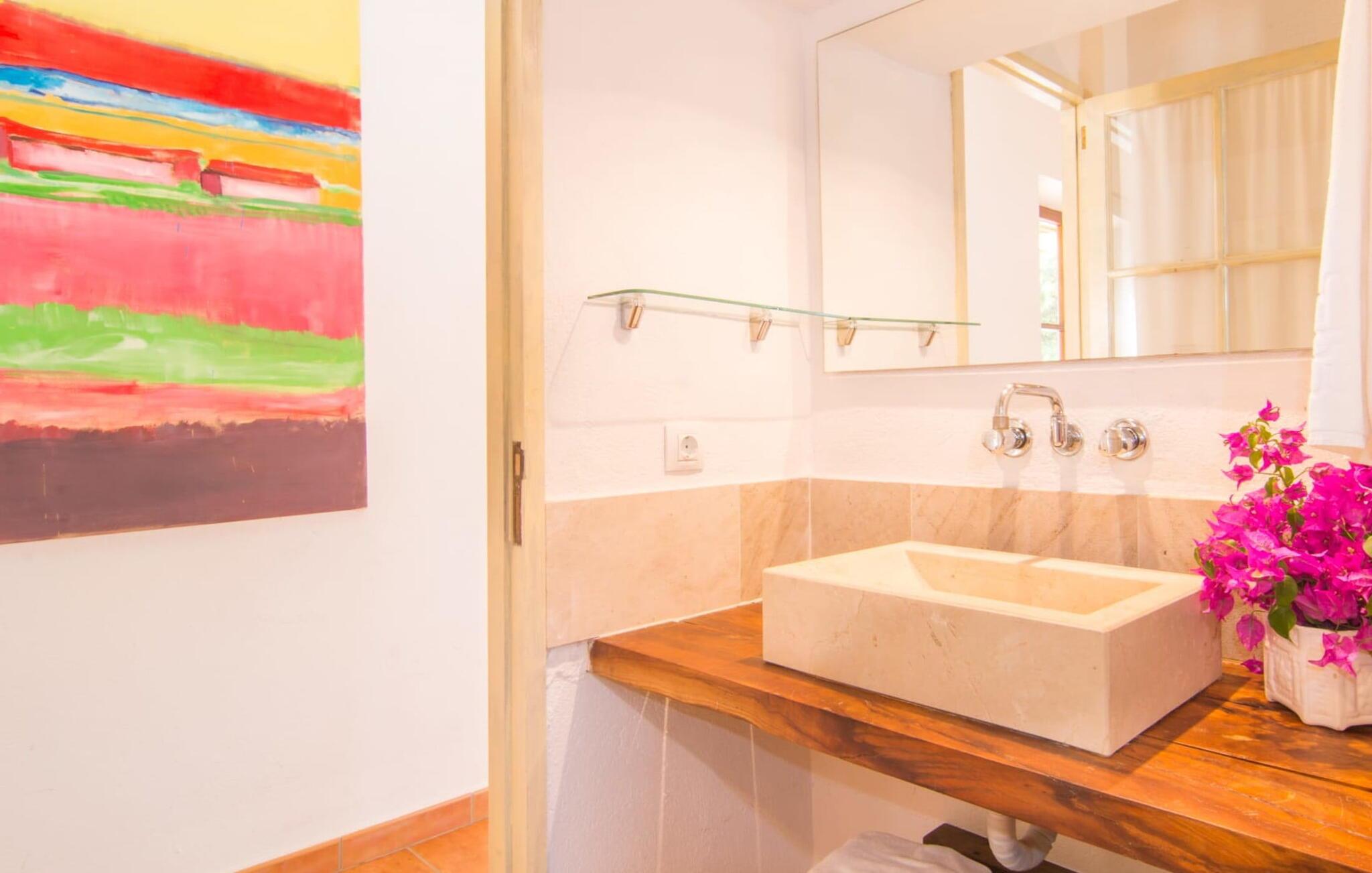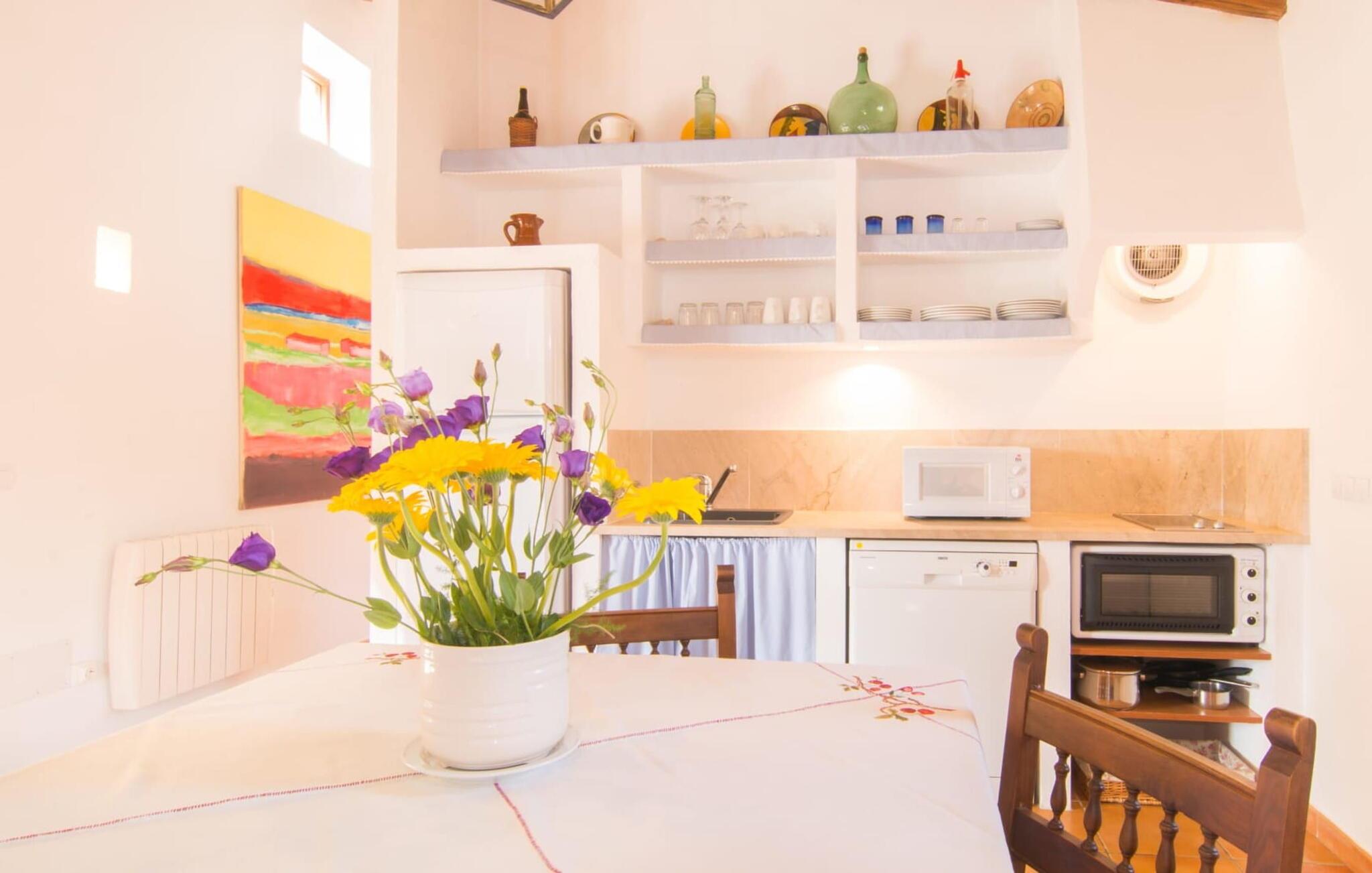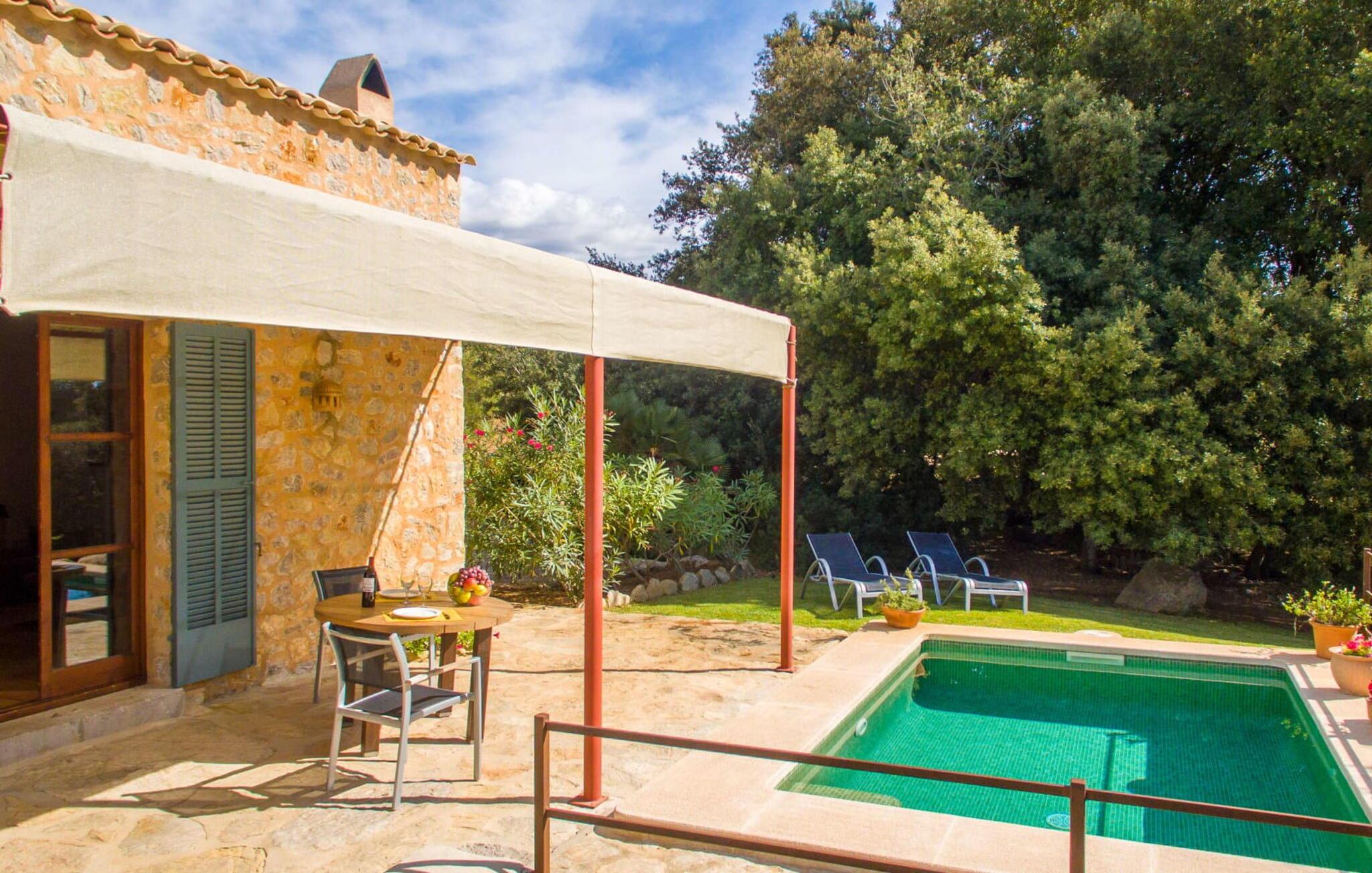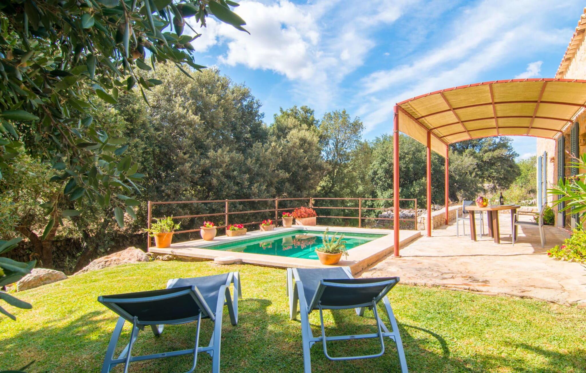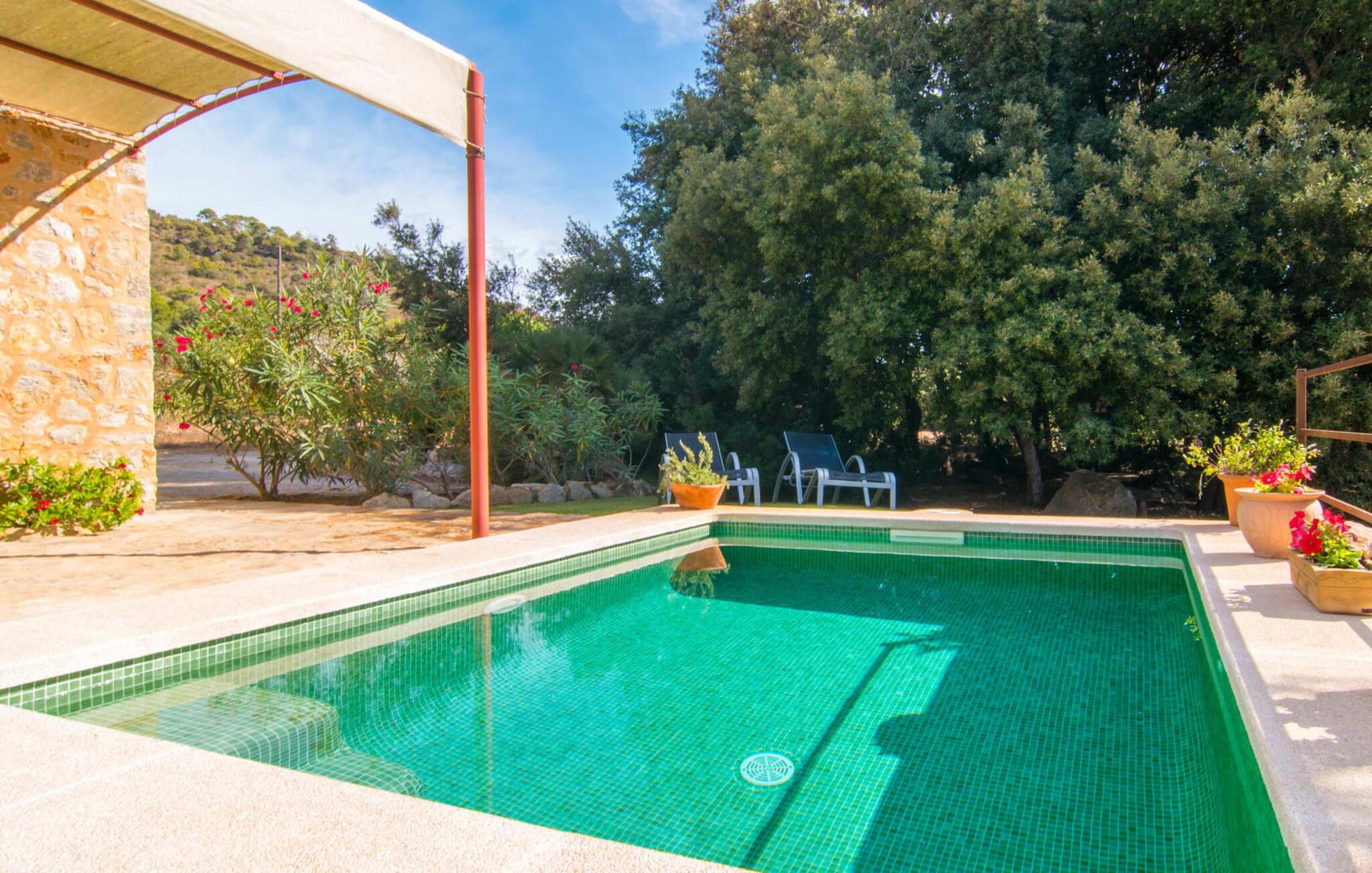 "Bonita" er et charmerende feriehus for to, beliggende mellem den maleriske by Artà og havet, med en betagende udsigt over de omkringliggende bakker. Det ligger på en 7.000 m² stor grund og har en stor græsplæne og en storslået middelhavshave med duftende mandel-, citron-, appelsin- og figentræer og kakaotræer. Den rummelige stenterrasse, udstyret med komfortable havemøbler og parasol, er perfekt til hyggelige morgener og aftener. En pool med grønne mosaikfliser og trin tilbyder en forfriskende flugt fra den varme mallorcanske sol. Denne unikke ejendom har et soveværelse, hvilket gør den ideel til par eller små familier, der leder efter en romantisk ferie. Det hyggelige interiør omfatter en stue med hjørnesæde og et integreret køkken med spisebord. Der er et komfortabelt soveværelse og et smagfuldt badeværelse i den anden del af huset. Nyd de rolige omgivelser i dette idylliske tilflugtssted. Fincaen "Bonita" er en lille drømmevilla beliggende i de grønne bakker mellem Artà og havet og er omgivet af en 7.000 m² stor naturhave. Cala Ratjada med sin smukke strand og havnepromenade ligger kun få minutter væk i bil. Butikker og restauranter til daglig brug kan findes der eller i Artá. Hver tirsdag finder markedet sted i centrum af Artà, og om fredagen kan I besøge markedet i Son Servera (ca. 9 km). De smukke strande på Mallorca, herunder Cala Torta og Cala Mesquida) med hvidt sand og blide skråninger til havet, er nemme at nå med bil. Aircondition i ejendommen er inkluderet i prisen, men dets brug er begrænset mellem kl. 21.00 og 08.00.
