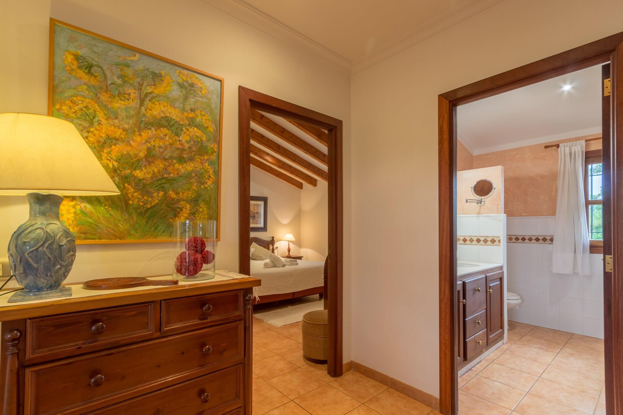 Denne fantastiske villa Antonio, beliggende mellem de charmerende byer Buger og Sa Pobla, tilbyder den perfekte blanding af ro og bekvemmelighed. Villaen er omgivet af det mallorcanske landskabs skønhed og kan prale af en betagende panoramaudsigt over Albufera, Alcúdia-bugten og de majestætiske bjerge. Med en privat saltvandspool, frodige middelhavshaver og en rummelig terrasse med grillplads er dette feriehus et idyllisk sted for afslapning og udendørs spisning. Villaen har rummelige værelser designet i en traditionel mallorcansk rustik stil. Med tre soveværelser med dobbeltsenge, et tredobbeltværelse og tre badeværelser kan ejendommen komfortabelt rumme op til ni personer, hvilket gør den perfekt til familier eller vennegrupper. Det fuldt udstyrede køkken tilbyder alle de faciliteter, der er nødvendige for at tilberede måltider, og den hyggelige stue, komplet med en pejs, er det perfekte sted at slappe af efter en dag med udforskning. Ejendommen har også aircondition og tilbyder gratis Wi-Fi, hvilket sikrer komfort og forbindelse under hele dit ophold. Beliggende kun få minutter fra de pulserende byer Buger og Sa Pobla, har du nem adgang til lokale butikker, restauranter og markeder. For en dag med sol og sand ligger den berømte Platja de Muro kun 10-15 minutters kørsel væk, og den byder på krystalklart vand og blødt hvidt sand. Uanset om du nyder solen ved poolen, udforsker de nærliggende byer eller nyder en stranddag, er denne villa den perfekte base for en mindeværdig ferie på Mallorca. Lejelicensnummeret er ETV/2097