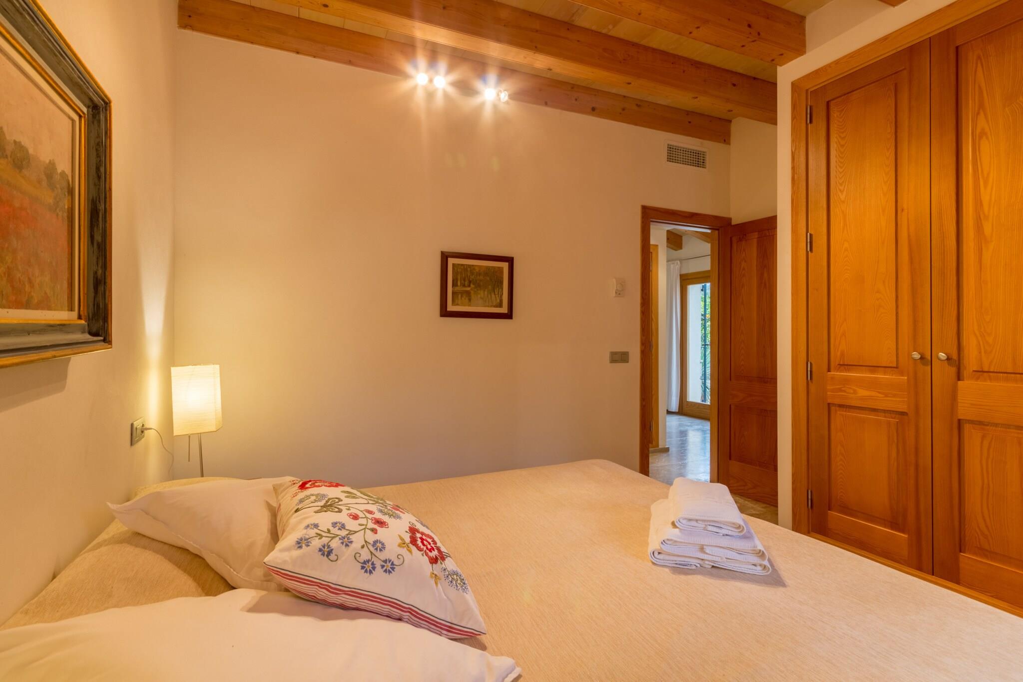 Dette charmerende feriehus, Son Fornes, tilbyder en perfekt blanding af komfort og privatliv, ideel til familier eller små grupper. Med tre hyggelige soveværelser - to med dobbeltsenge og et med to enkeltsenge - kan det komfortabelt rumme op til 6 gæster. Ejendommen har aircondition og tilbyder gratis Wi-Fi overalt, hvilket sikrer både komfort og forbindelse. Det private poolområde inviterer dig til at slappe af og slappe af, omgivet af frodige haver, mens det udendørs grillområde er perfekt til familiemåltider eller aftensammenkomster. Dette hjem er ikke kæledyrsvenligt, hvilket sikrer et fredeligt og roligt miljø for alle gæster. Dette landsted ligger i et roligt landområde og tilbyder nem adgang til lokale attraktioner og tjenester. Blot en kort køretur væk finder du den pulserende by Inca, berømt for sit ugentlige marked, hvor du kan udforske lokale varer, læderprodukter og friske råvarer. I nærheden kan du nyde et udvalg af caféer, barer og restauranter, der serverer traditionelle mallorcanske retter. Den berømte Platja de Muro-strand med sit krystalklare vand ligger kun 15 minutter i bil, hvilket tilbyder en perfekt dag ude til solbadning eller svømning. Naturelskere vil sætte pris på nærheden til Albufera Naturreservat, kun en kort køretur væk. Indvendigt har hjemmet et fuldt udstyret køkken med moderne apparater, herunder køleskab, mikroovn, ovn og opvaskemaskine, perfekt til at tilberede dine måltider. Den rummelige stue, komplet med en hyggelig pejs, tilbyder et afslappende sted at slappe af efter en dag med udforskning. To badeværelser, udstyret med håndklæder og hårtørrer, giver bekvemmelighed for alle gæster. Lejelicensnummeret er ETV/2096