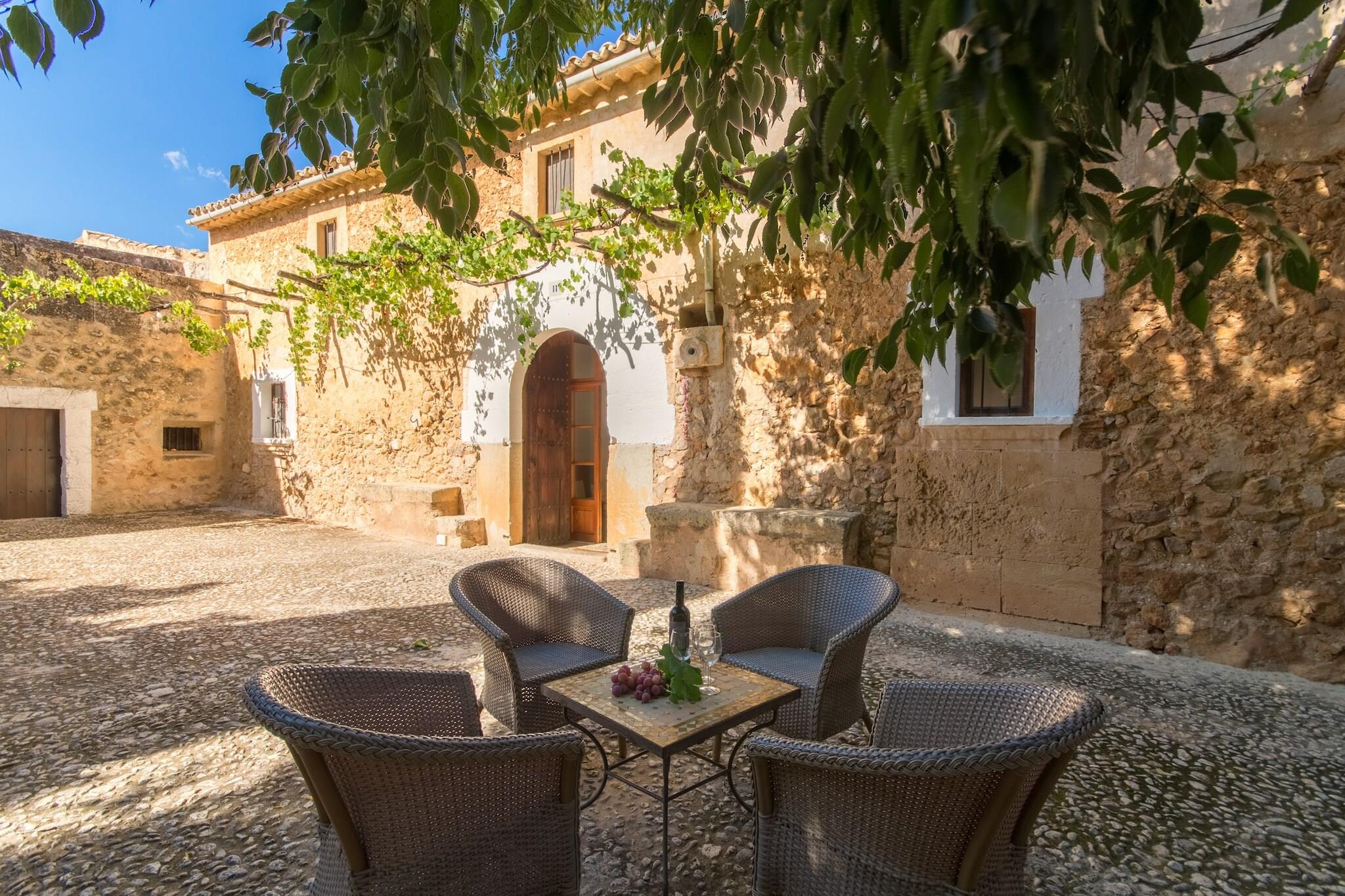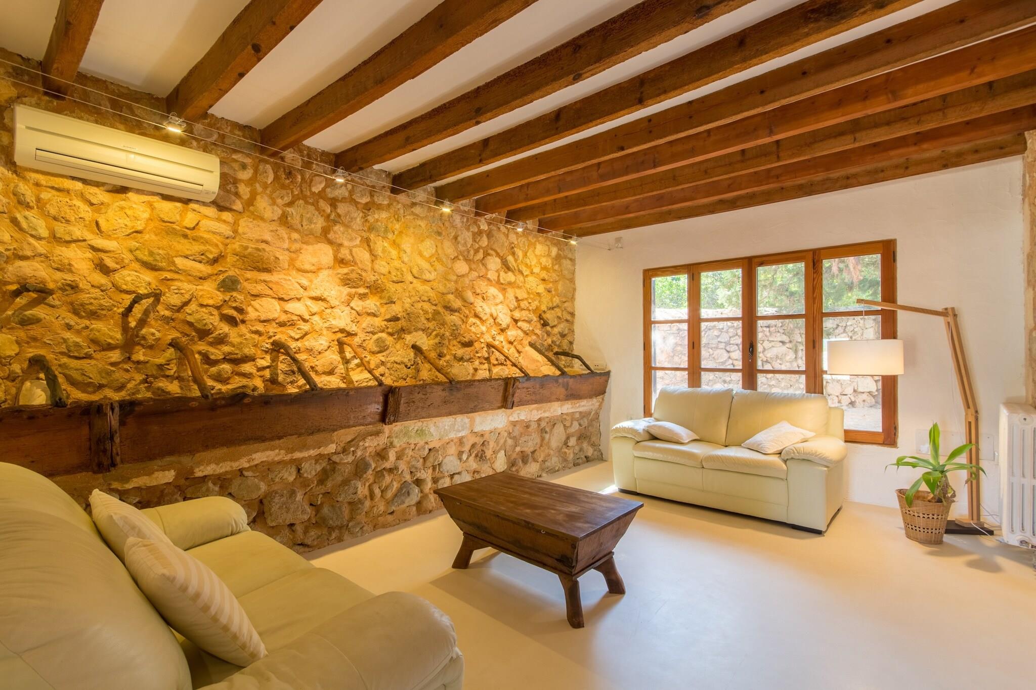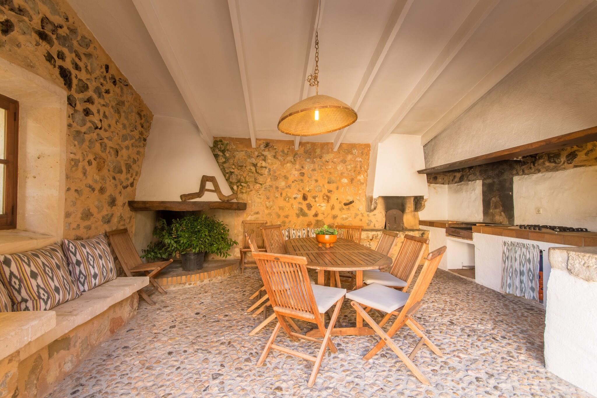 Dette charmerende landsted, Es Rafal Vell de Buger, tilbyder et fredeligt tilflugtssted for op til 8 voksne, med 5 soveværelser med dobbeltsenge og 5 badeværelser, hvilket giver rigelig plads til, at alle kan nyde et afslappende ophold. Huset er udstyret med moderne bekvemmeligheder, herunder aircondition, gratis Wi-Fi og en hyggelig pejs, hvilket sikrer komfort under hele dit ophold. Ejendommen kan prale af en rummelig have med en fantastisk 42m² damformet pool, omgivet af frodige græsplæner, træer og en smart træterrasse. Et stort grillområde med ekstra madlavningsfaciliteter gør det ideelt til udendørs spisning, perfekt til at samles med venner og familie. Beliggende i den idylliske landsby Búger, i det nordlige Mallorca, tilbyder denne finca en fredfyldt flugt fra hverdagens stress og jag. Ejendommen er omgivet af en fantastisk udsigt over Albufera, Alcúdia-bugten og Tramuntana-bjergene, og ligger kun en kort køretur fra den smukke Platja de Muro-strand, hvor du kan nyde turkisblåt vand og blødt sand. Selve landsbyen er kendt for sit charmerende ugentlige marked, der afholdes hver lørdag foran rådhuset, og tilbyder nem adgang til nærliggende supermarkeder og andre lokale attraktioner. Huset kombinerer rustik charme med moderne bekvemmeligheder. Boligarealet på 400 m² omfatter et stort rustikt køkken, hyggelige opholdsområder og en blanding af moderne og antikke møbler, der tilføjer hjemmets karakter. Den øverste etage har 4 rummelige soveværelser med dobbeltsenge, hver med eget badeværelse, hvilket sikrer privatliv og komfort. Lejelicensnummeret er VT/445