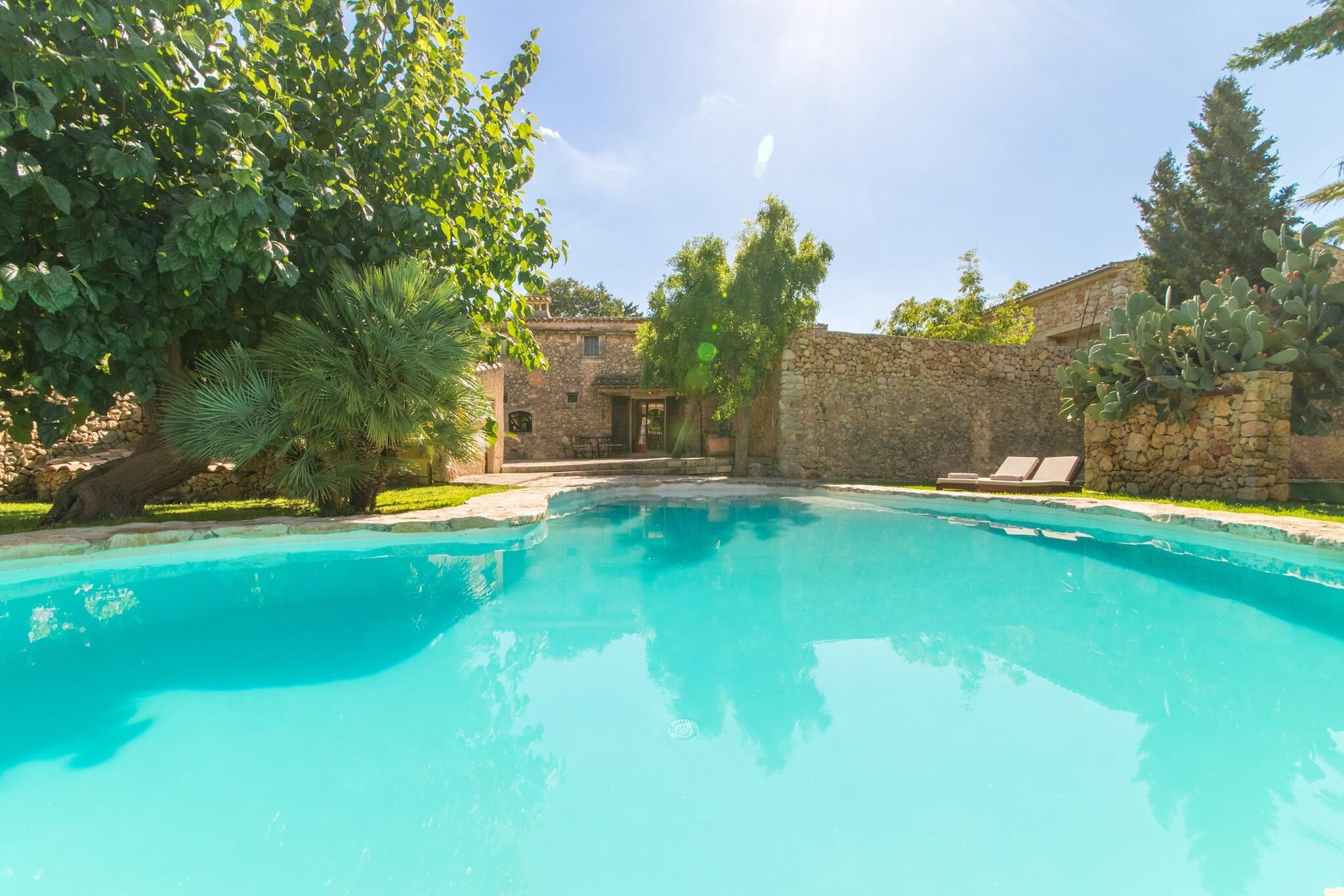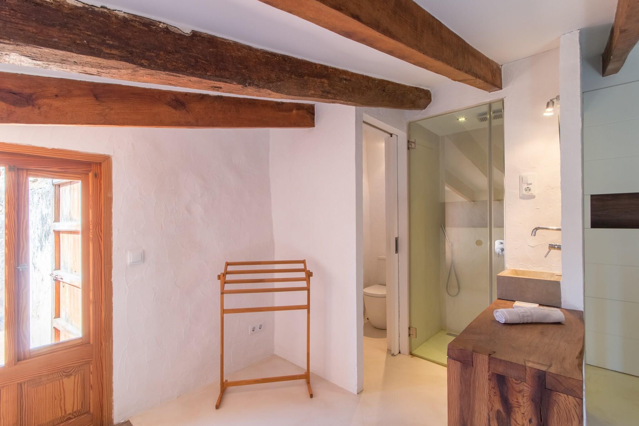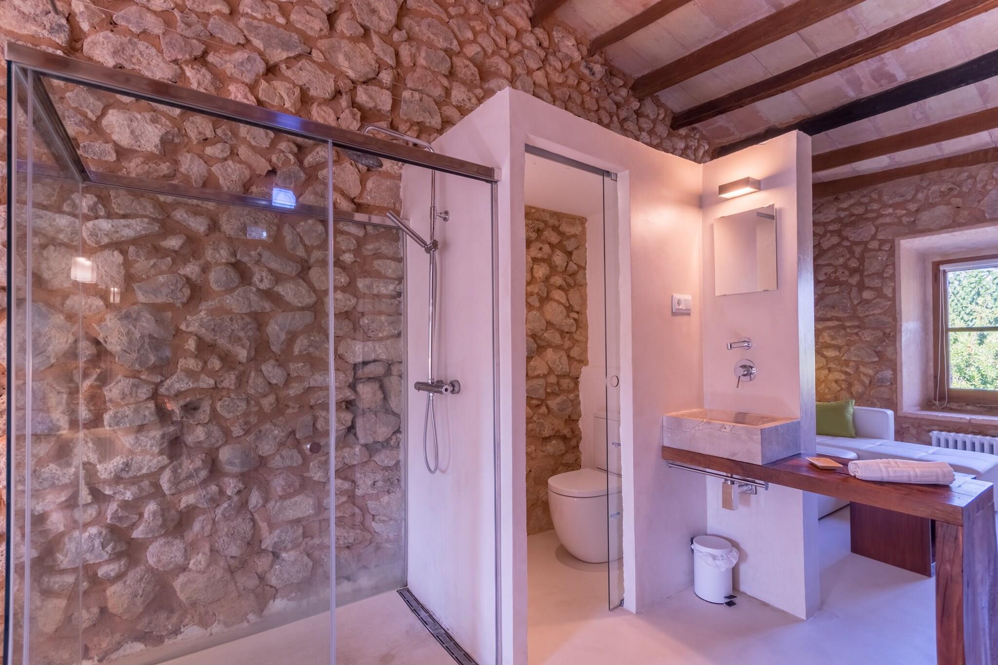Dette charmerende landsted, Es Rafal Vell de Buger, tilbyder et fredeligt tilflugtssted for op til 8 voksne, med 5 soveværelser med dobbeltsenge og 5 badeværelser, hvilket giver rigelig plads til, at alle kan nyde et afslappende ophold. Huset er udstyret med moderne bekvemmeligheder, herunder aircondition, gratis Wi-Fi og en hyggelig pejs, hvilket sikrer komfort under hele dit ophold. Ejendommen kan prale af en rummelig have med en fantastisk 42m² damformet pool, omgivet af frodige græsplæner, træer og en smart træterrasse. Et stort grillområde med ekstra madlavningsfaciliteter gør det ideelt til udendørs spisning, perfekt til at samles med venner og familie. Beliggende i den idylliske landsby Búger, i det nordlige Mallorca, tilbyder denne finca en fredfyldt flugt fra hverdagens stress og jag. Ejendommen er omgivet af en fantastisk udsigt over Albufera, Alcúdia-bugten og Tramuntana-bjergene, og ligger kun en kort køretur fra den smukke Platja de Muro-strand, hvor du kan nyde turkisblåt vand og blødt sand. Selve landsbyen er kendt for sit charmerende ugentlige marked, der afholdes hver lørdag foran rådhuset, og tilbyder nem adgang til nærliggende supermarkeder og andre lokale attraktioner. Huset kombinerer rustik charme med moderne bekvemmeligheder. Boligarealet på 400 m² omfatter et stort rustikt køkken, hyggelige opholdsområder og en blanding af moderne og antikke møbler, der tilføjer hjemmets karakter. Den øverste etage har 4 rummelige soveværelser med dobbeltsenge, hver med eget badeværelse, hvilket sikrer privatliv og komfort. Lejelicensnummeret er VT/445
