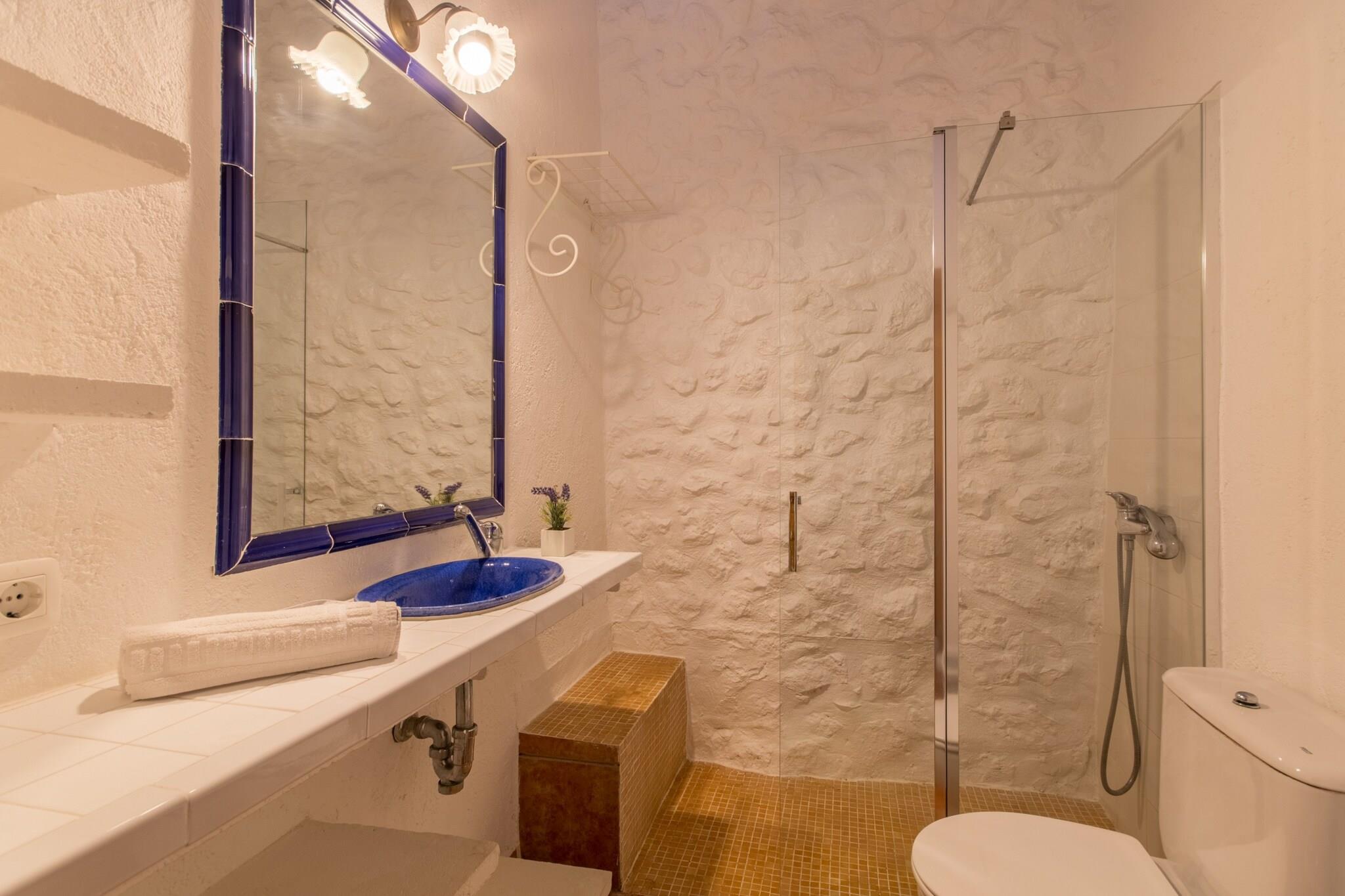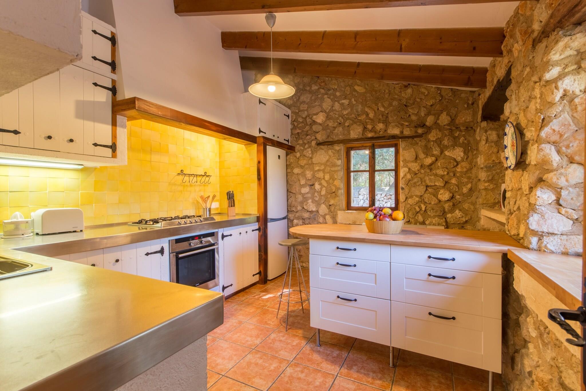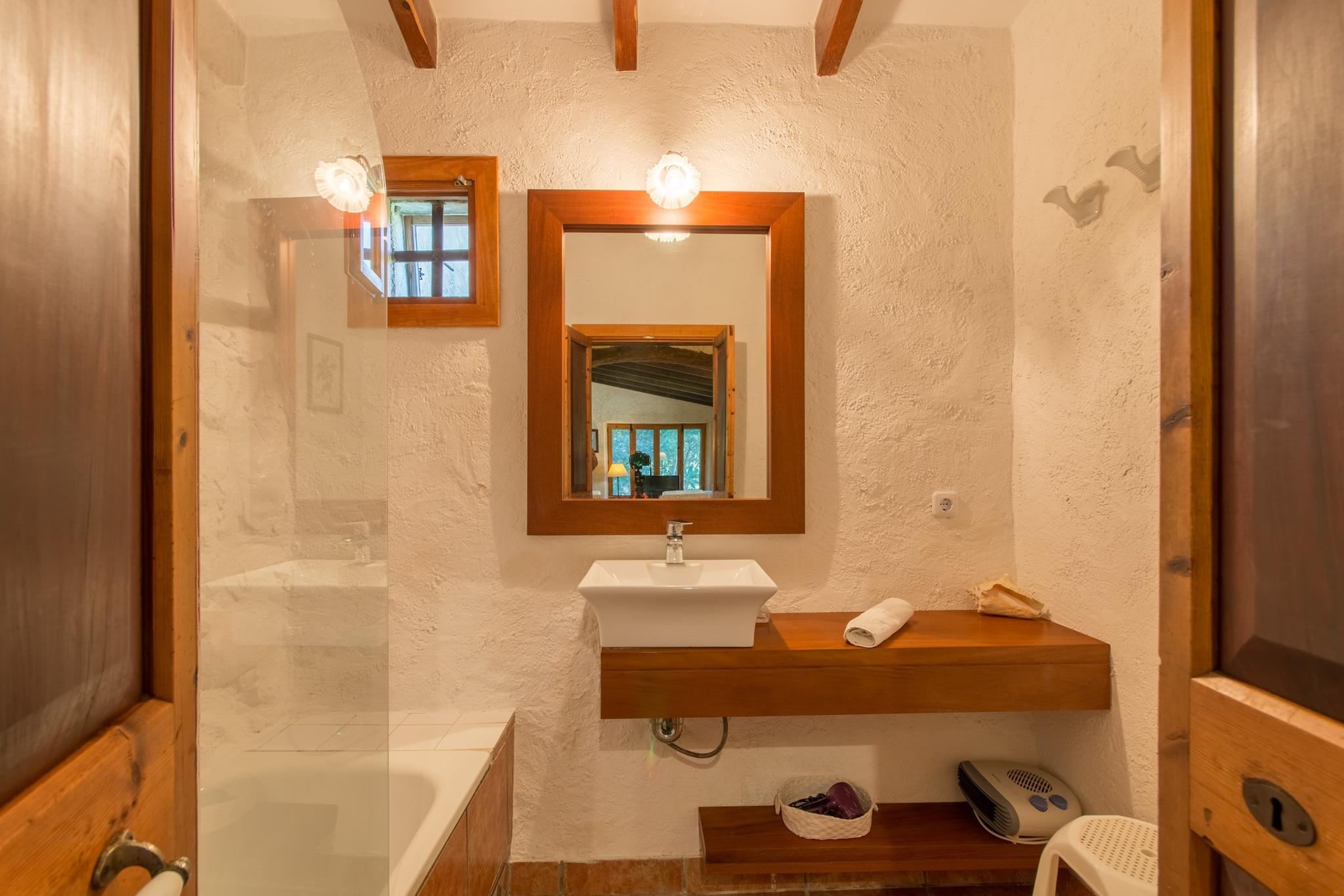 Dette dejlige landsted er det perfekte tilflugtssted for familier eller grupper på op til 6 voksne, og tilbyder 3 soveværelser med dobbeltsenge og 3 badeværelser. Det rummelige interiør kombinerer rustik charme med moderne bekvemmeligheder, og byder på en hyggelig stue med pejs, en åben spiseplads og et fuldt udstyret køkken. Soveværelserne er smukt møblerede med to soveværelser med en-suite badeværelser, mens hele ejendommen er udstyret med aircondition og gratis Wi-Fi. Familier med små børn vil sætte pris på tilgængeligheden af ??barnesenge og høje stole. Landstedet ligger i den rolige landsby Búger og tilbyder en fantastisk udsigt over det omkringliggende naturlandskab, herunder Albufera, Alcúdia-bugten og de majestætiske Tramuntana-bjerge. Búger, et af de mest fredelige samfund på øen, tilbyder nem adgang til byens ugentlige marked, lokale supermarkeder og andre faciliteter. De berømte sandstrande i Platja de Muro med deres turkise vand ligger kun 14 minutters kørsel væk, hvilket gør denne beliggenhed ideel til både afslapning og udforskning. Ejendommen kan prale af en stor have, komplet med en indhegnet pool (9m x 5m), hvilket giver det perfekte sted at slappe af under den mallorcanske sol. Det romantiske pensionat, der ligger på den anden side af haven, tilbyder et privat tilflugtssted med et stort soveværelse, badeværelse og stue med pejs. Lejelicensnummeret er ETV/488.