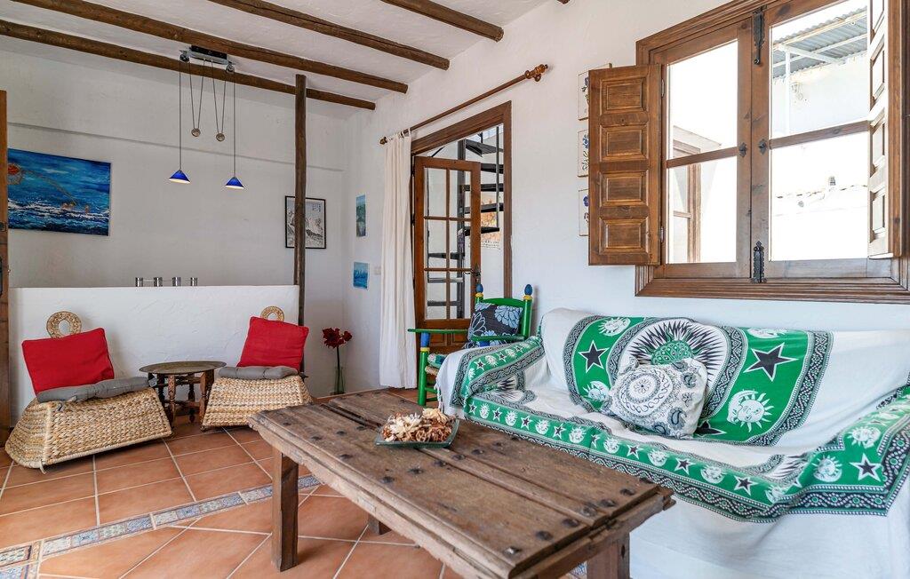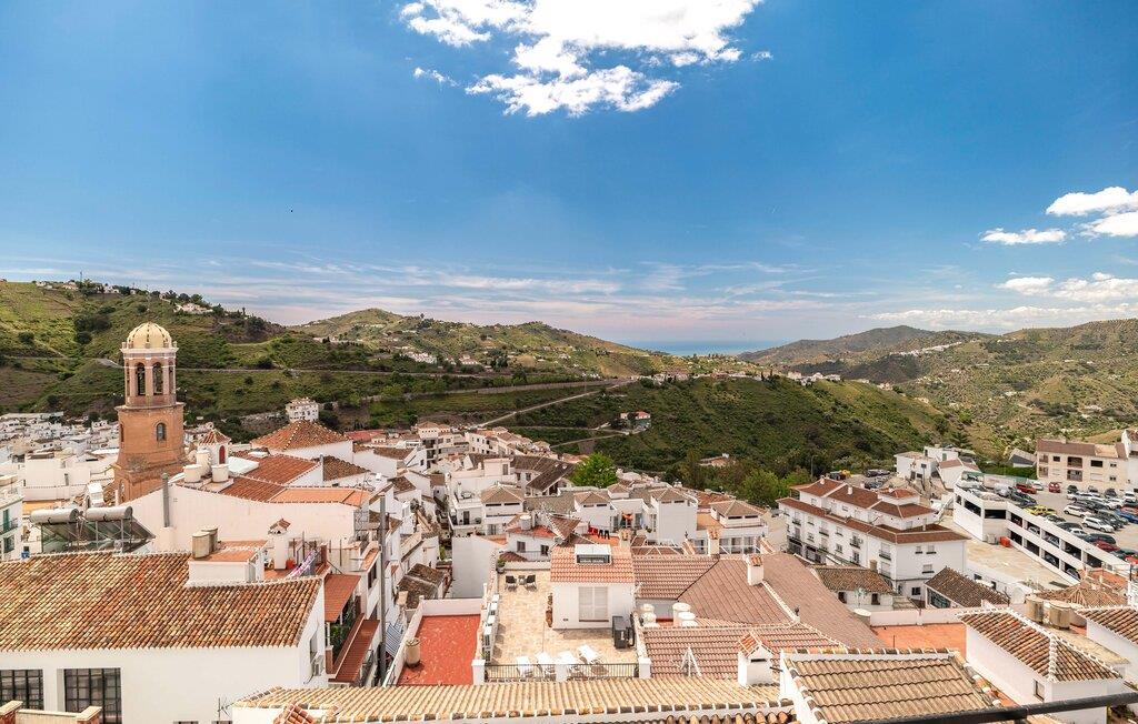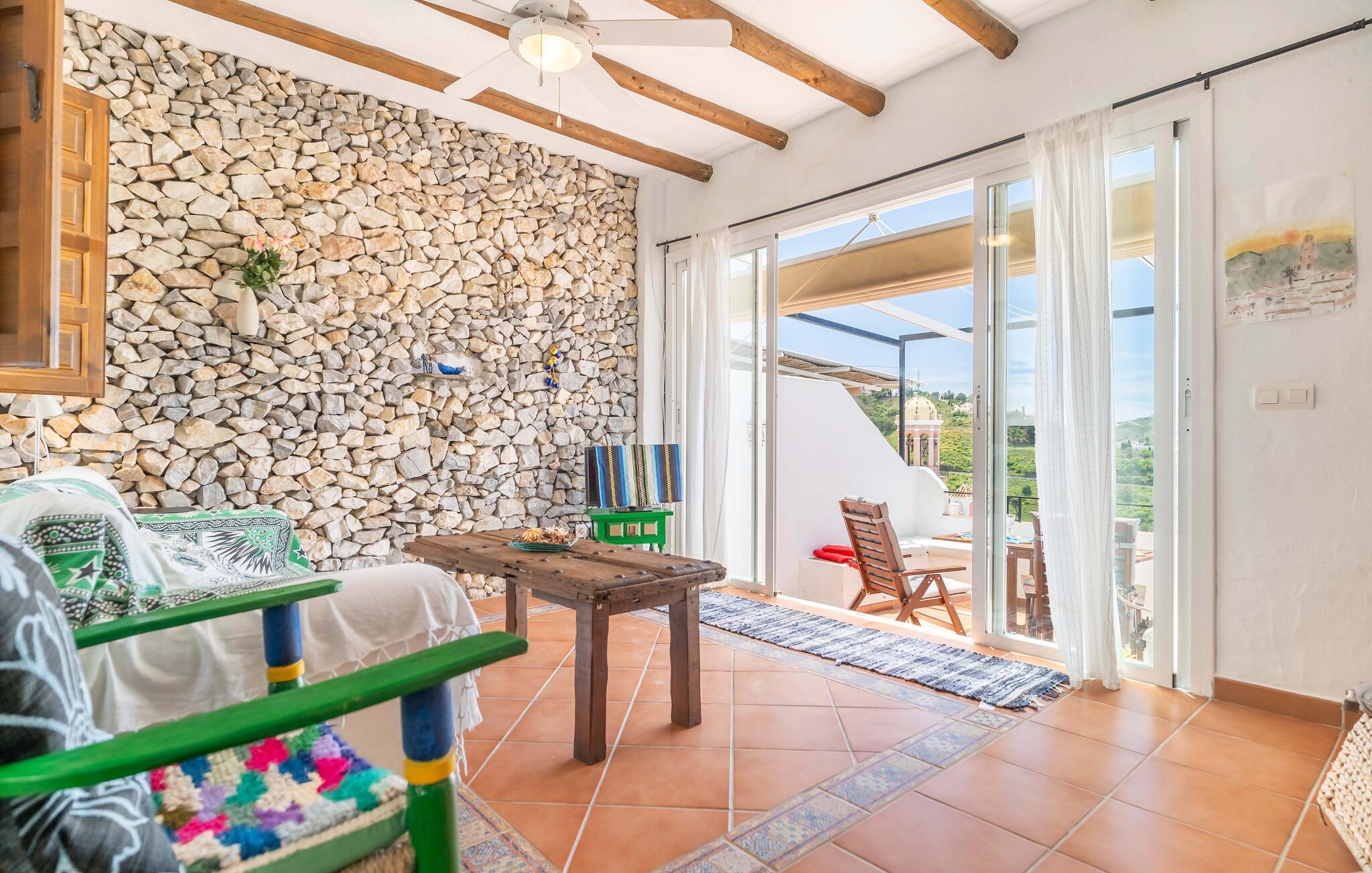 Dette rummelige rækkehus byder jer velkommen med et hyggeligt og individuelt møbleret interiør, hvor en fortryllende udsigt over landskabet venter jer i udkanten af ??naturparken Sierras de Tejeda, Almijara y Alhama. Tilbered lækre tapas med friske råvarer fra markedet, planlæg jeres udflugter i den stilfuldt oplyste spisestue, brug jeres fritid på at slappe af og læse eller afslut en begivenhedsrig dag med en spilleaften på sofaen.