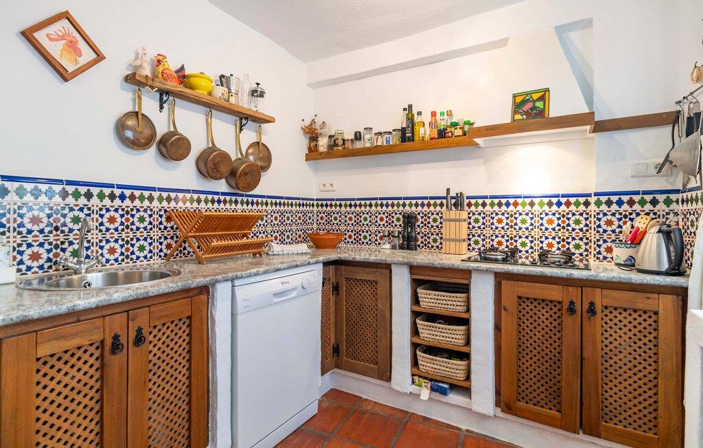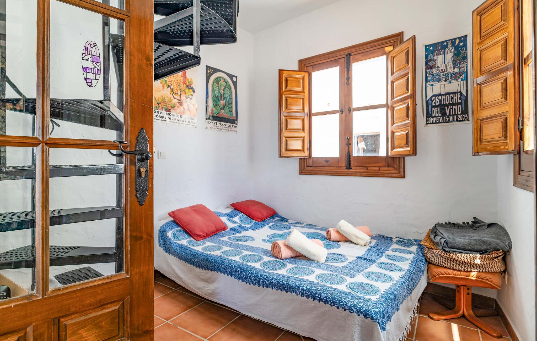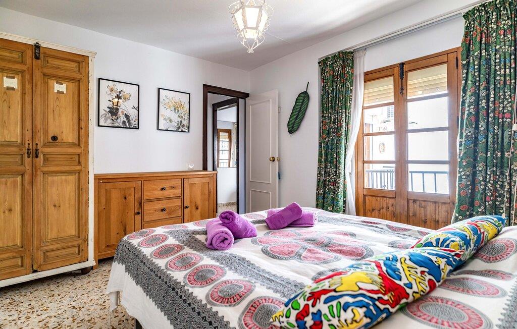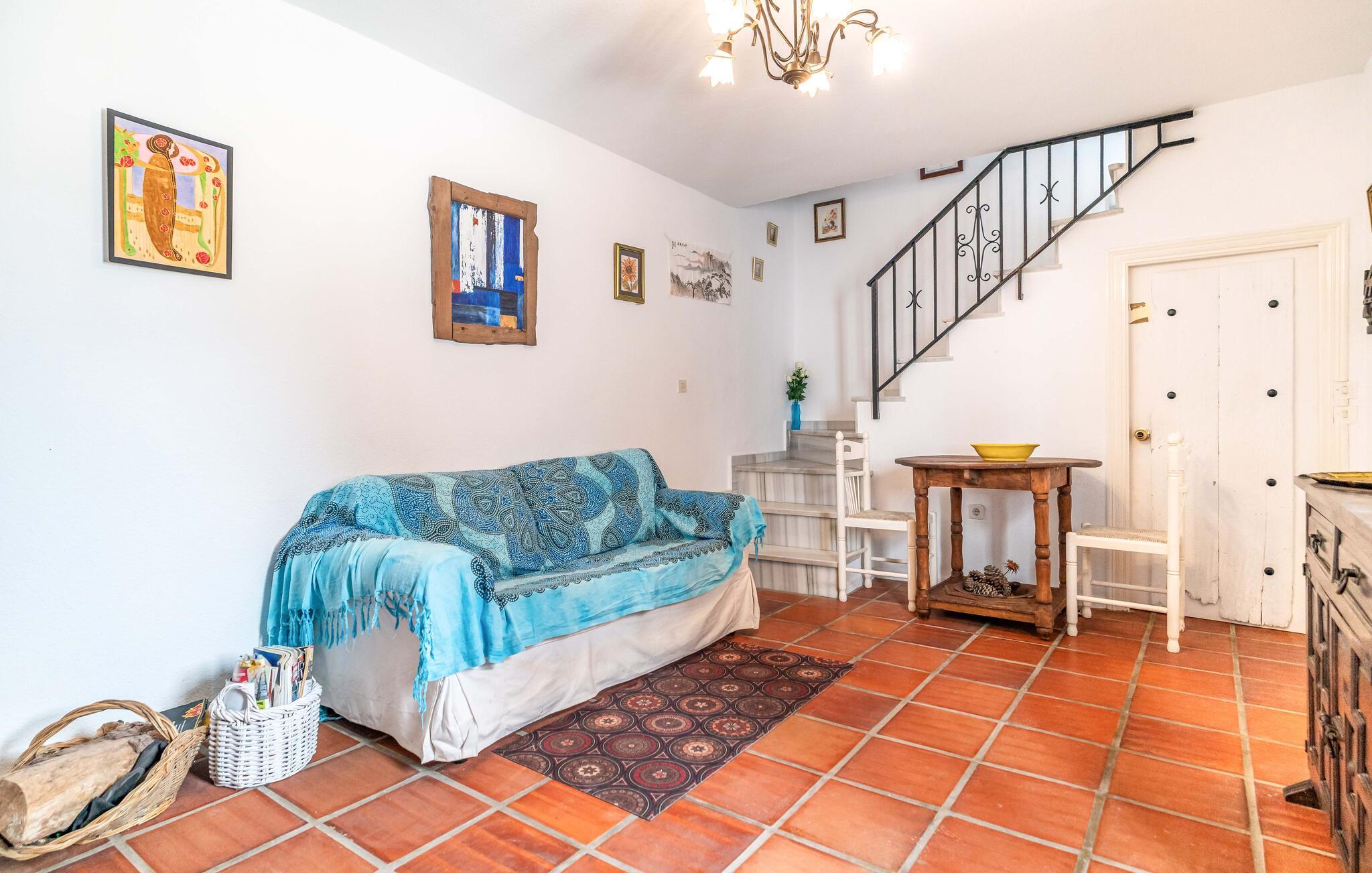 Dette rummelige rækkehus byder jer velkommen med et hyggeligt og individuelt møbleret interiør, hvor en fortryllende udsigt over landskabet venter jer i udkanten af ??naturparken Sierras de Tejeda, Almijara y Alhama. Tilbered lækre tapas med friske råvarer fra markedet, planlæg jeres udflugter i den stilfuldt oplyste spisestue, brug jeres fritid på at slappe af og læse eller afslut en begivenhedsrig dag med en spilleaften på sofaen.