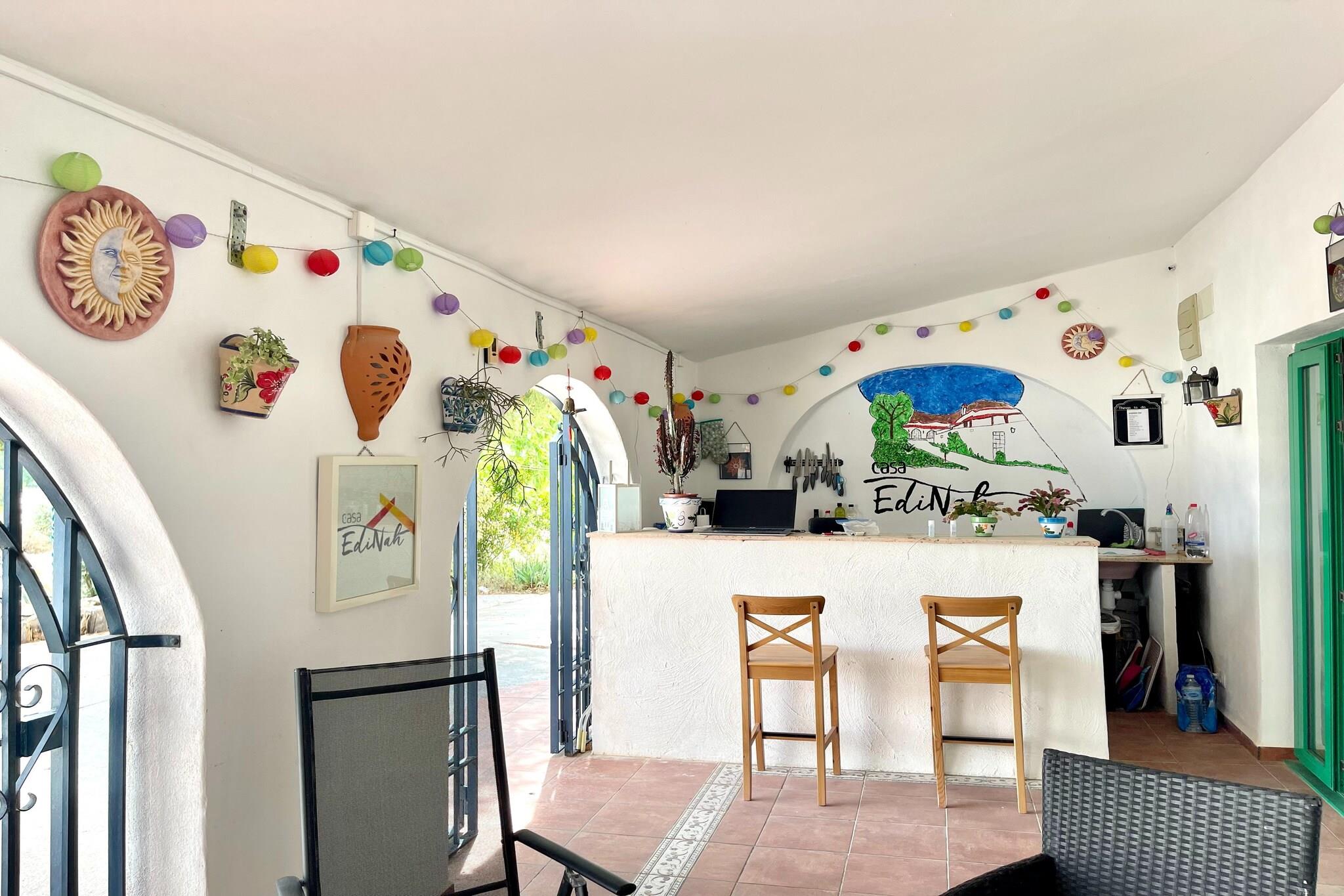 Dette fuldt renoverede hulehus Nadieh er møbleret og udstyret med alle bekvemmeligheder. Desuden giver det adgang til adskillige fællesfaciliteter med faciliteter for gæster med mobilitetsproblemer, senge eller badeværelser. Ideel til familieferier! Boligen ligger i El Margen, Cúllar, i kort afstand fra supermarkedet og flere hyggelige restauranter. Der er også mange andre turistattraktioner værd at besøge, såsom Cuevas og Tabernas-ørkenen. Cúllar har en rig historie, der går tilbage til romertiden, og det er tydeligt i dens arkitektur og monumenter. Udforsk de charmerende gader i det historiske centrum og beundre de mauriske påvirkninger i bygningerne. Byen er også kendt for sine farverige festivaler, såsom Feria de Cúllar, en årlig begivenhed, der afholdes i august. Gaderne er fyldt med musik, dans og traditionelle kostumer, og der er forskellige aktiviteter for både store og små. Selve boligen rummer hyggelige soveværelser, komfortable badeværelser, opholdsstue med pejs, lege- og læsesal, fuldt udstyret køkken og et smukt udendørsområde med havemøbler og gasgrill (mod betaling). Med bruser og hjælpeelementer til personer med bevægelsesproblemer, både på husets badeværelser, er boligen særdeles tilgængelig.