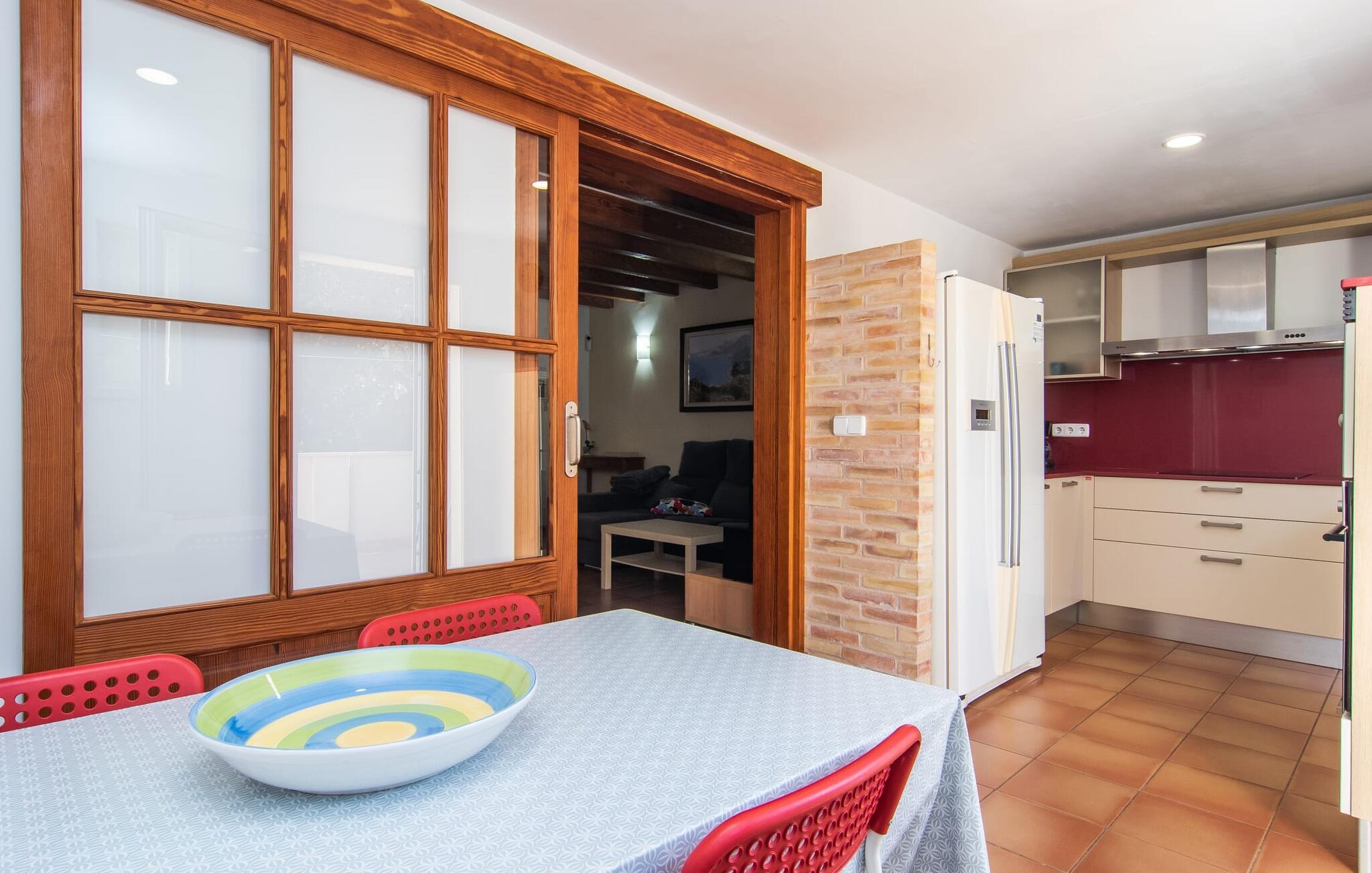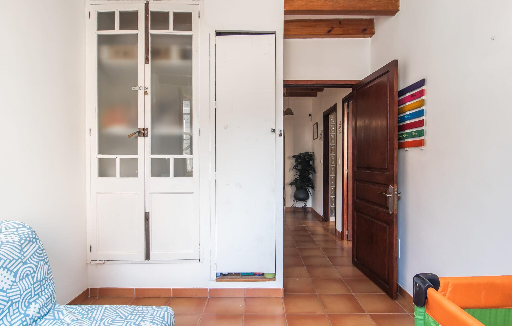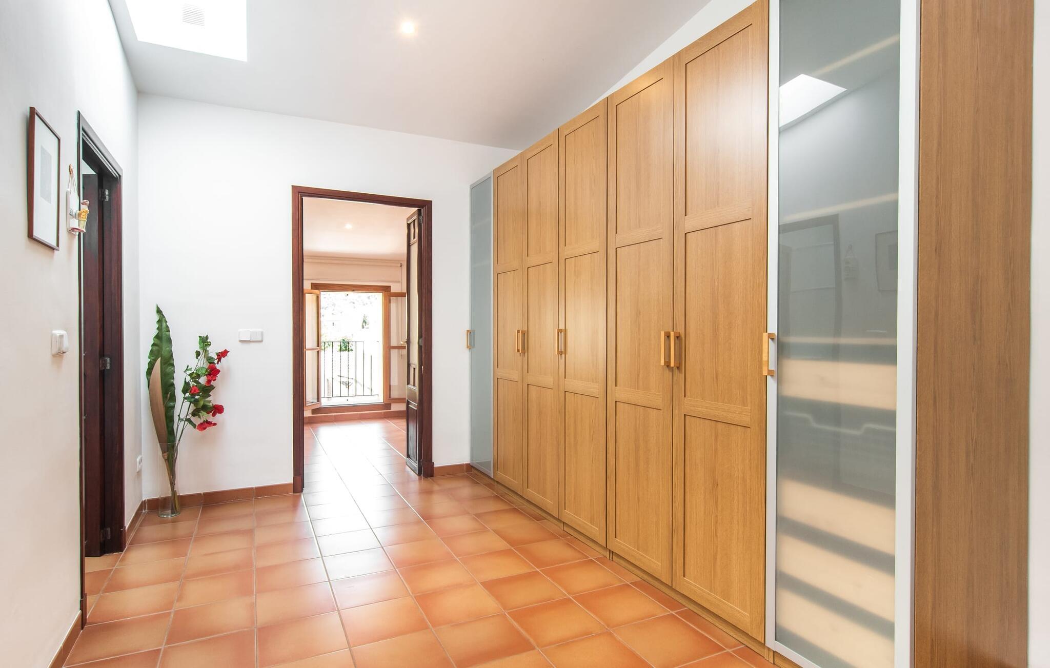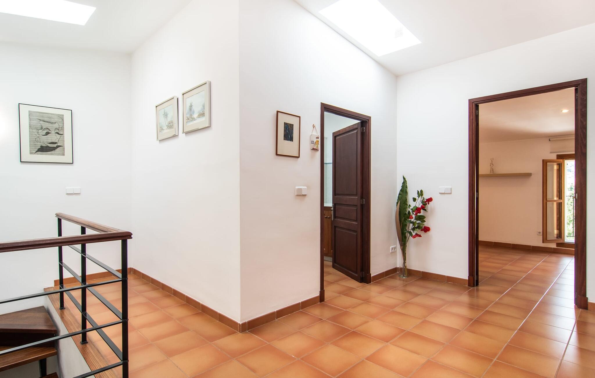 Dette attraktive rækkehus byder på en fantastisk udsigt over den imponerende kulisse af Tramuntana-bjergene. Den bekvemme beliggenhed giver også mulighed for spontane ture uden at skulle bruge bilen. Tag på vandretur i de nærliggende bjerge eller udforsk området på cykel! Hvis I gerne vil tilbringe en dag indendørs, finder I også indbydende steder at slappe af og blive hængende. Balkonen og tagterrassen byder på sidde- og afslapningsmuligheder direkte under Mallorcas himmel. Og hvis I har lyst til at gå en tur gennem landsbyen, skal I bare klatre ned af trapperne og gå. En anden mulighed er at finde et hyggeligt sted i husets rummelige interiør. Den åbne stue og spisestue med TV og pejs byder på flere muligheder. I kan også sidde i det tilstødende køkken. Derudover finder I et fuldt udstyret køkken, perfekt til selvforplejning. Udgangen til altanen er meget praktisk. På denne stueplan er der også et soveværelse med dobbeltseng og et værelse med en barneseng. Her er også et brusebad. På øverste etage er der yderligere to rummelige soveværelser og et badeværelse med bruser og badekar. Grundet det eksisterende varm-kolde klimaanlæg er dette rækkehus behageligt at bo i året rundt. En ferie i dette veludstyrede rækkehus på Mallorca betyder at have al den daglige infrastruktur lige uden for døren. I bor her kun 5 minutters gang fra den smukke bymidte. En række butikker og restauranter med smukke baghaver inviterer jer til at shoppe og slappe af. Stranden i Port de Sóller ligger ca. 5 km væk. En sporvogn, der kører flere gange om dagen, forbinder de to steder.