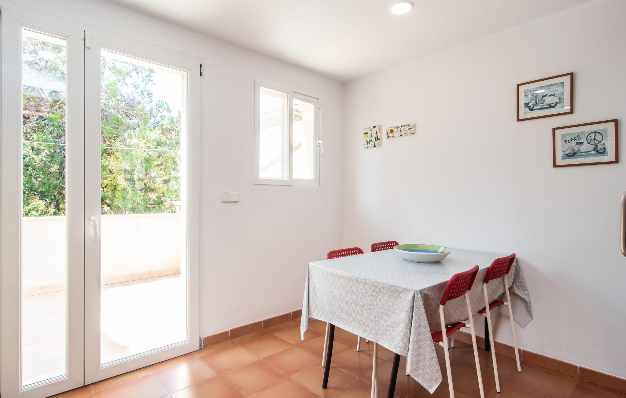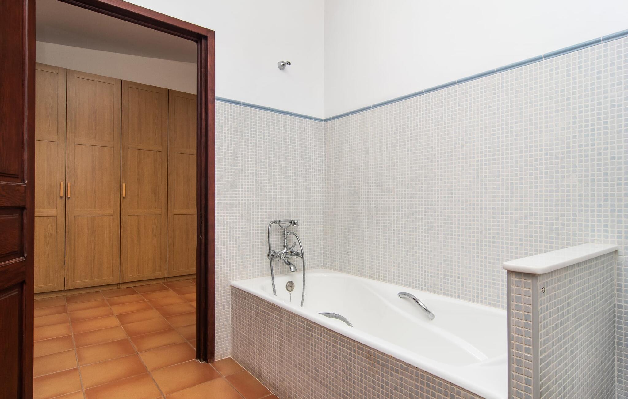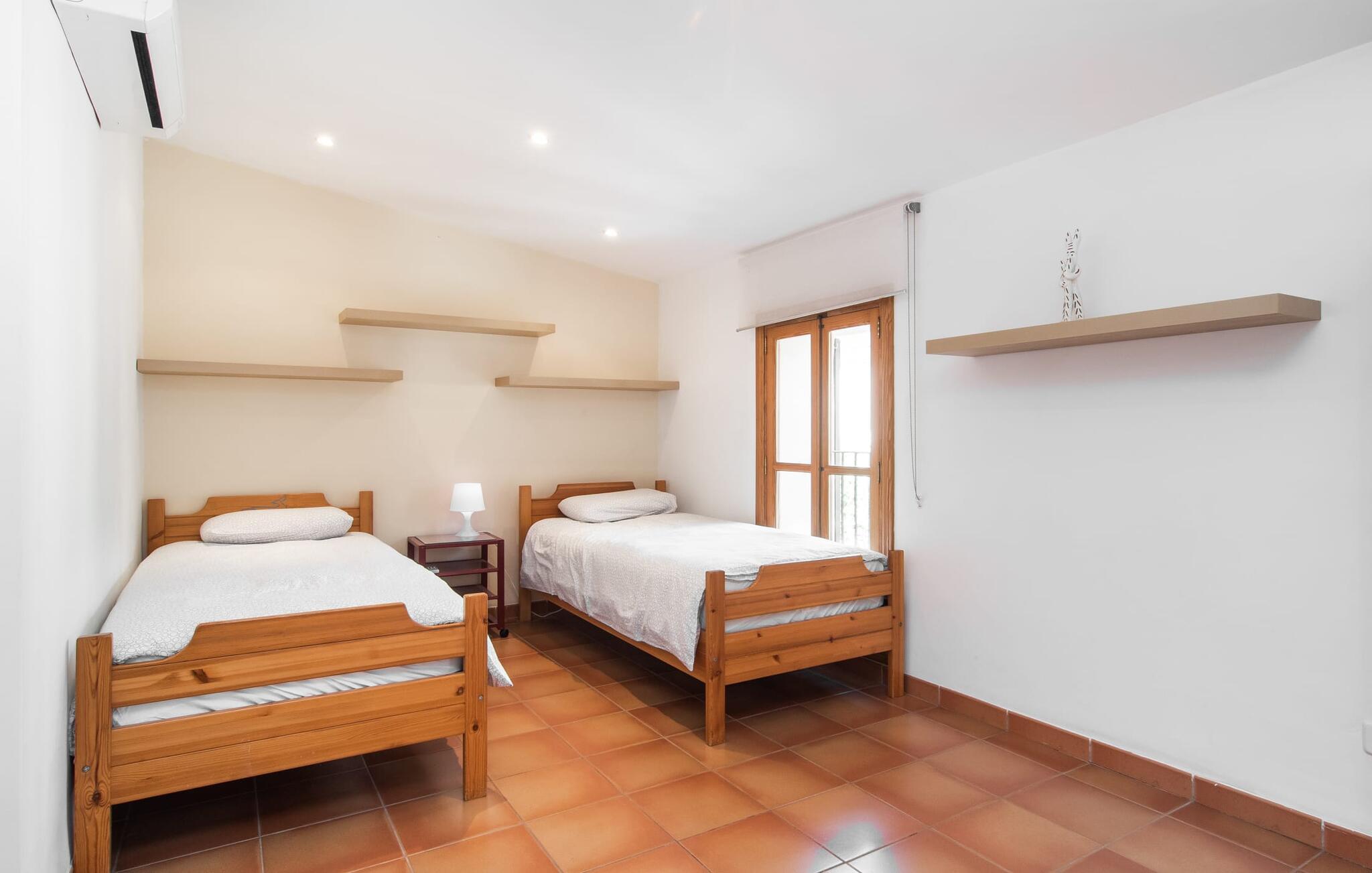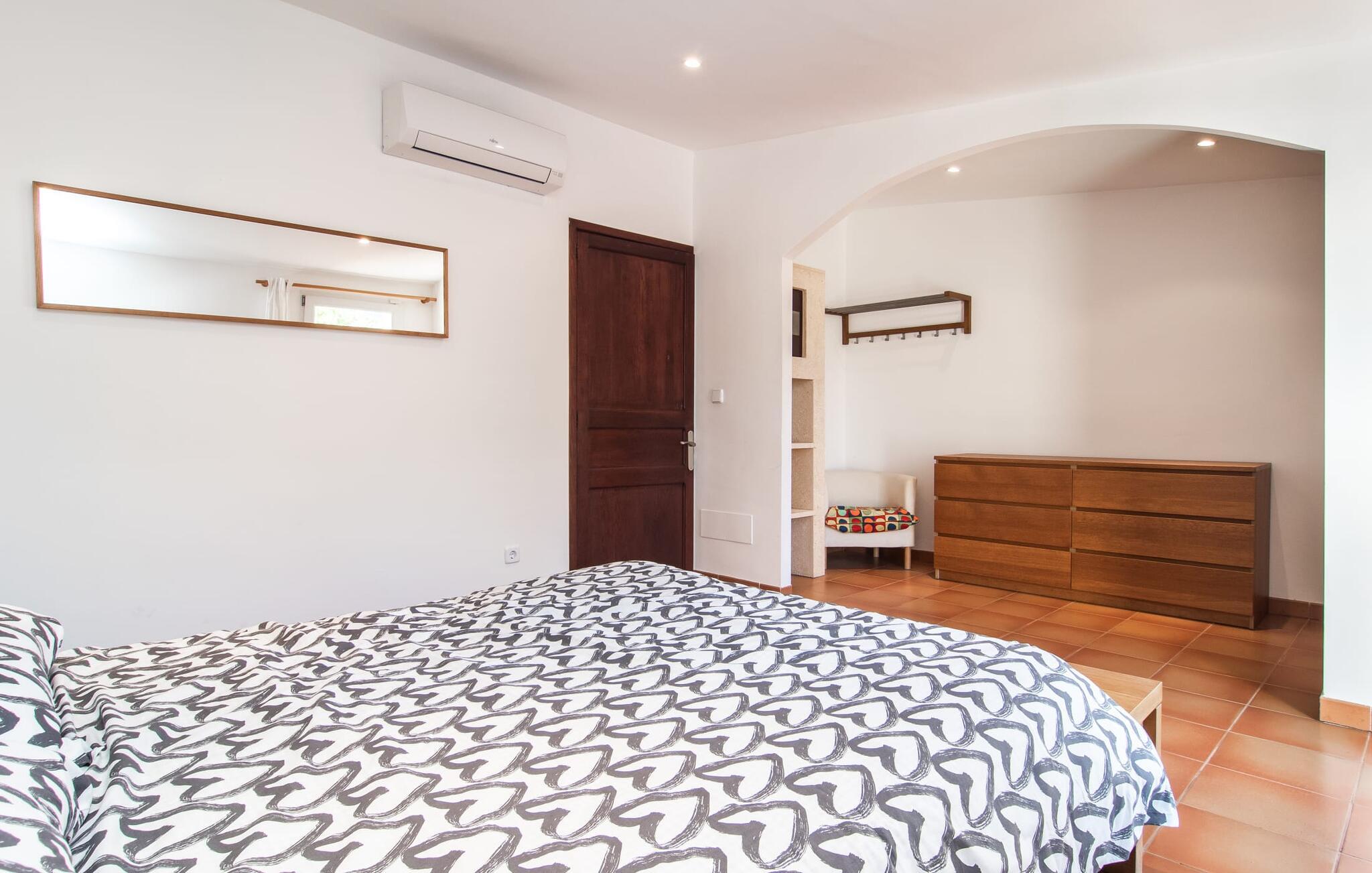 Dette attraktive rækkehus byder på en fantastisk udsigt over den imponerende kulisse af Tramuntana-bjergene. Den bekvemme beliggenhed giver også mulighed for spontane ture uden at skulle bruge bilen. Tag på vandretur i de nærliggende bjerge eller udforsk området på cykel! Hvis I gerne vil tilbringe en dag indendørs, finder I også indbydende steder at slappe af og blive hængende. Balkonen og tagterrassen byder på sidde- og afslapningsmuligheder direkte under Mallorcas himmel. Og hvis I har lyst til at gå en tur gennem landsbyen, skal I bare klatre ned af trapperne og gå. En anden mulighed er at finde et hyggeligt sted i husets rummelige interiør. Den åbne stue og spisestue med TV og pejs byder på flere muligheder. I kan også sidde i det tilstødende køkken. Derudover finder I et fuldt udstyret køkken, perfekt til selvforplejning. Udgangen til altanen er meget praktisk. På denne stueplan er der også et soveværelse med dobbeltseng og et værelse med en barneseng. Her er også et brusebad. På øverste etage er der yderligere to rummelige soveværelser og et badeværelse med bruser og badekar. Grundet det eksisterende varm-kolde klimaanlæg er dette rækkehus behageligt at bo i året rundt. En ferie i dette veludstyrede rækkehus på Mallorca betyder at have al den daglige infrastruktur lige uden for døren. I bor her kun 5 minutters gang fra den smukke bymidte. En række butikker og restauranter med smukke baghaver inviterer jer til at shoppe og slappe af. Stranden i Port de Sóller ligger ca. 5 km væk. En sporvogn, der kører flere gange om dagen, forbinder de to steder.